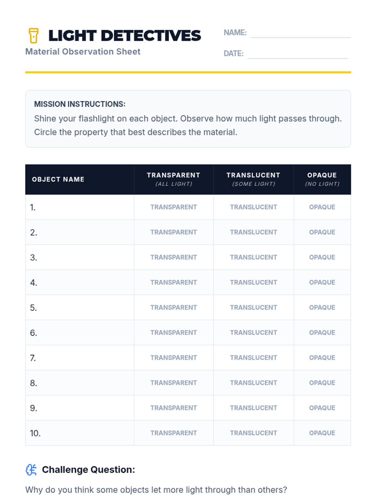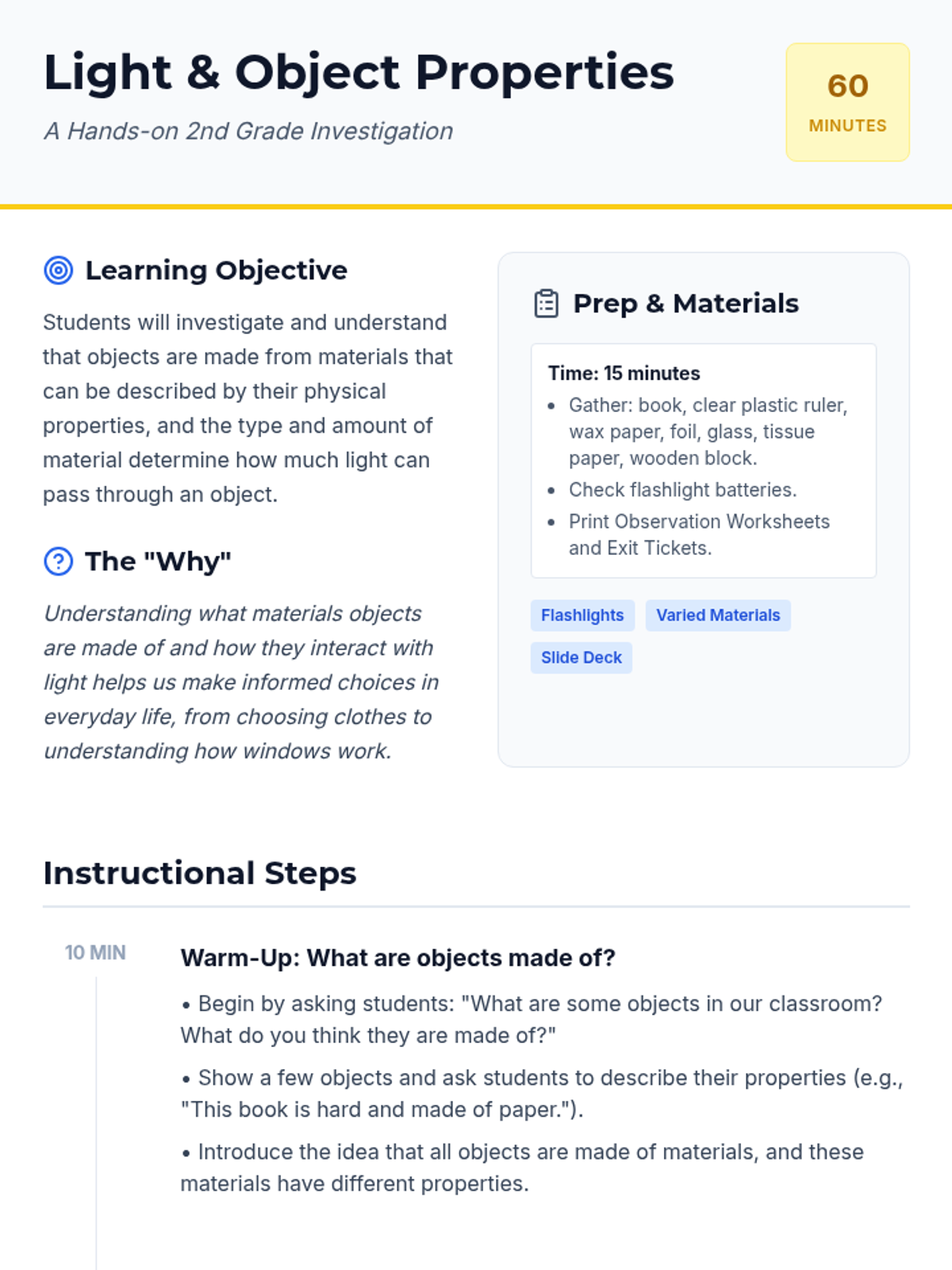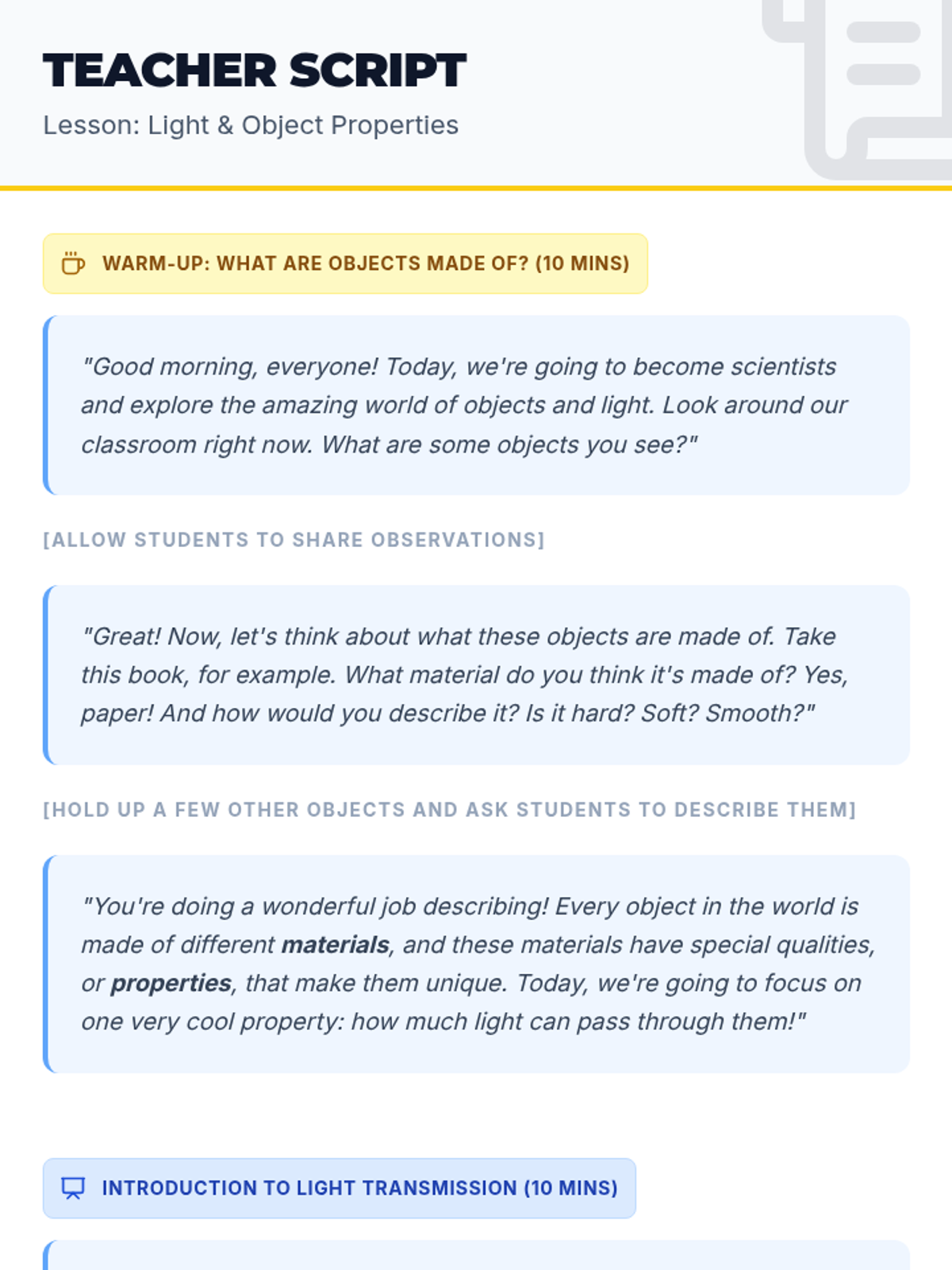 A hands-on science lesson for 2nd grade exploring how light interacts with different materials through the concepts of transparency, translucency, and opacity.