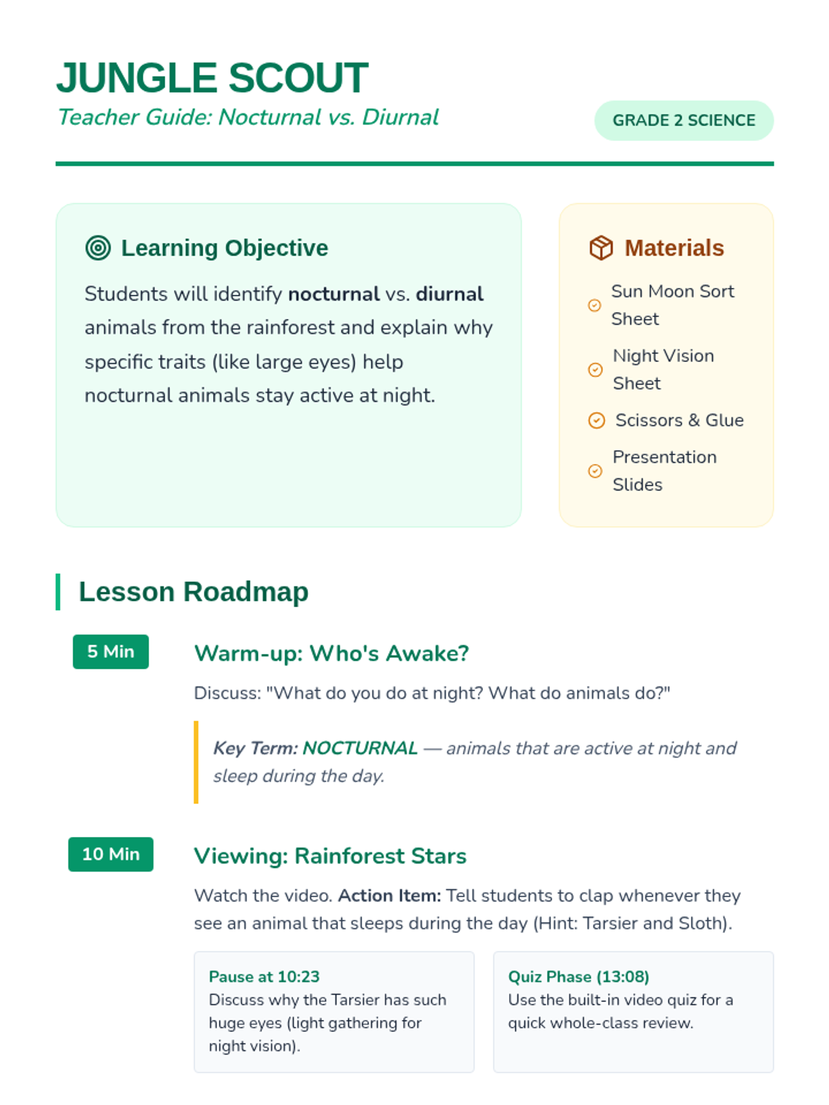 An interactive 2nd-grade science lesson where students explore how light interacts with different materials through a 'Light Lab' hands-on experiment. Students will learn to classify objects as transparent, translucent, or opaque based on how much light they let through.