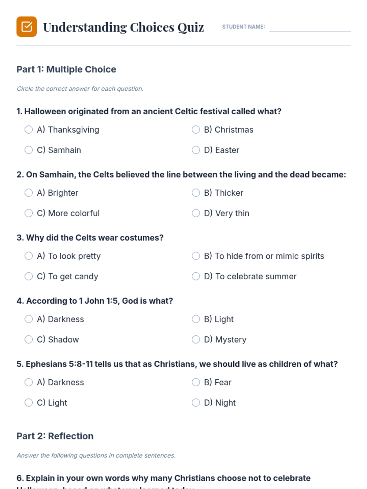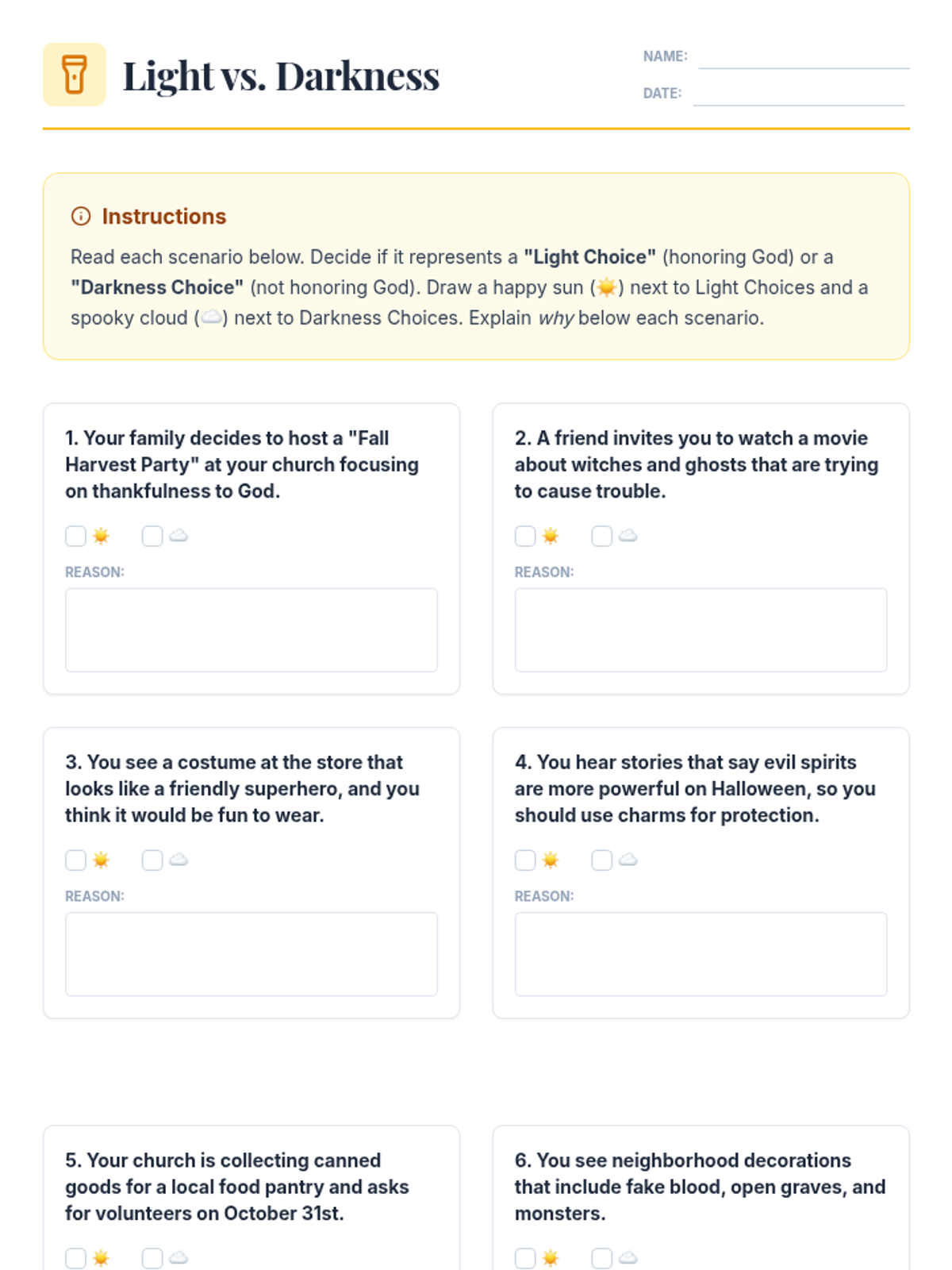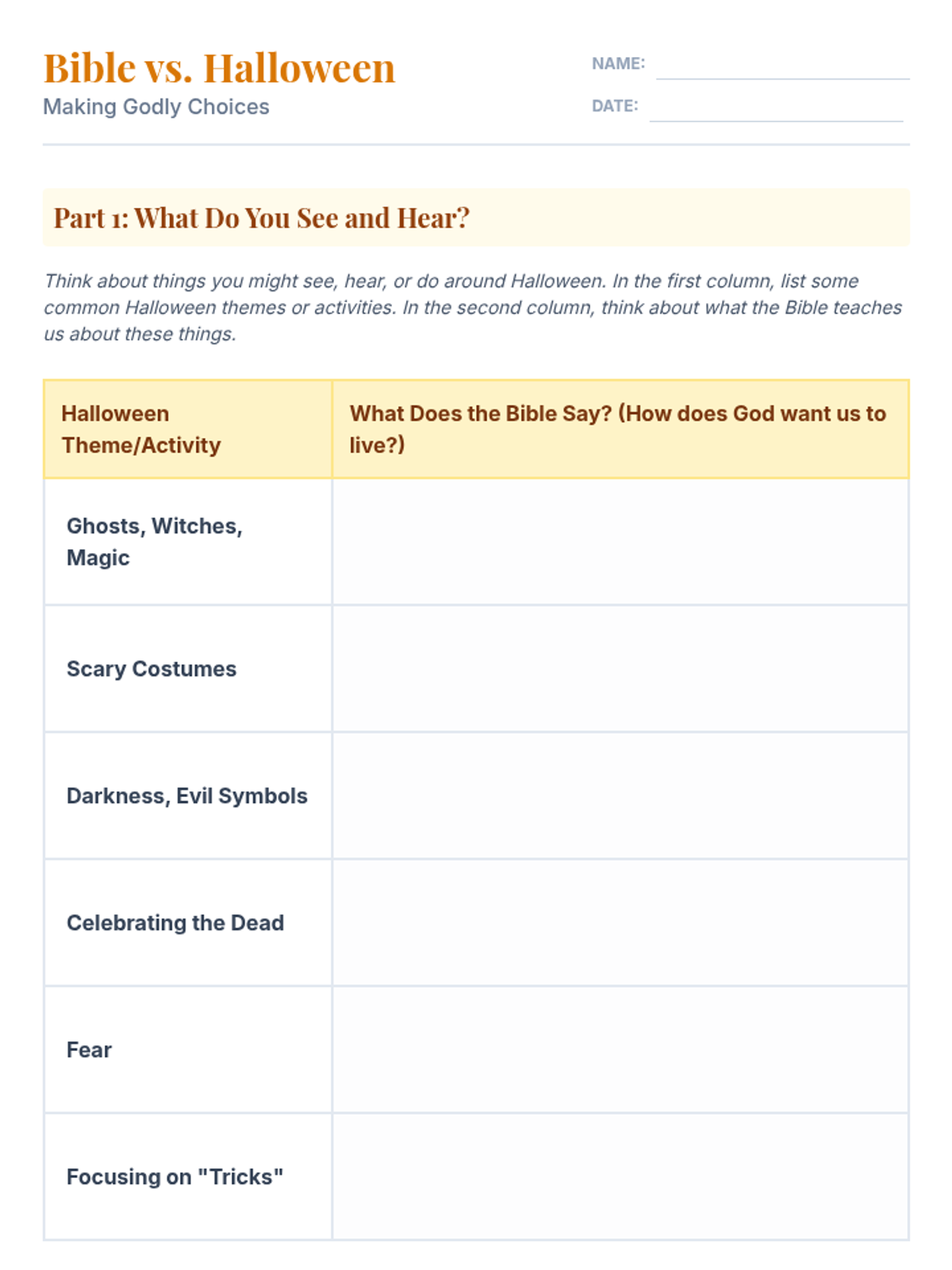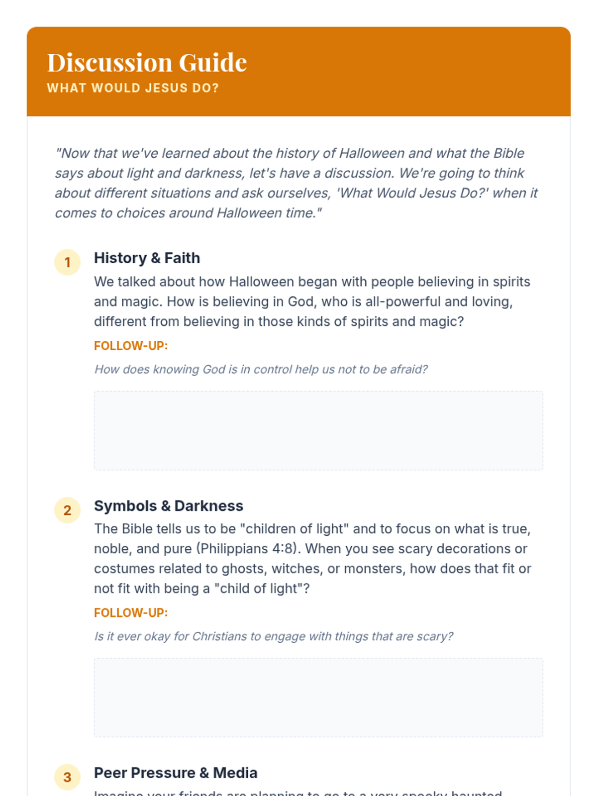 A comprehensive 210-minute Bible lesson for Christian kids (ages 8-11) exploring the origins of Halloween through a biblical lens, emphasizing choosing light over darkness and honoring God.