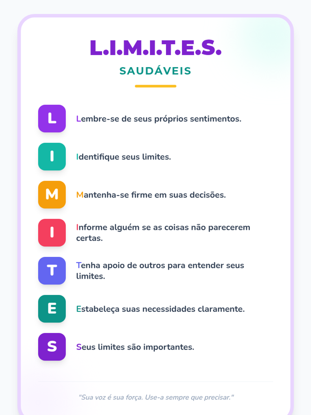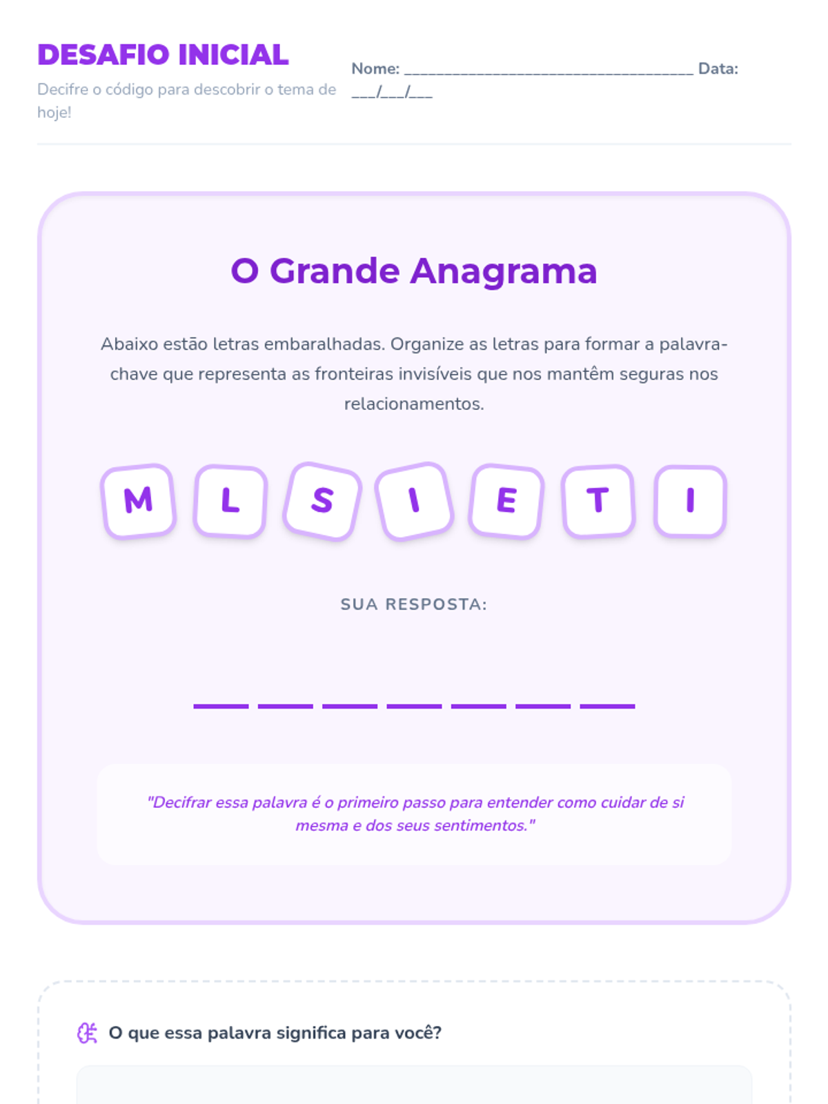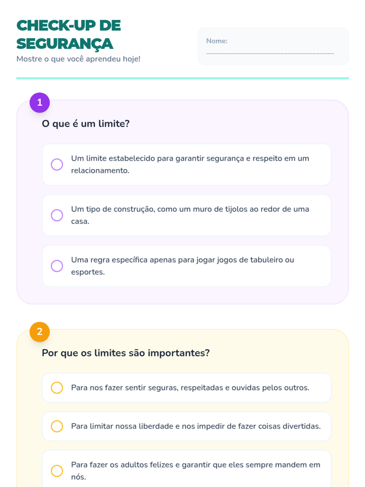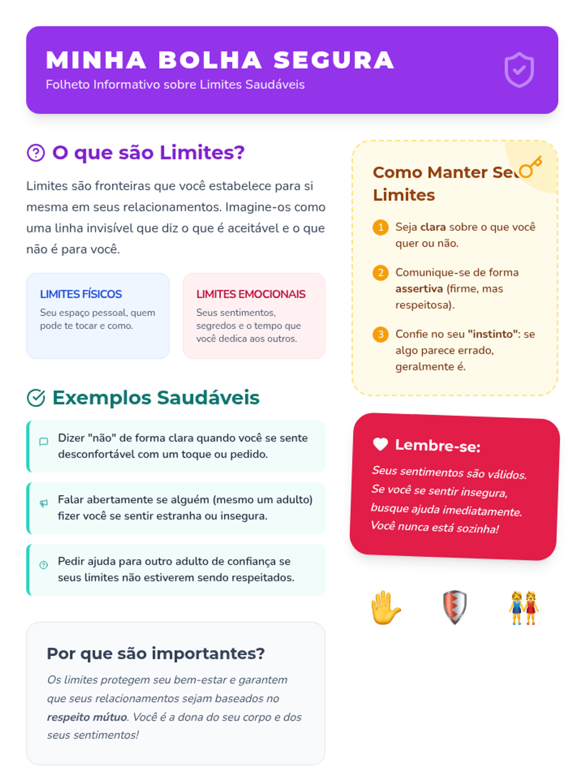 Uma lição de 30 minutos para meninas de 11 anos sobre como identificar, estabelecer e manter limites saudáveis com adultos para garantir segurança e bem-estar.