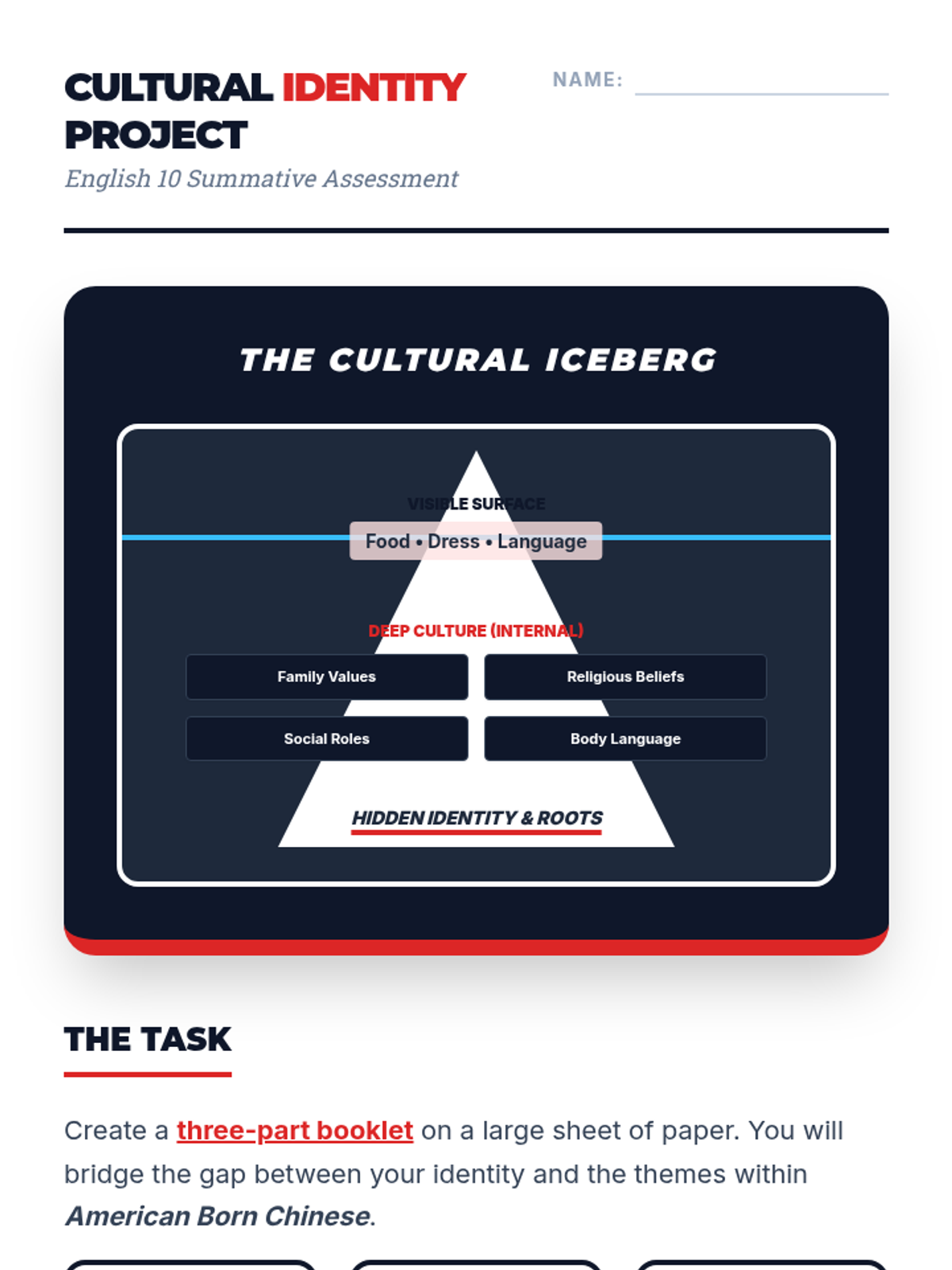 Dedicated workshop time for students to develop their Cultural Identity Project booklets.