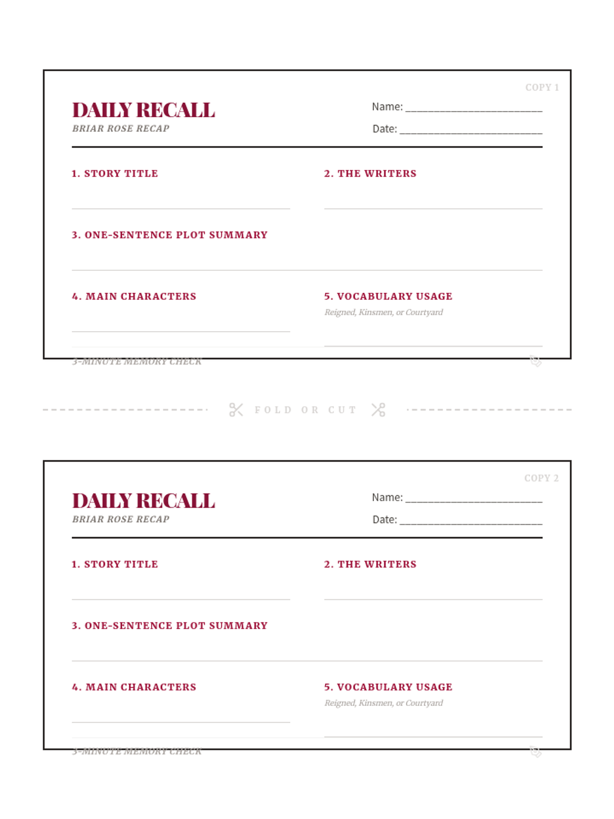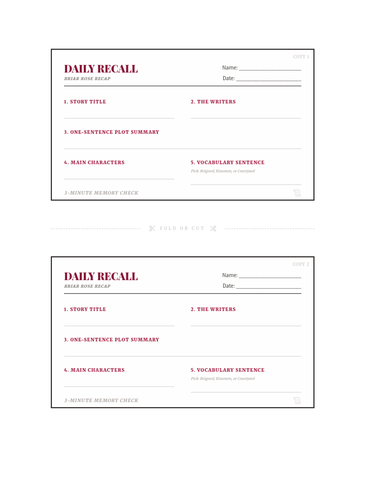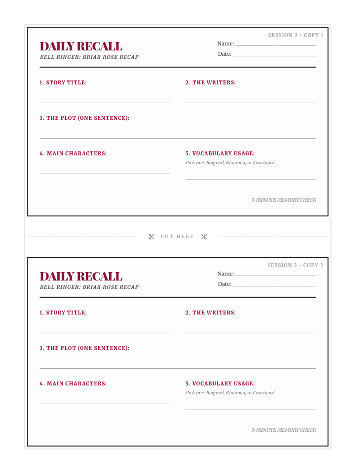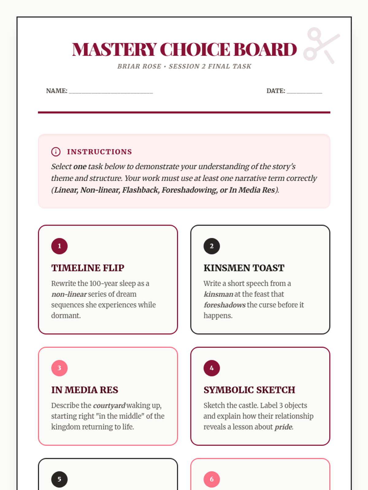 A quick exploration of theme and moral within the classic Brothers Grimm tale 'Briar Rose', featuring a focused bell ringer and exit ticket.