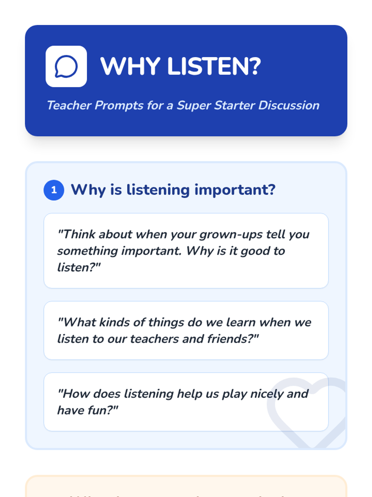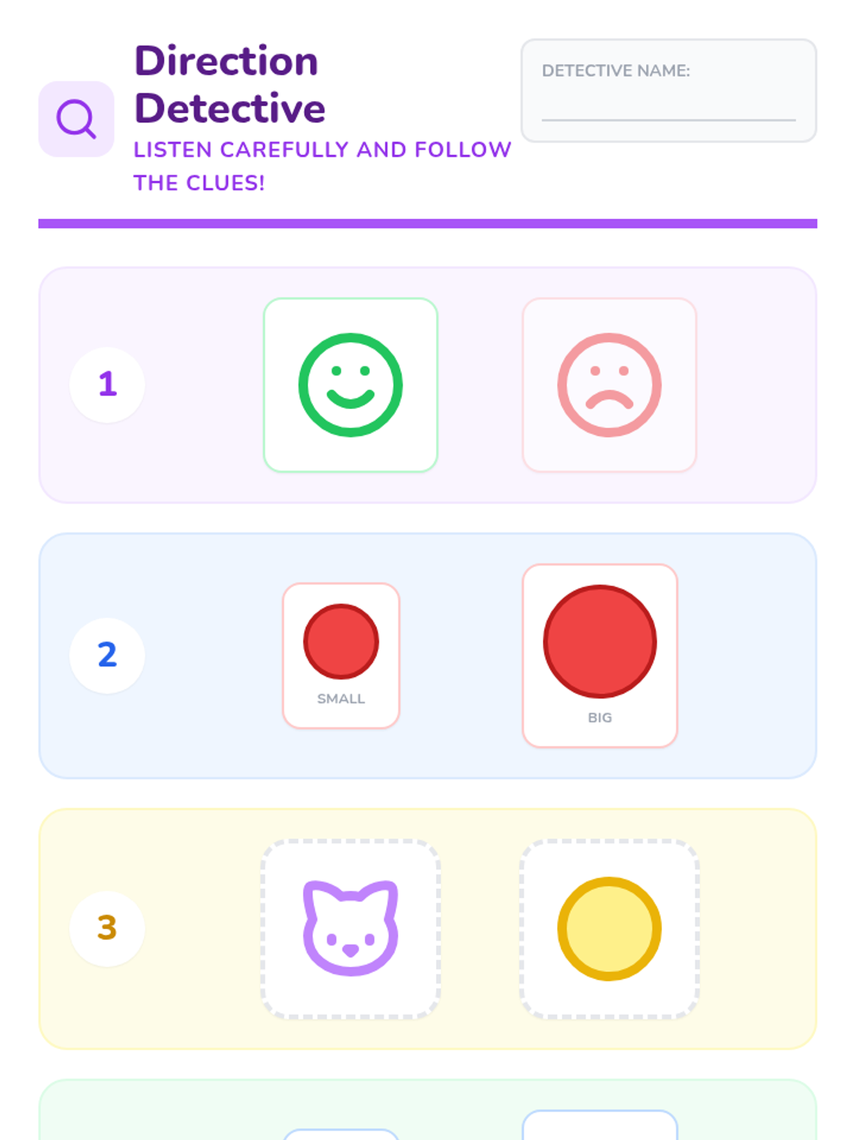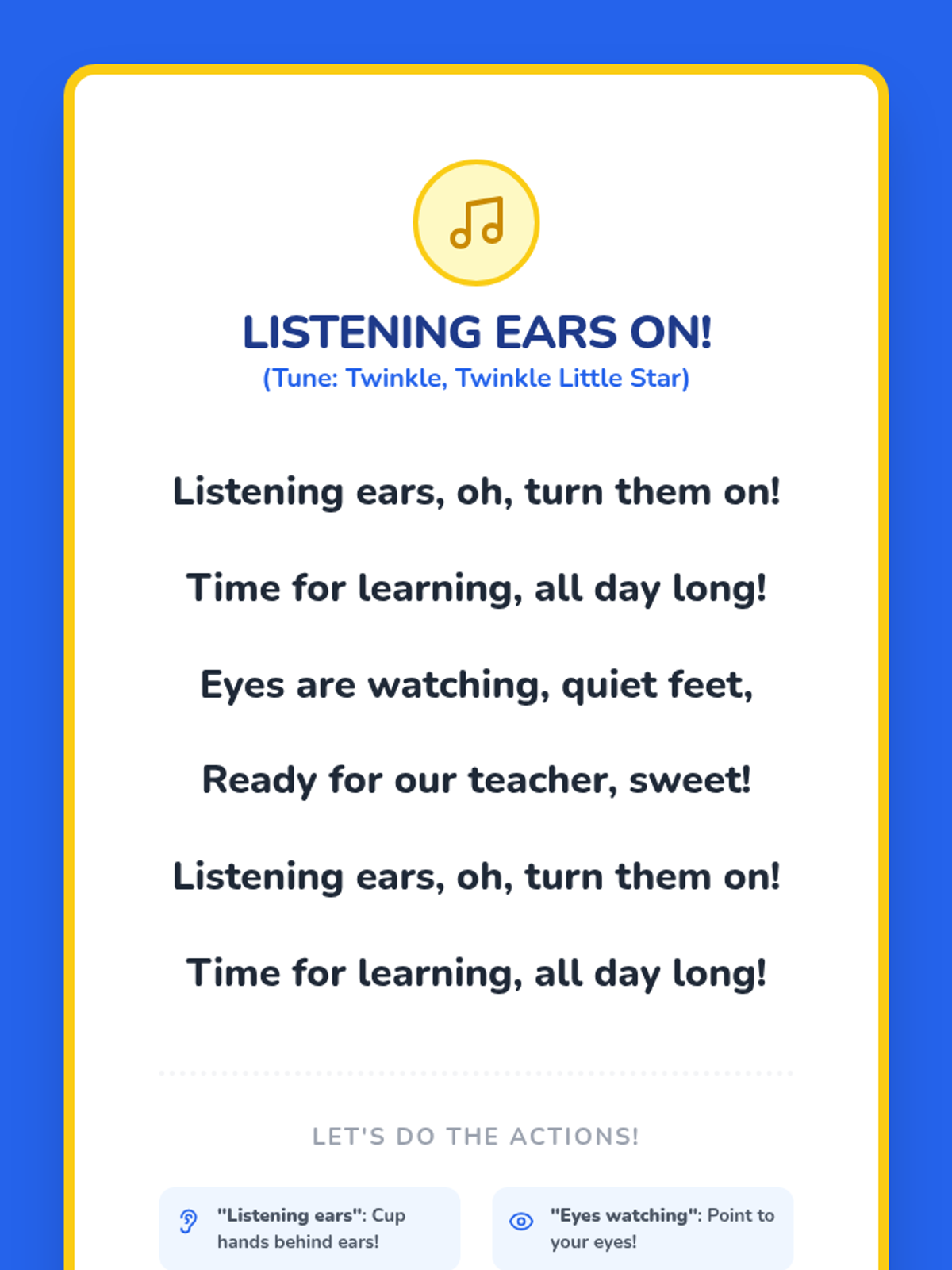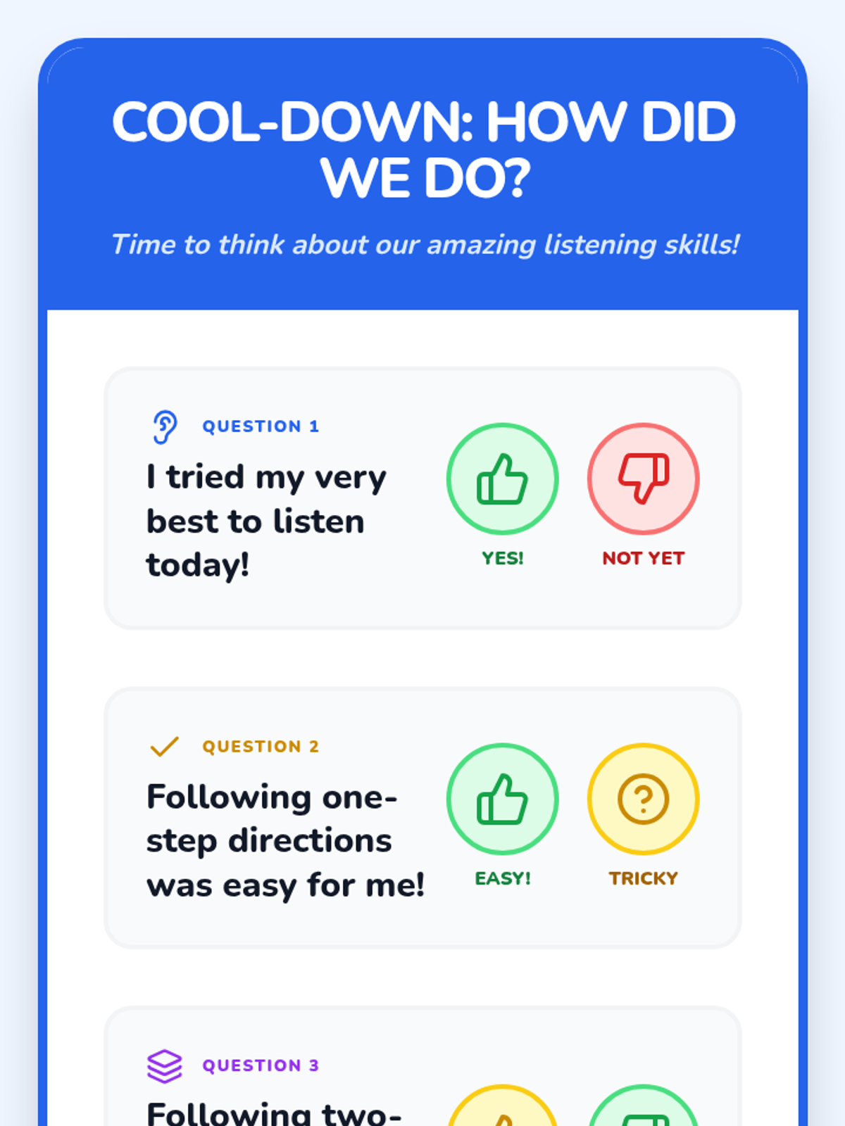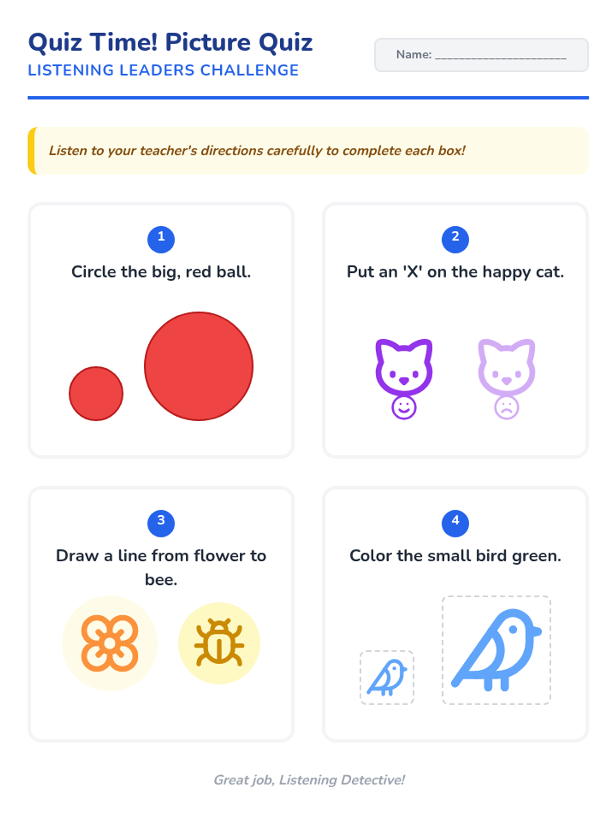 A 20-minute interactive lesson for Headstart and PreK students focused on the foundational skill of following one- and two-step directions through games, songs, and visual activities.