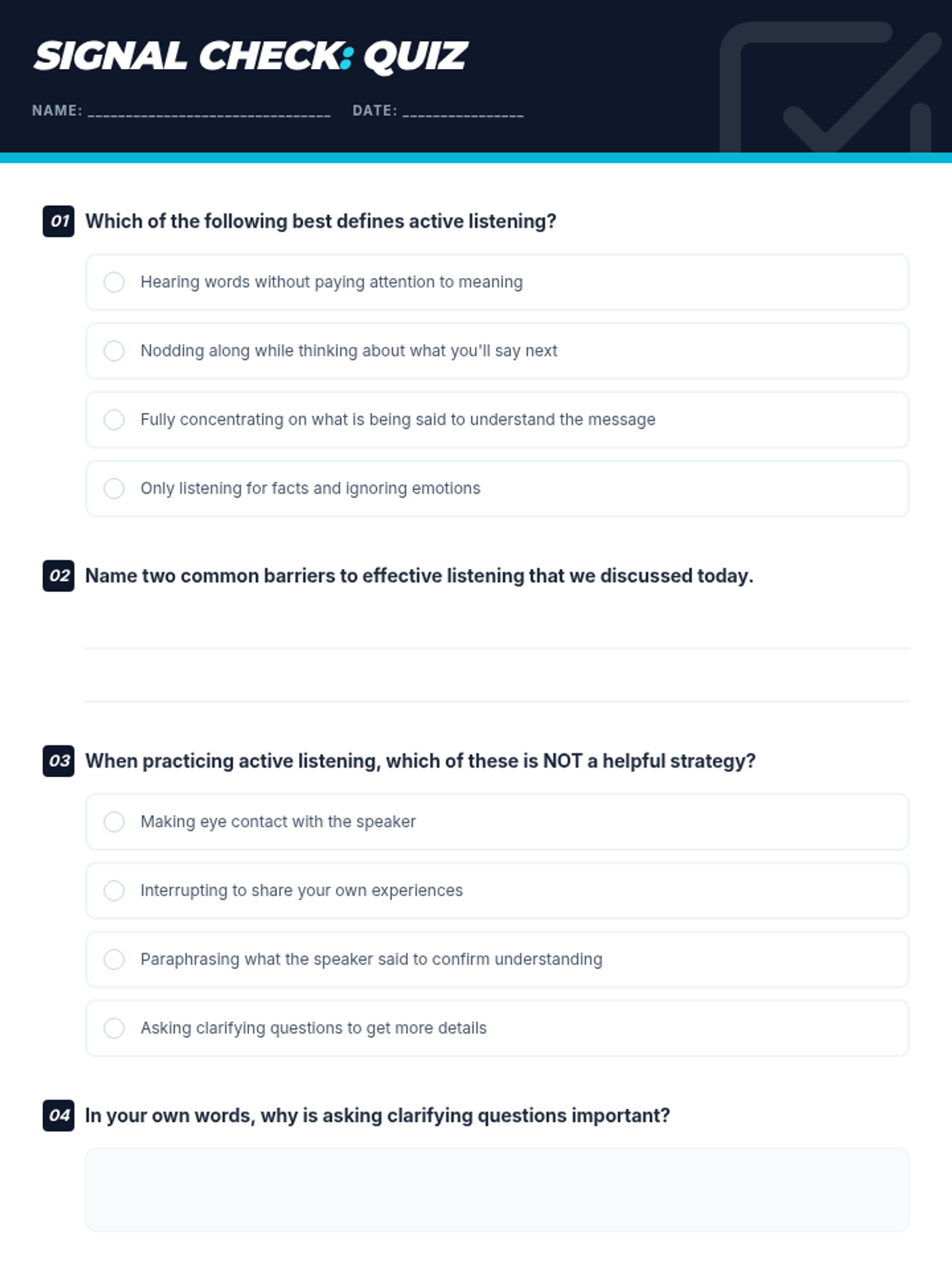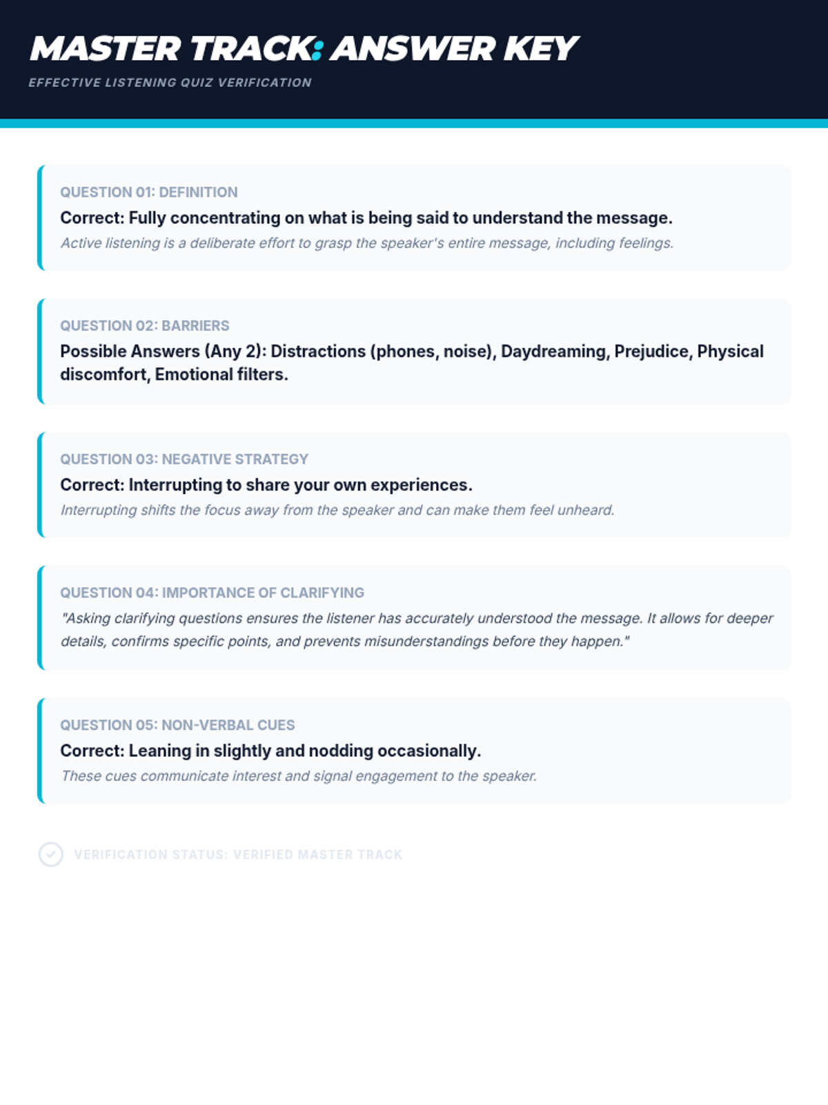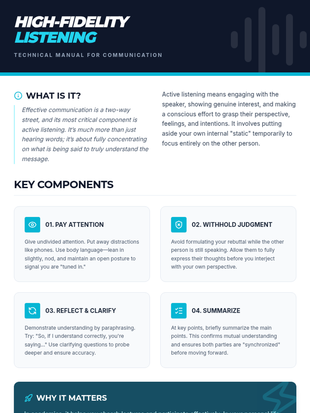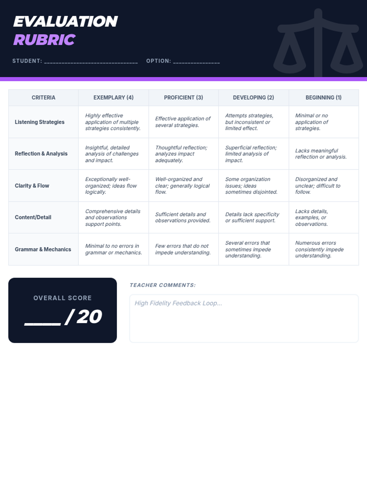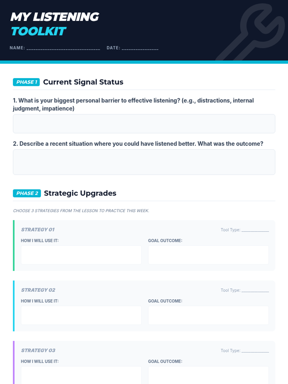 A comprehensive 60-minute lesson for high school juniors and seniors designed to improve active listening skills through interactive role-plays, reflective writing, and collaborative games.