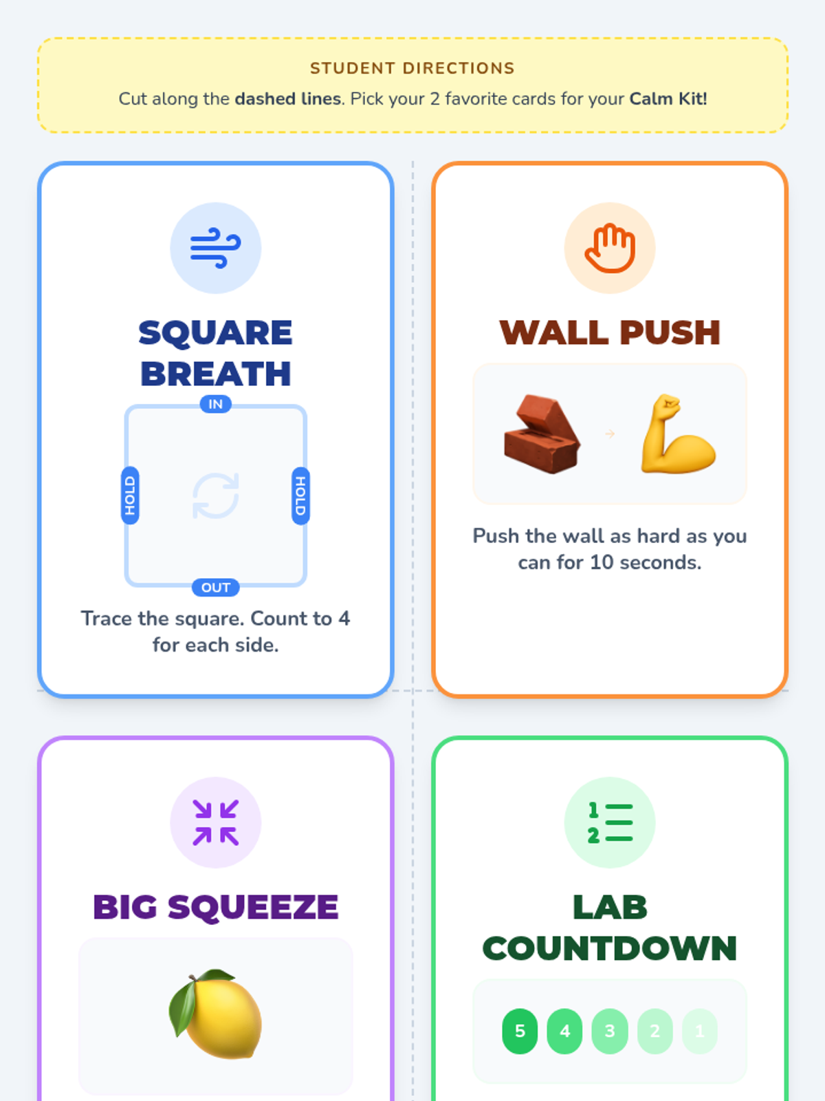 A comprehensive lesson designed for 5th-grade students to master self-regulation by learning to identify emotions and pause before reacting. Includes instructional slides, a visual anchor chart, a guided activity, and a teacher facilitation guide.