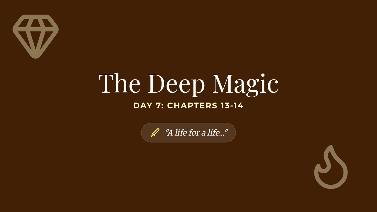 Day 7: Chapters 13-14. The Deep Magic and Aslan's sacrifice, focusing on theme and supporting claims with evidence.