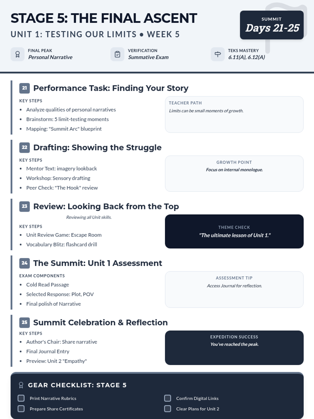 This lesson focuses on analyzing key literary elements—plot, character, setting, theme, point of view, tone, and figurative language—within a realistic fiction text. Students will read a short story and answer targeted comprehension questions to demonstrate their mastery of these elements.