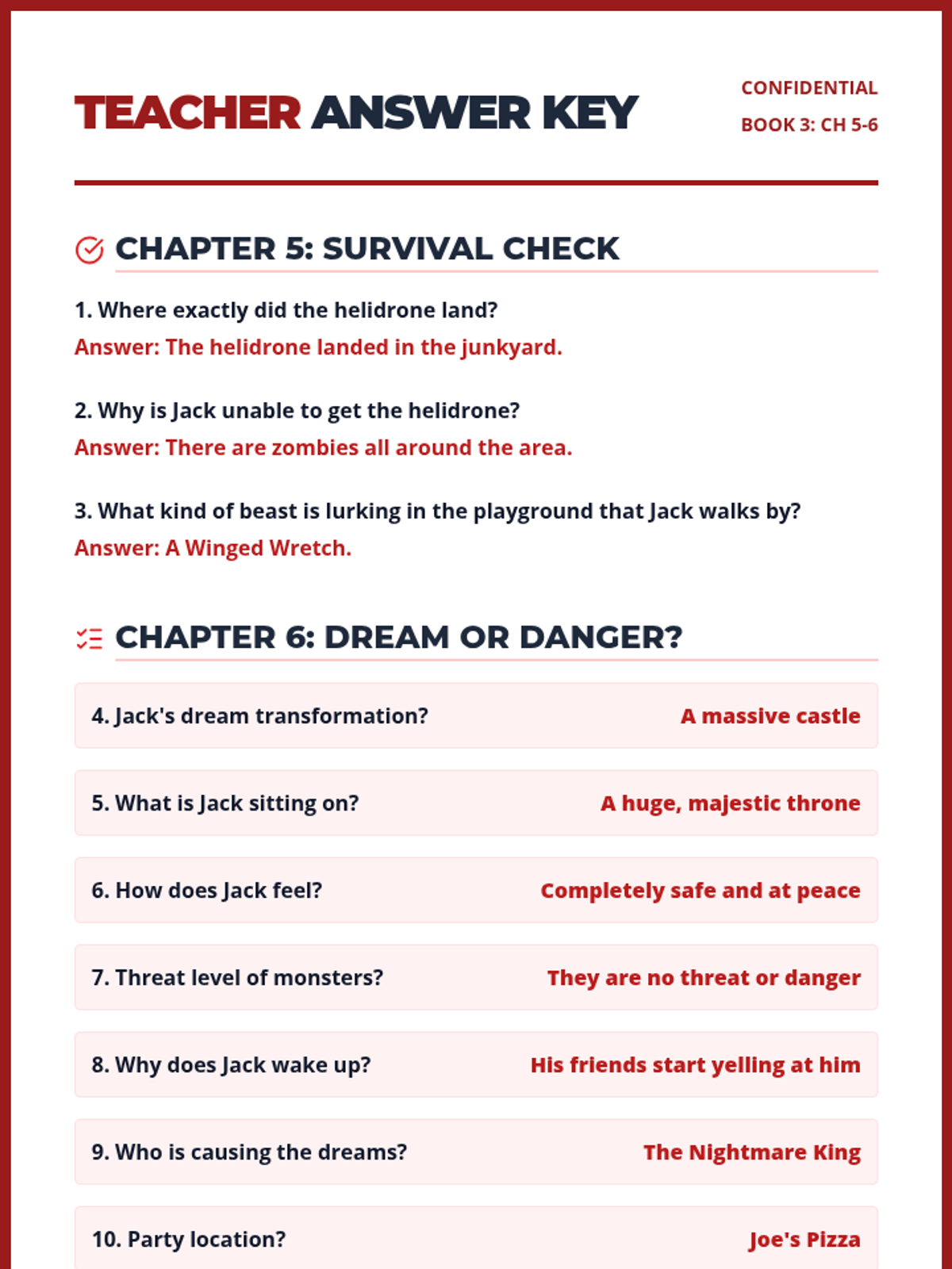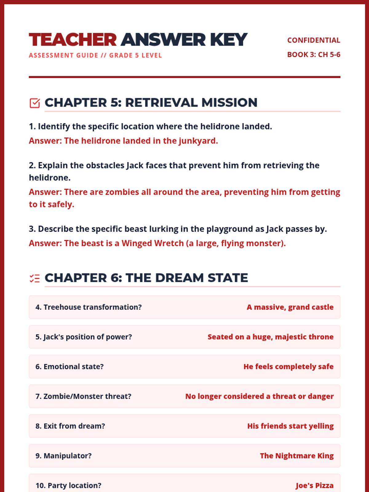 A focused reading comprehension lesson on Chapter 7 of 'The Last Kids on Earth and the Nightmare King', covering the team's mission to Big Al's Junk Palace and June's character development.