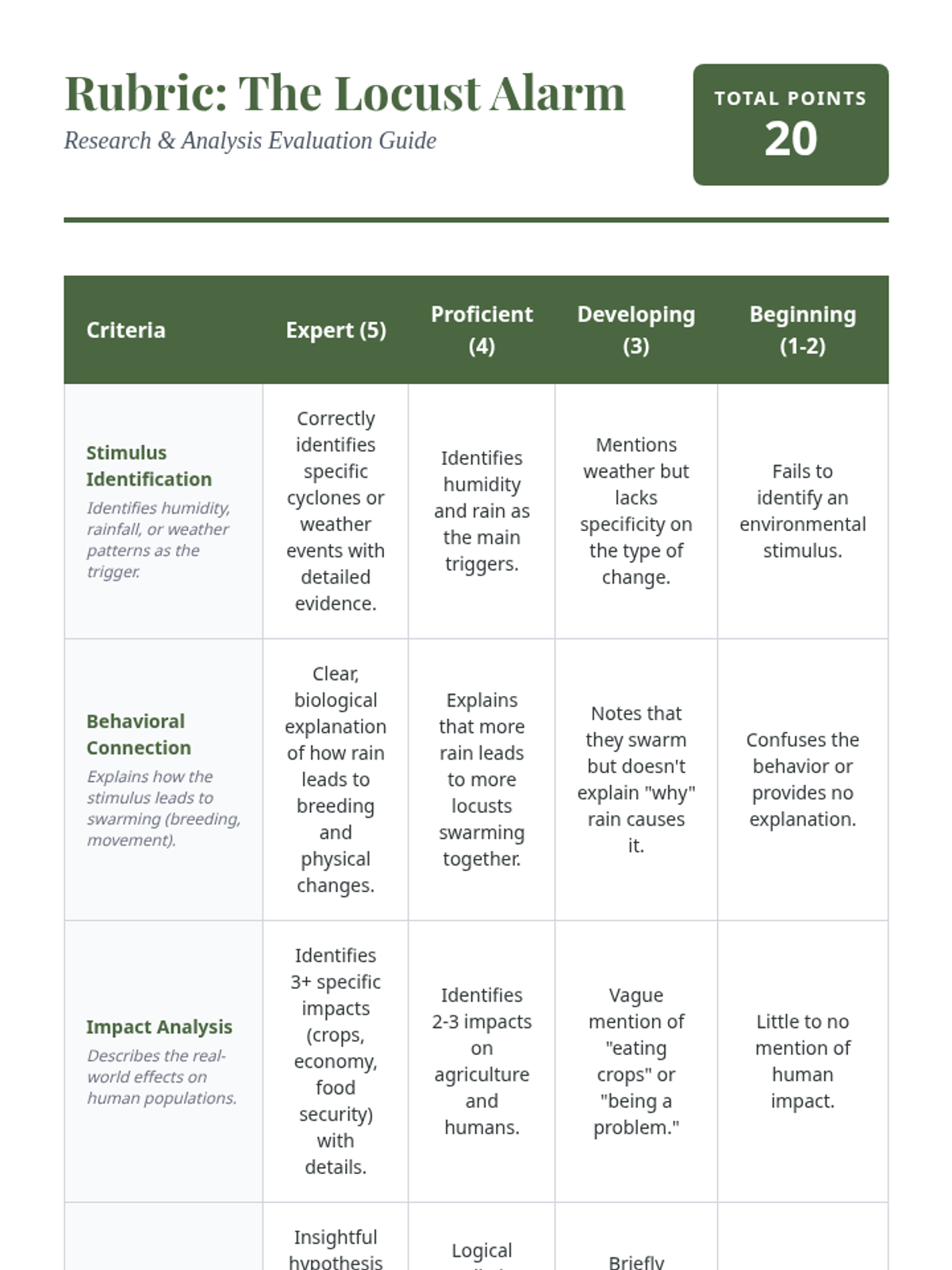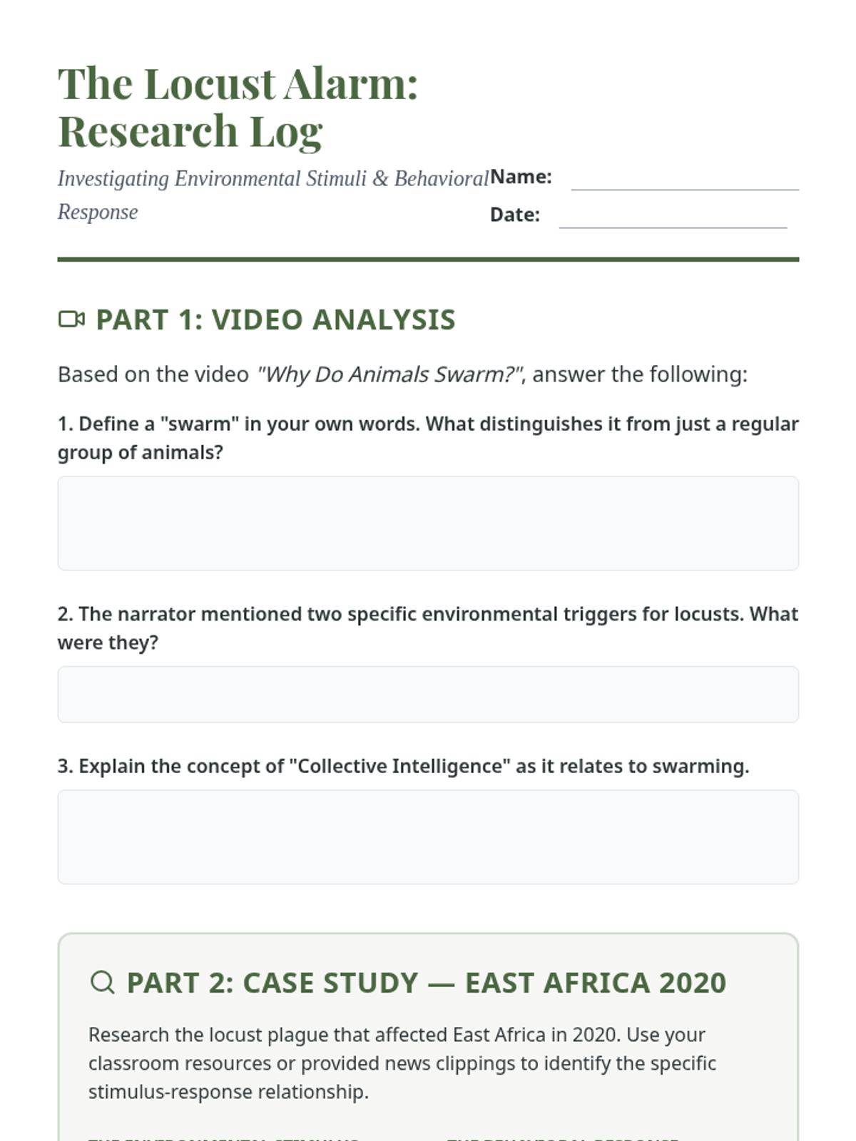 Students will explore how environmental triggers like humidity and rainfall lead to the dramatic swarming behavior of locusts, analyzing real-world events and the impact of climate change.