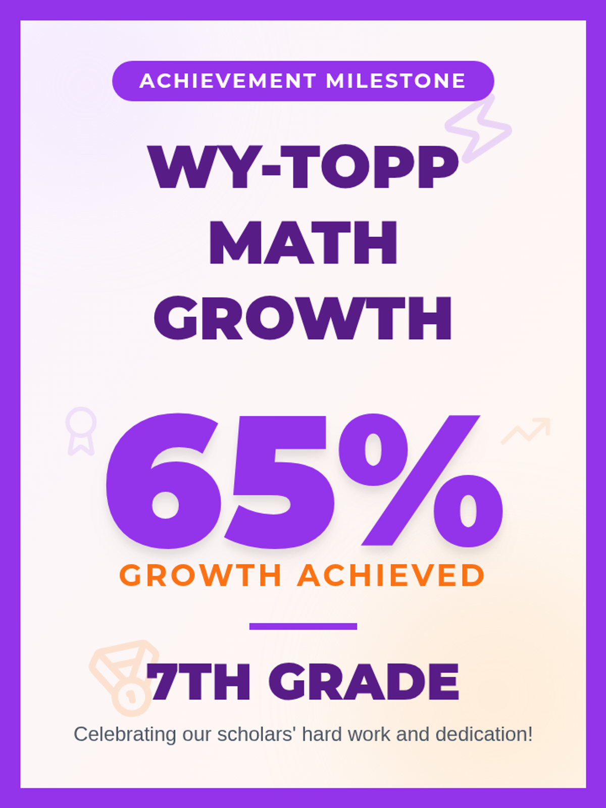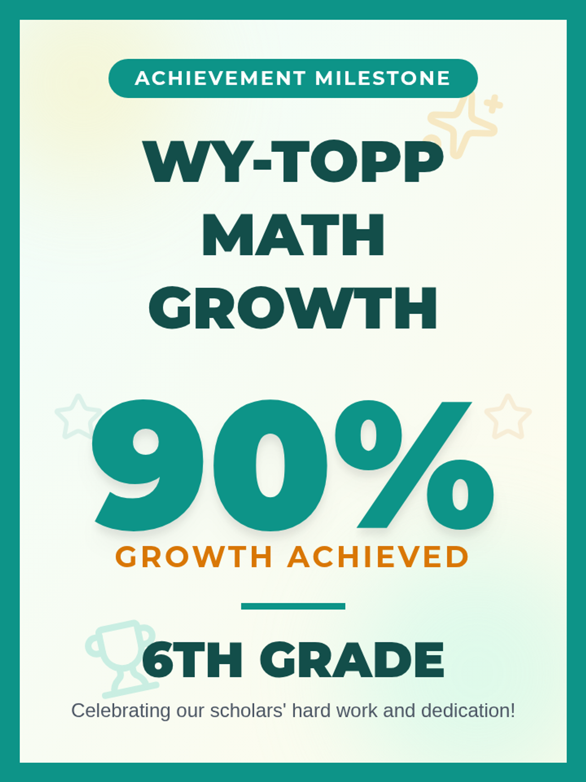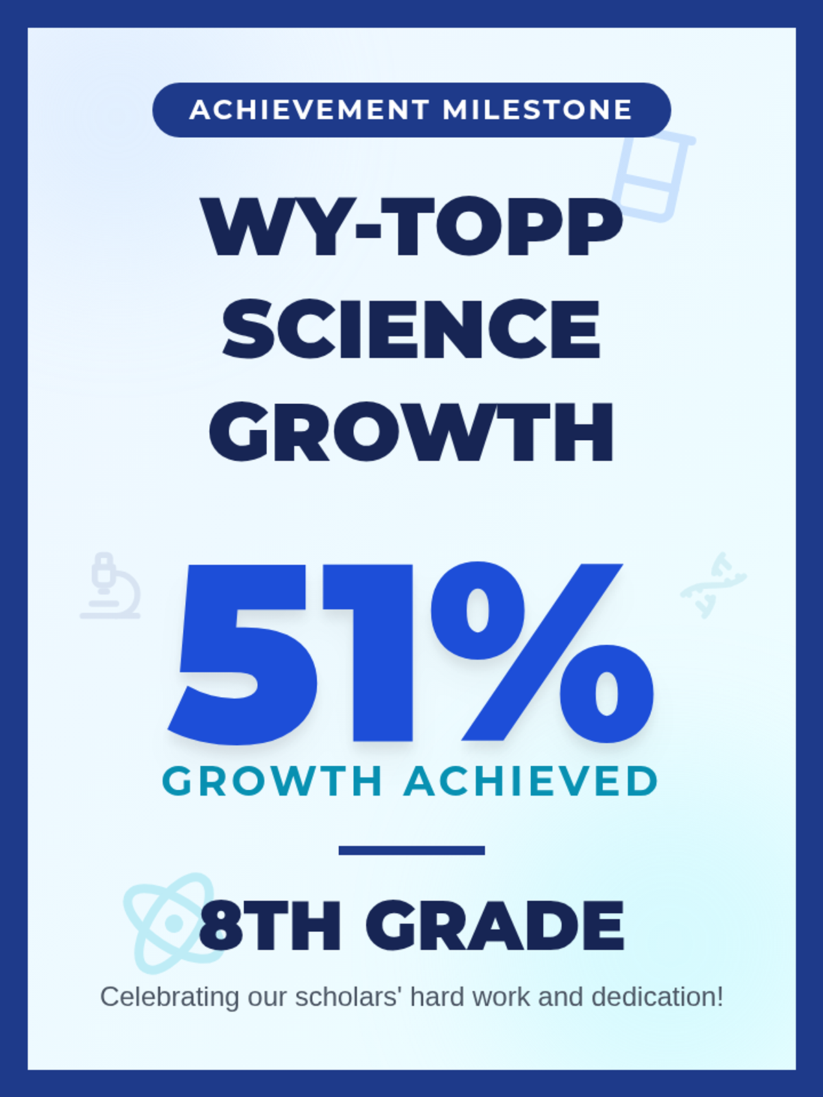 A set of vibrant, high-impact flyers celebrating student growth on WY-TOPP Math (6th/7th) and Science (8th) assessments.