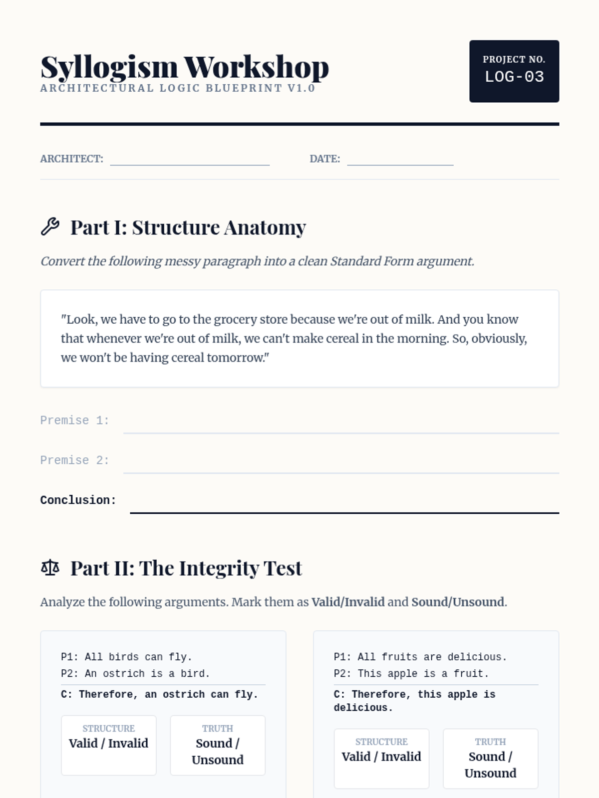 An introduction to the mechanics of formal logic, including syllogisms, premises, and conclusions.