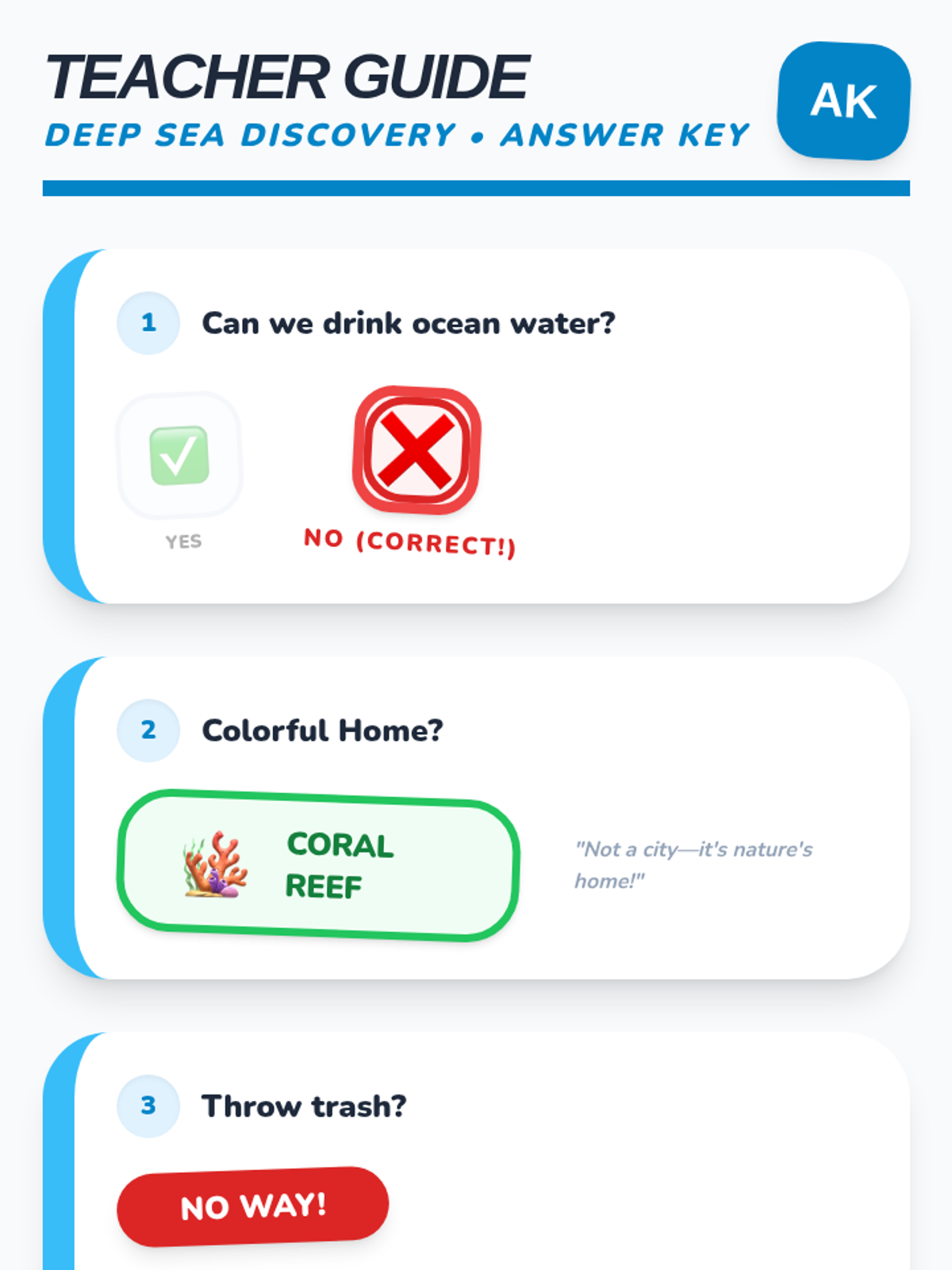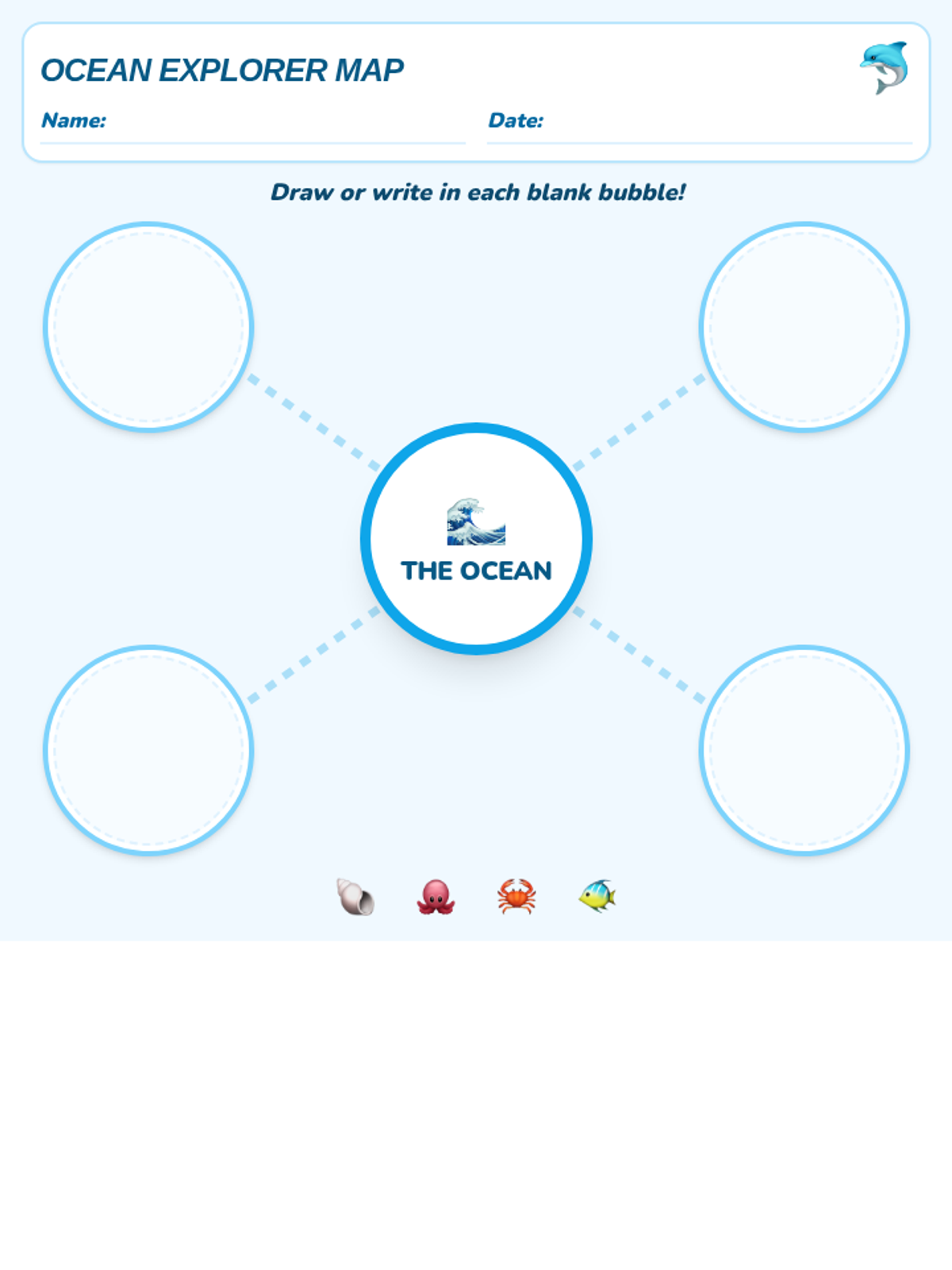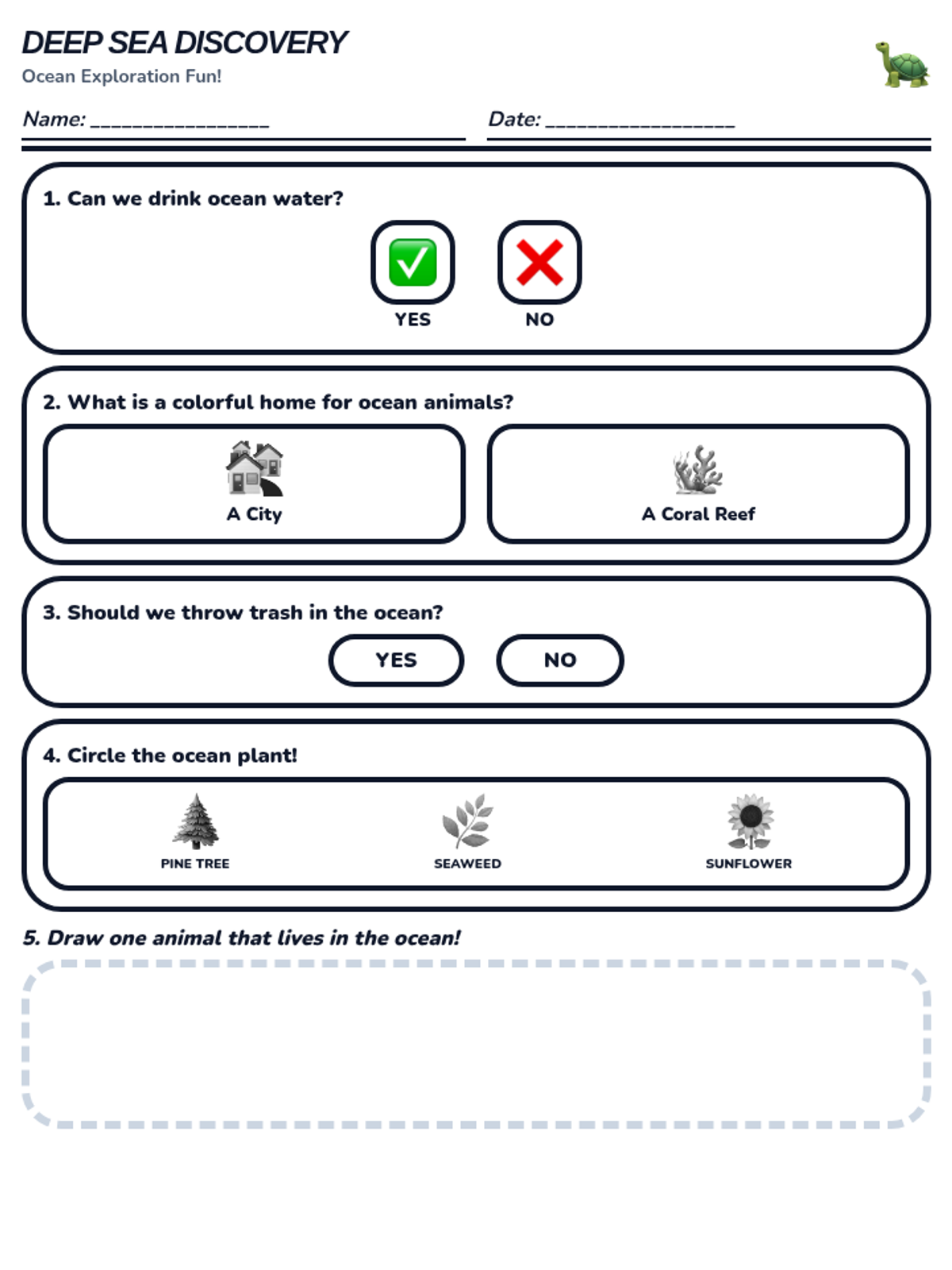 An introductory lesson for kindergarten students exploring basic ocean facts and marine life through visual aids and hands-on activities.
