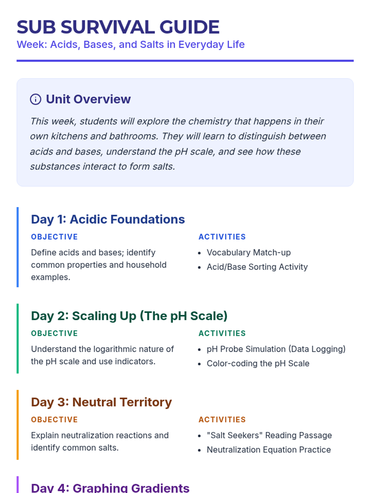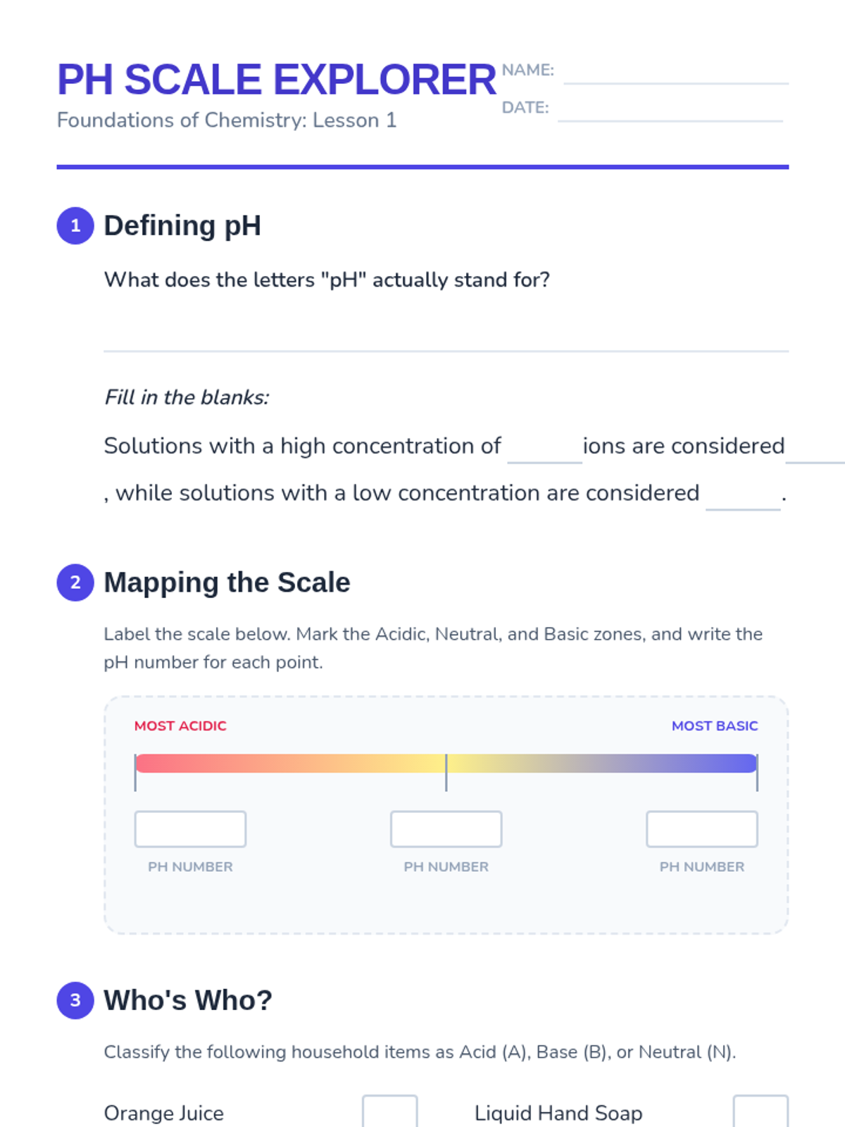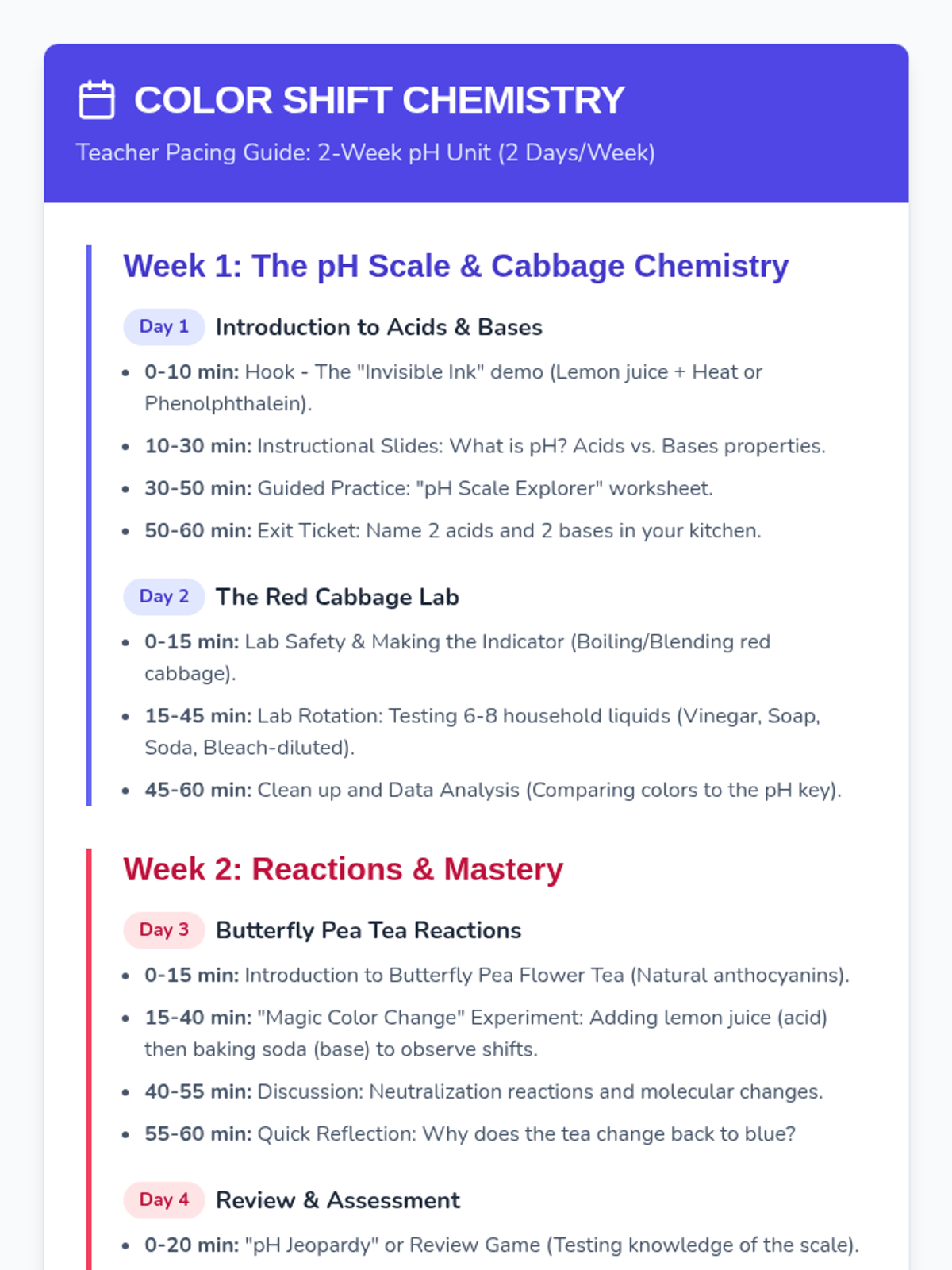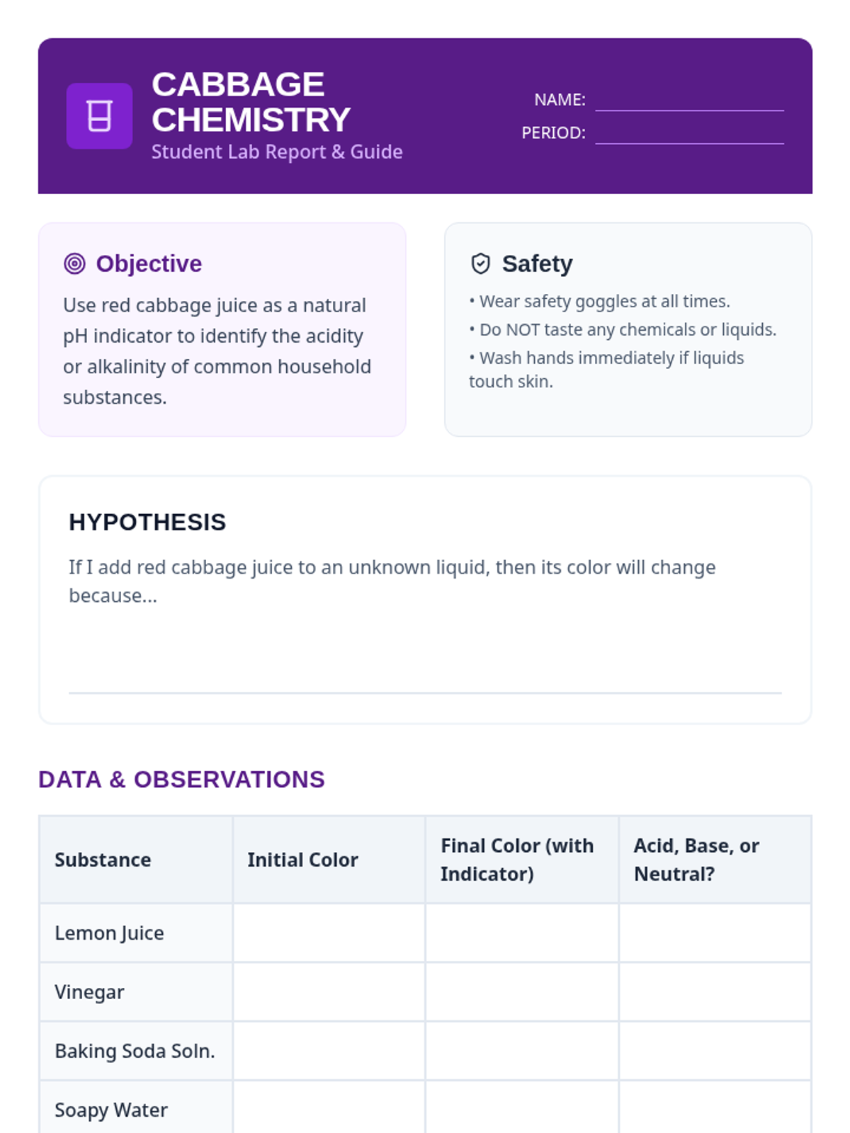 A hands-on laboratory session where students create a natural pH indicator from red cabbage and use it to test common household substances.