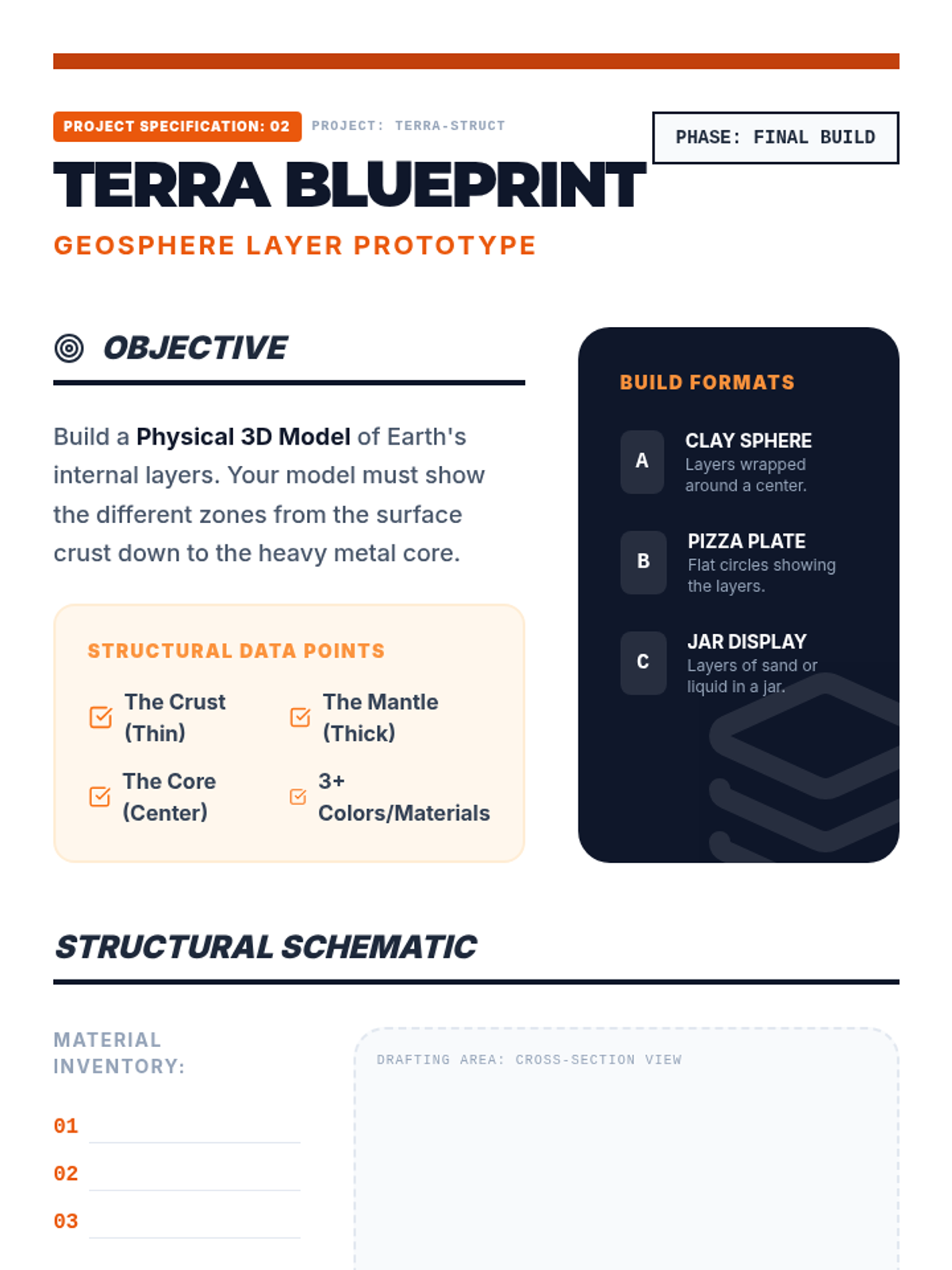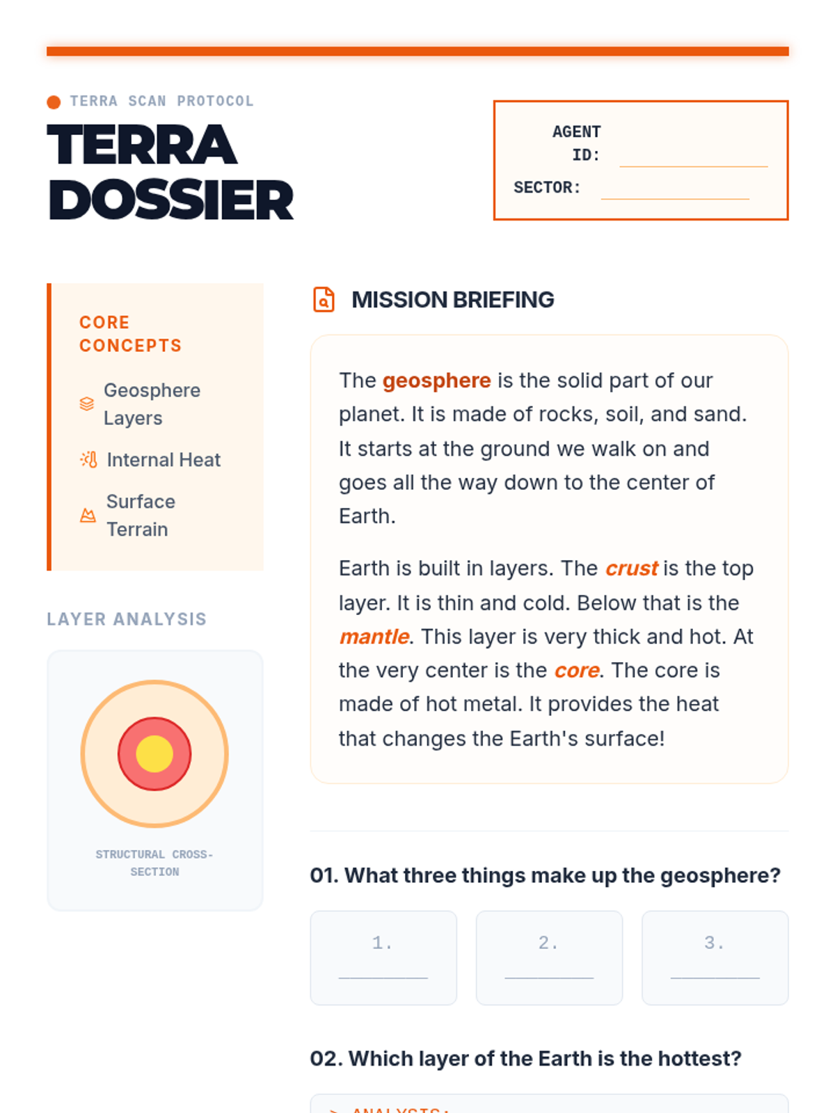 Students analyze the geosphere, exploring Earth's interior layers and the solid crust that forms the foundation of our planet's systems.