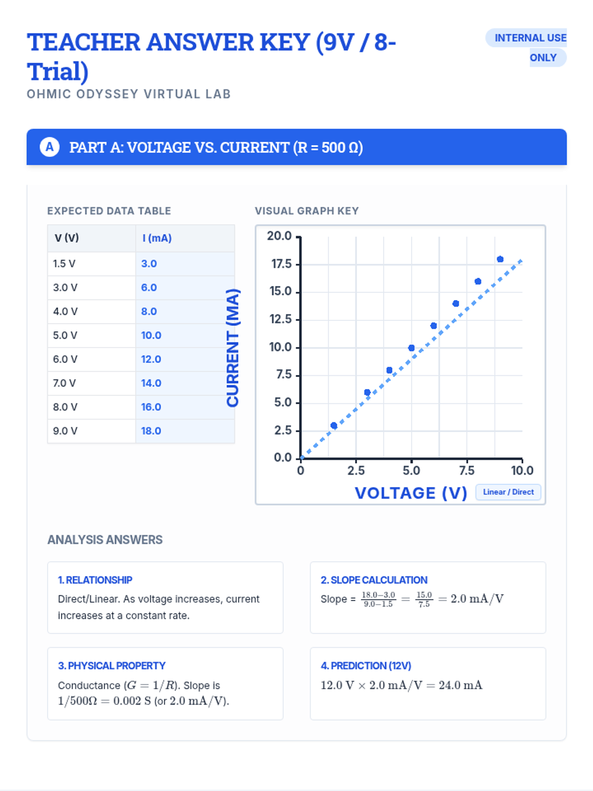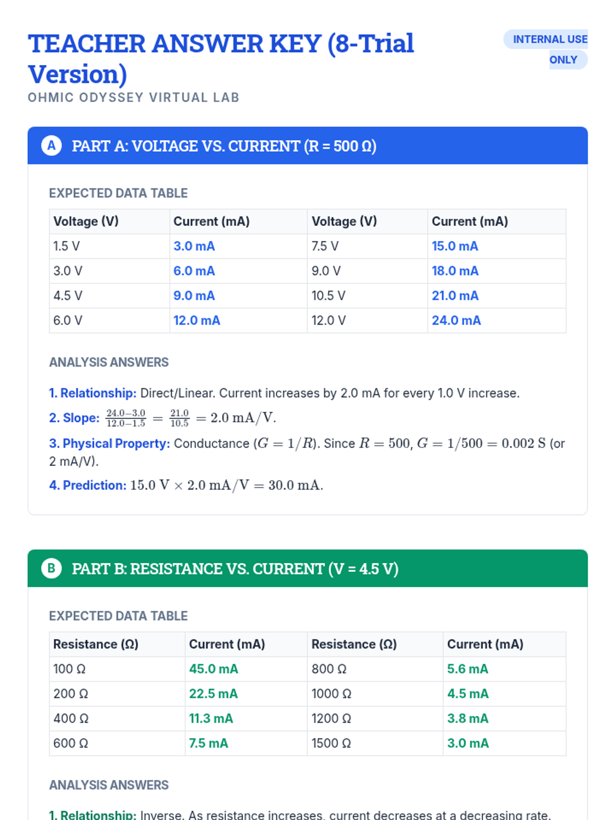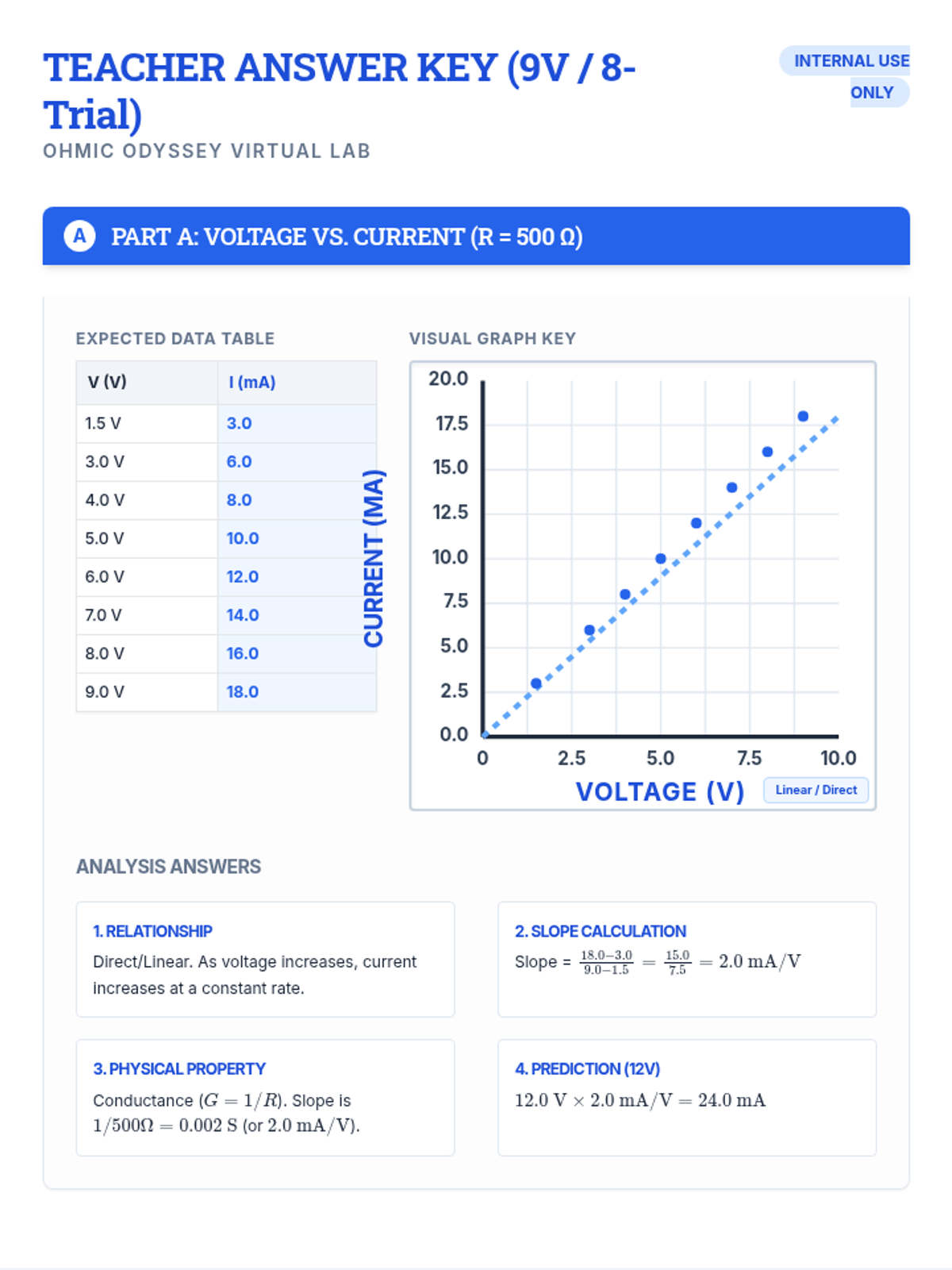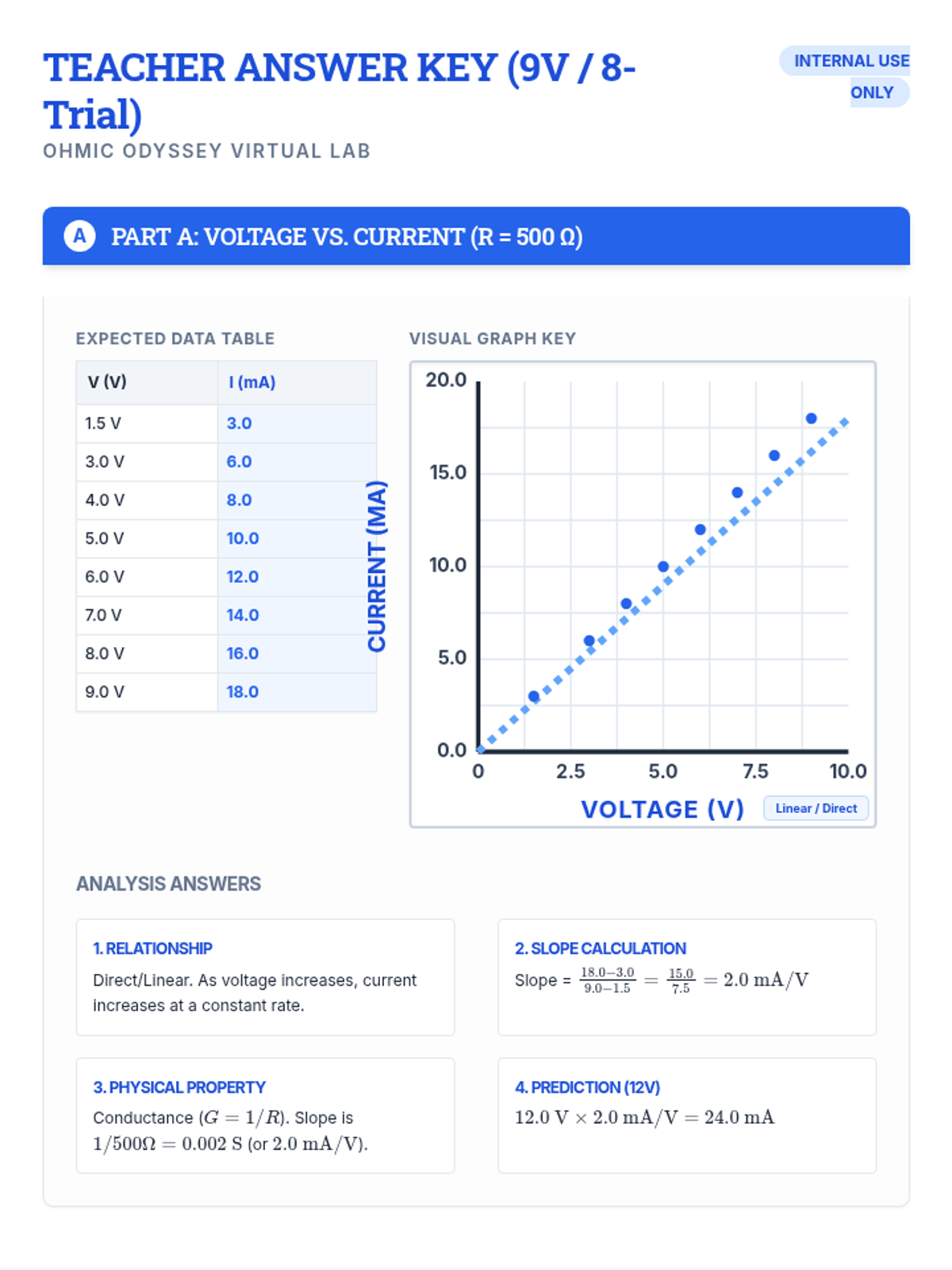 A hands-on virtual lab using the PhET Ohm's Law simulation to investigate the relationships between voltage, current, and resistance. Students collect data, graph results, and use CER to explain their findings.