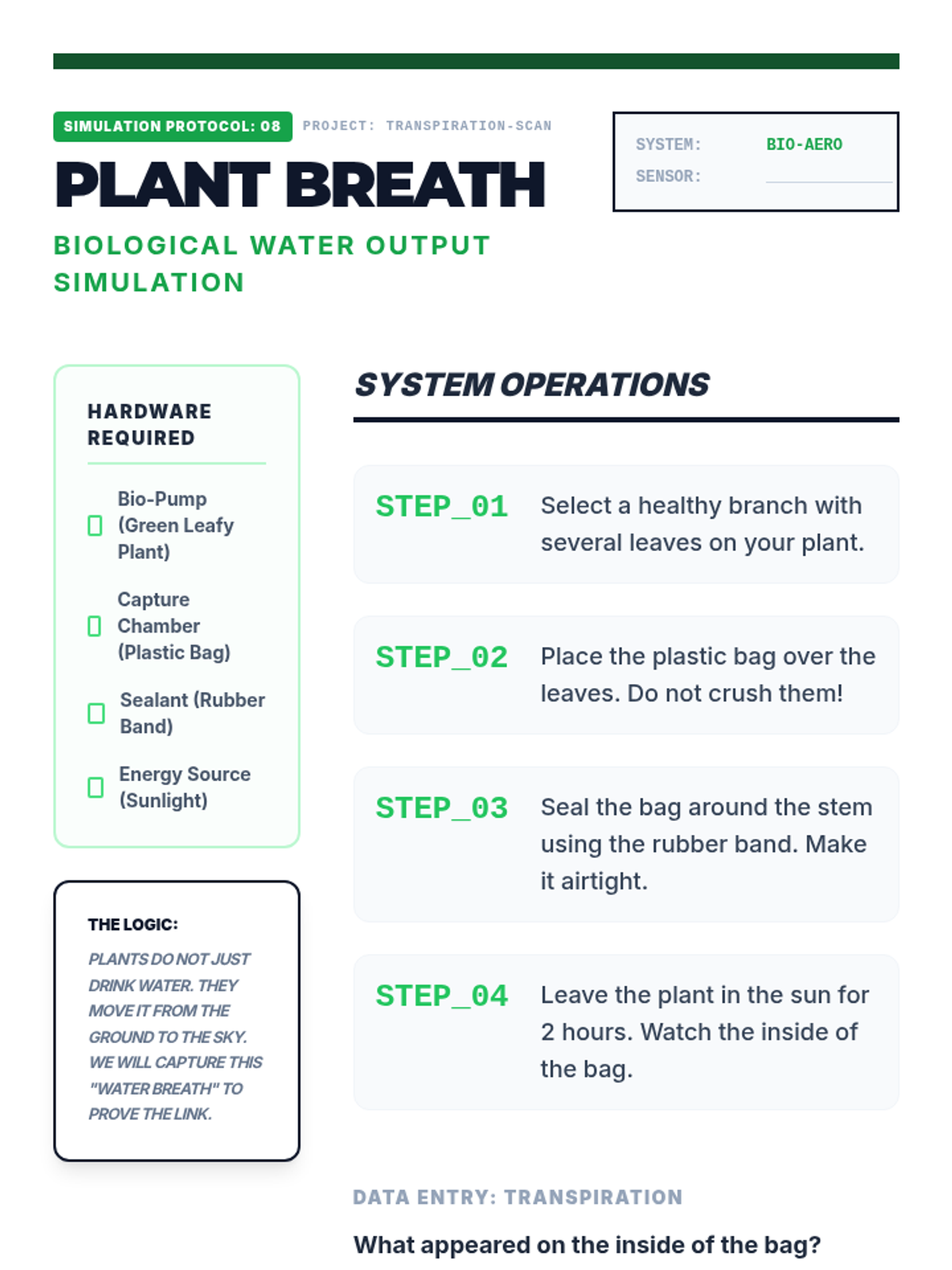 Students analyze how living things change their environment through processes like transpiration and decomposition.