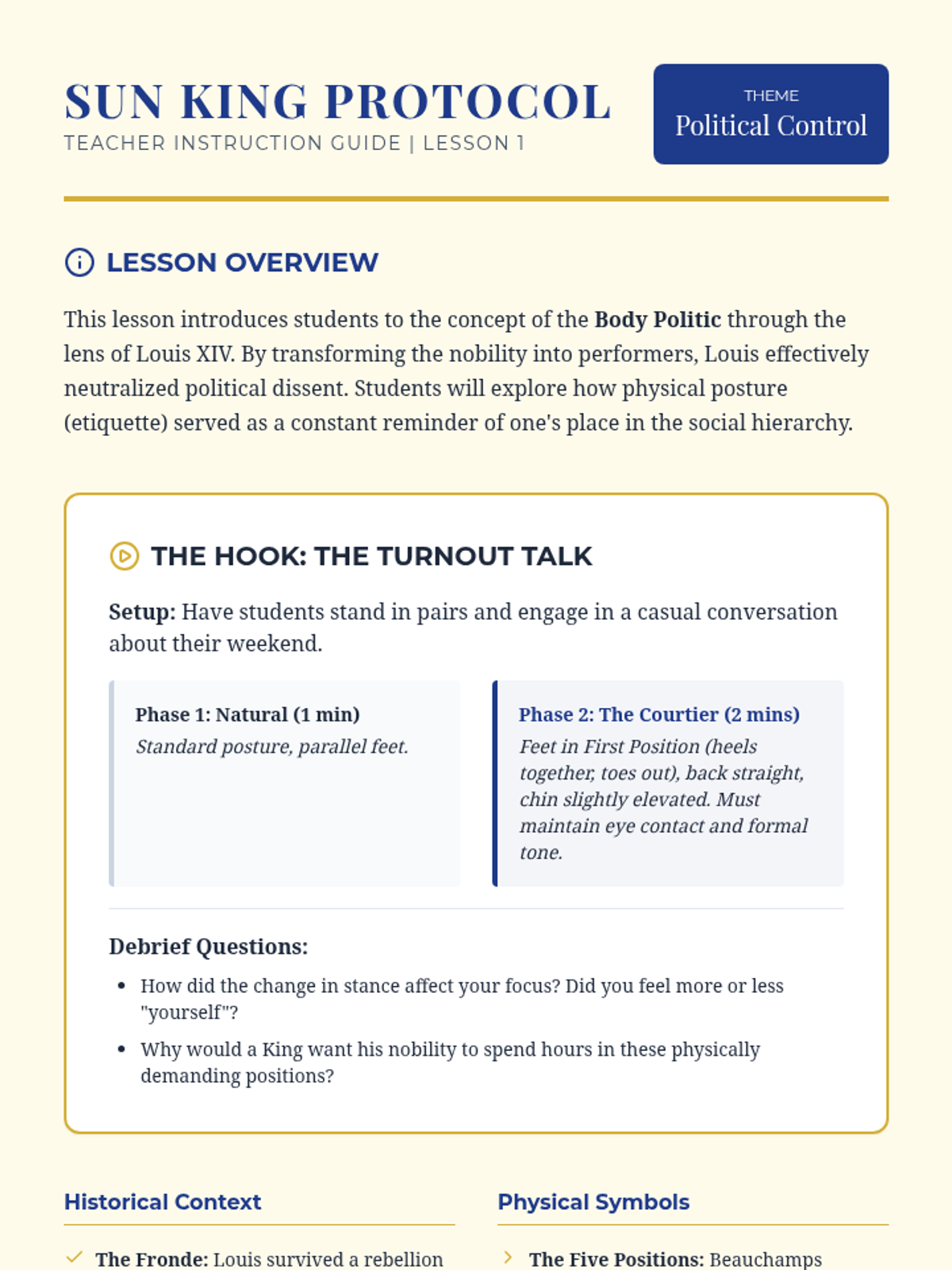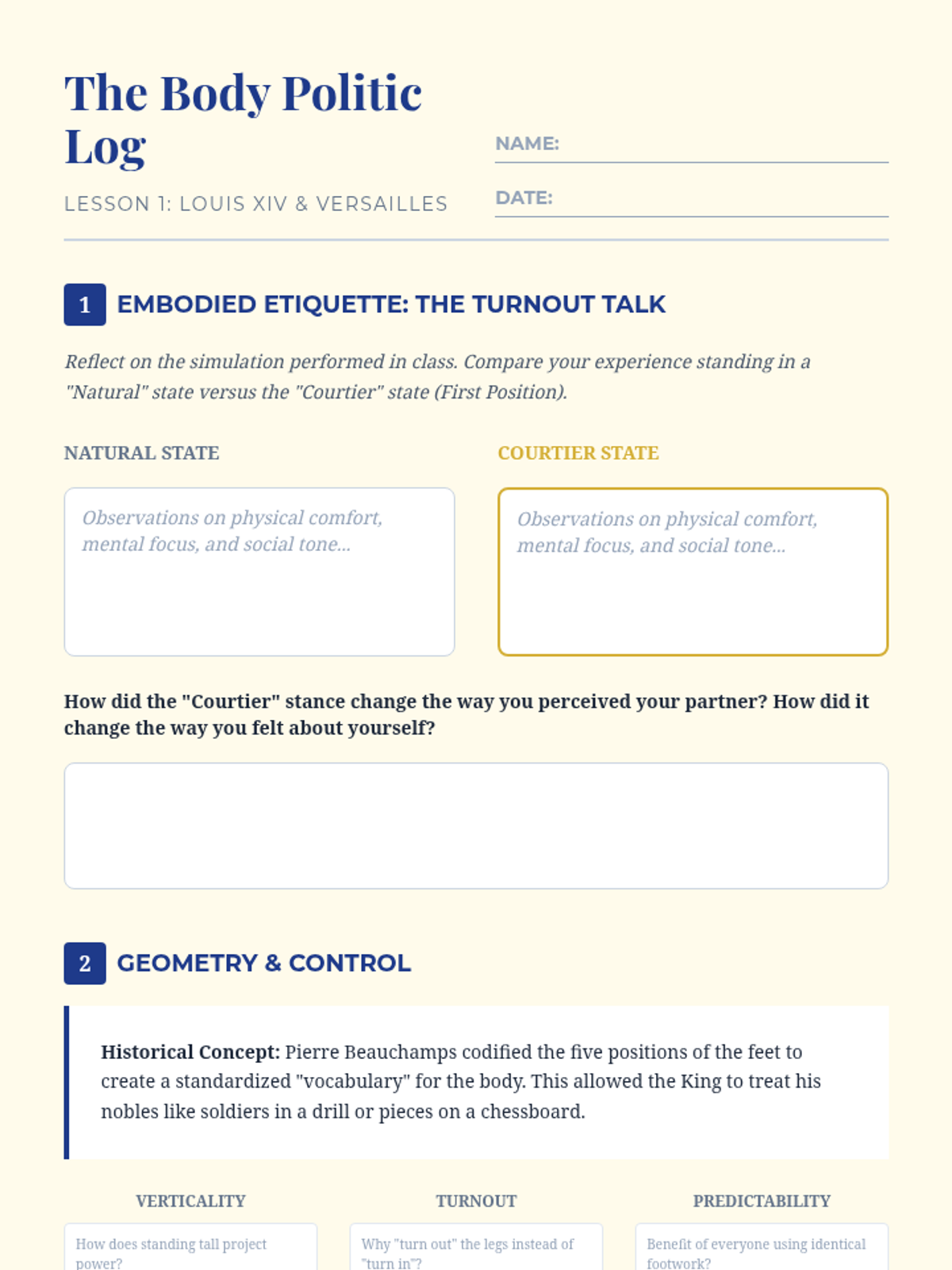 Examine the origins of ballet in the French court, focusing on Louis XIV's use of dance as a tool for political control and the codification of aristocratic deportment.