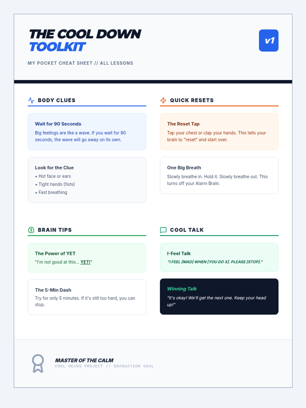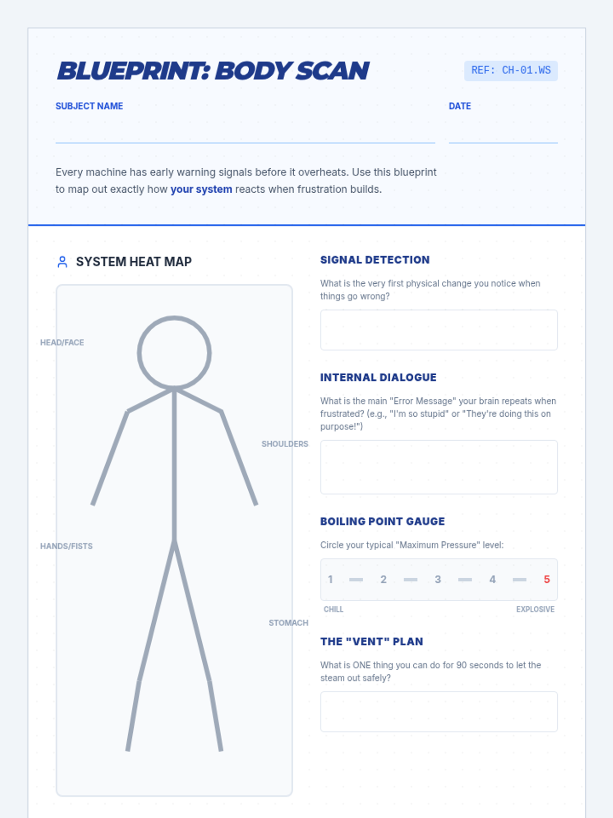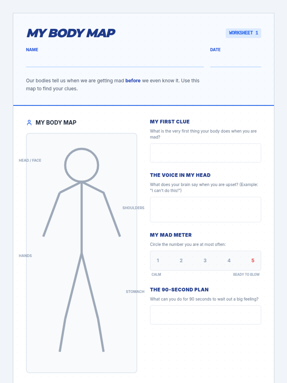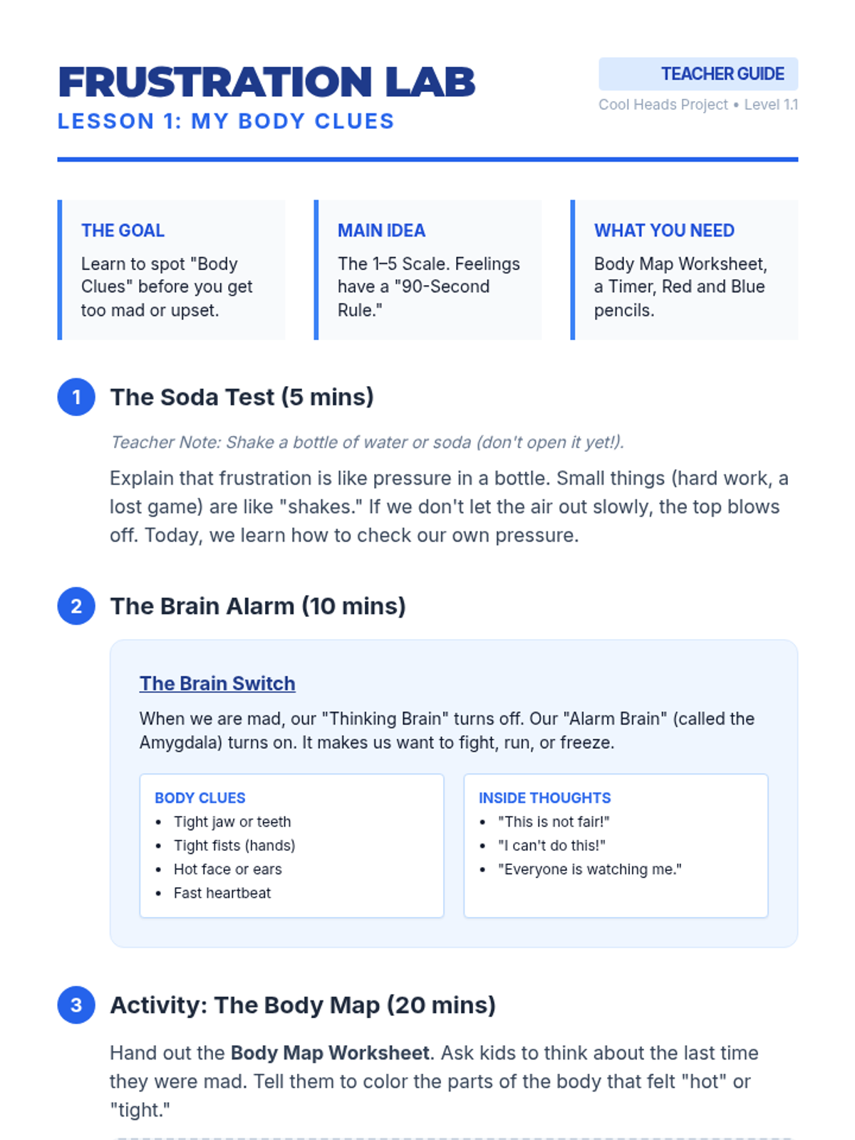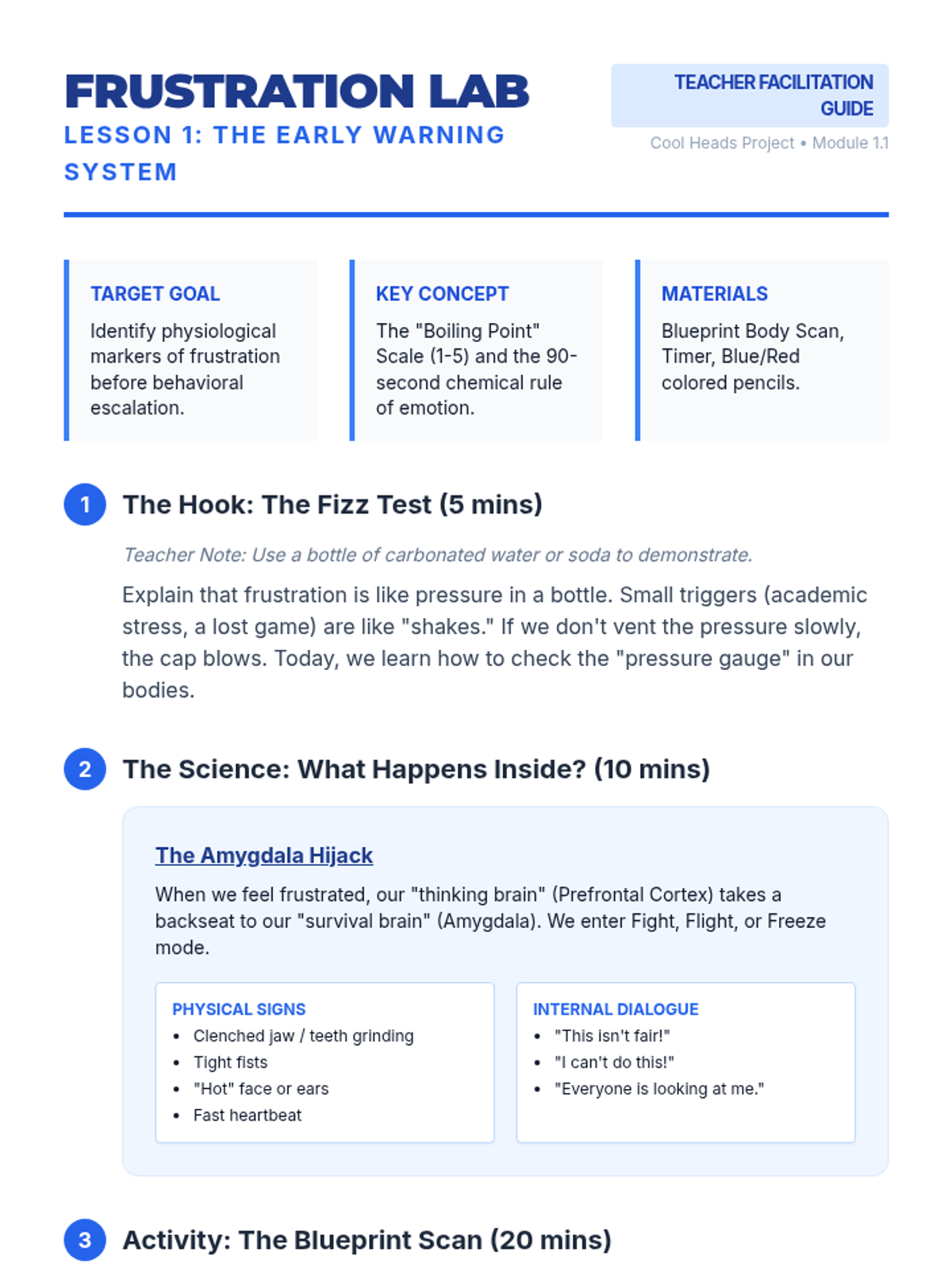 Students identify the physical sensations of frustration and learn to recognize their personal 'early warning signs' before they reach a boiling point.