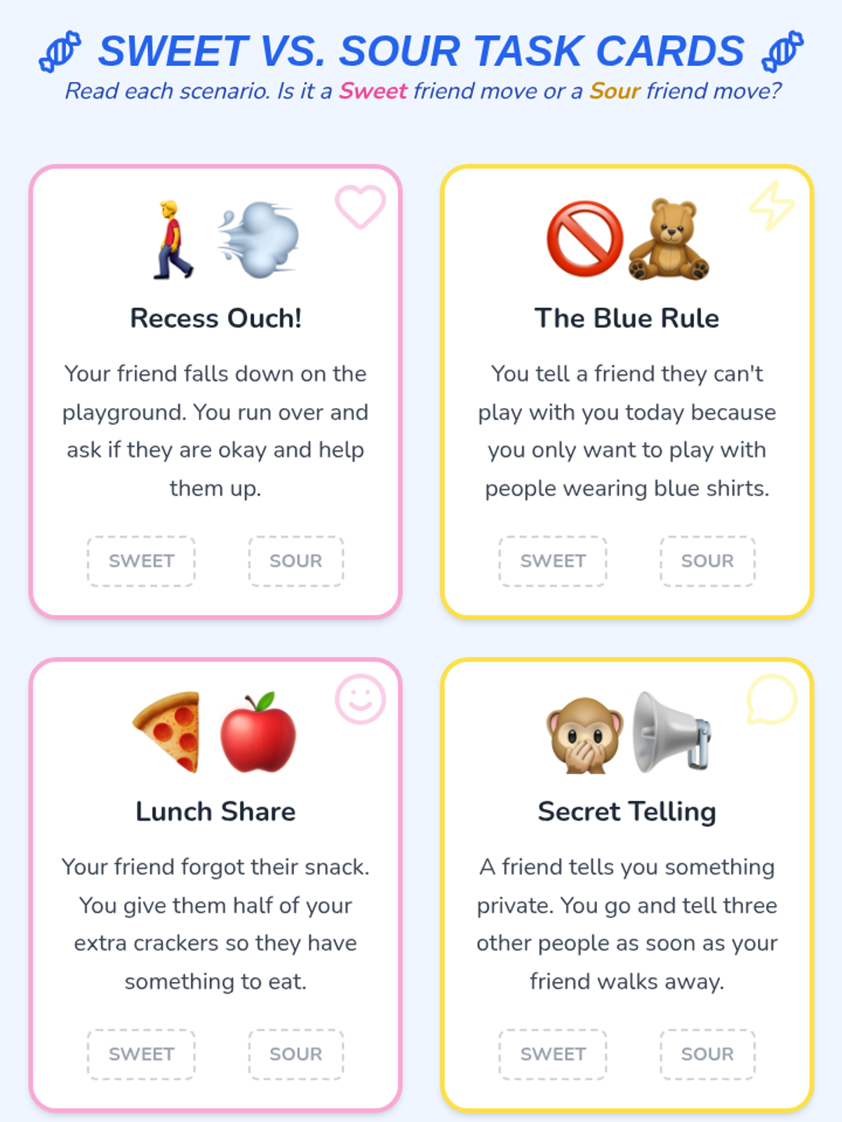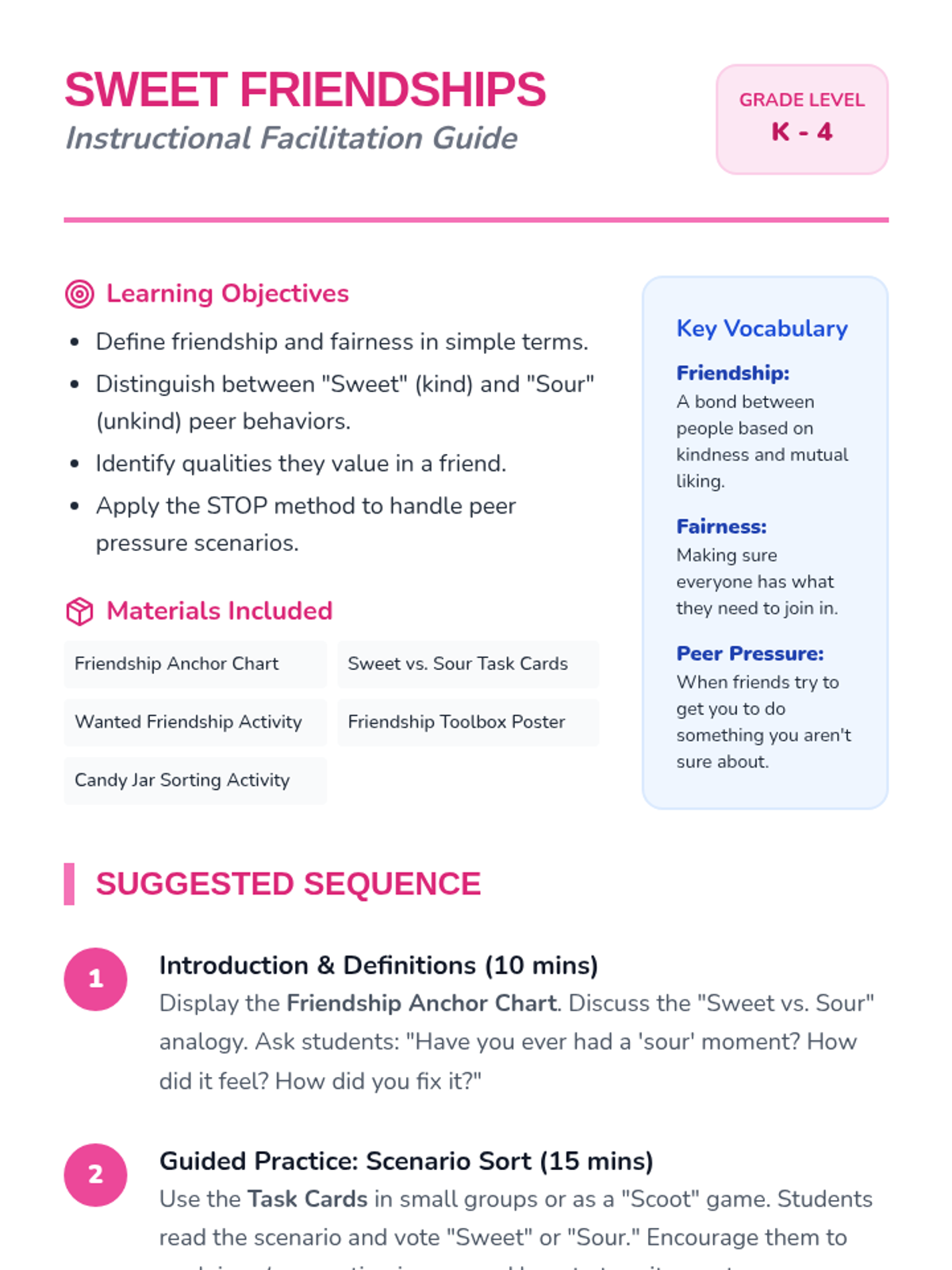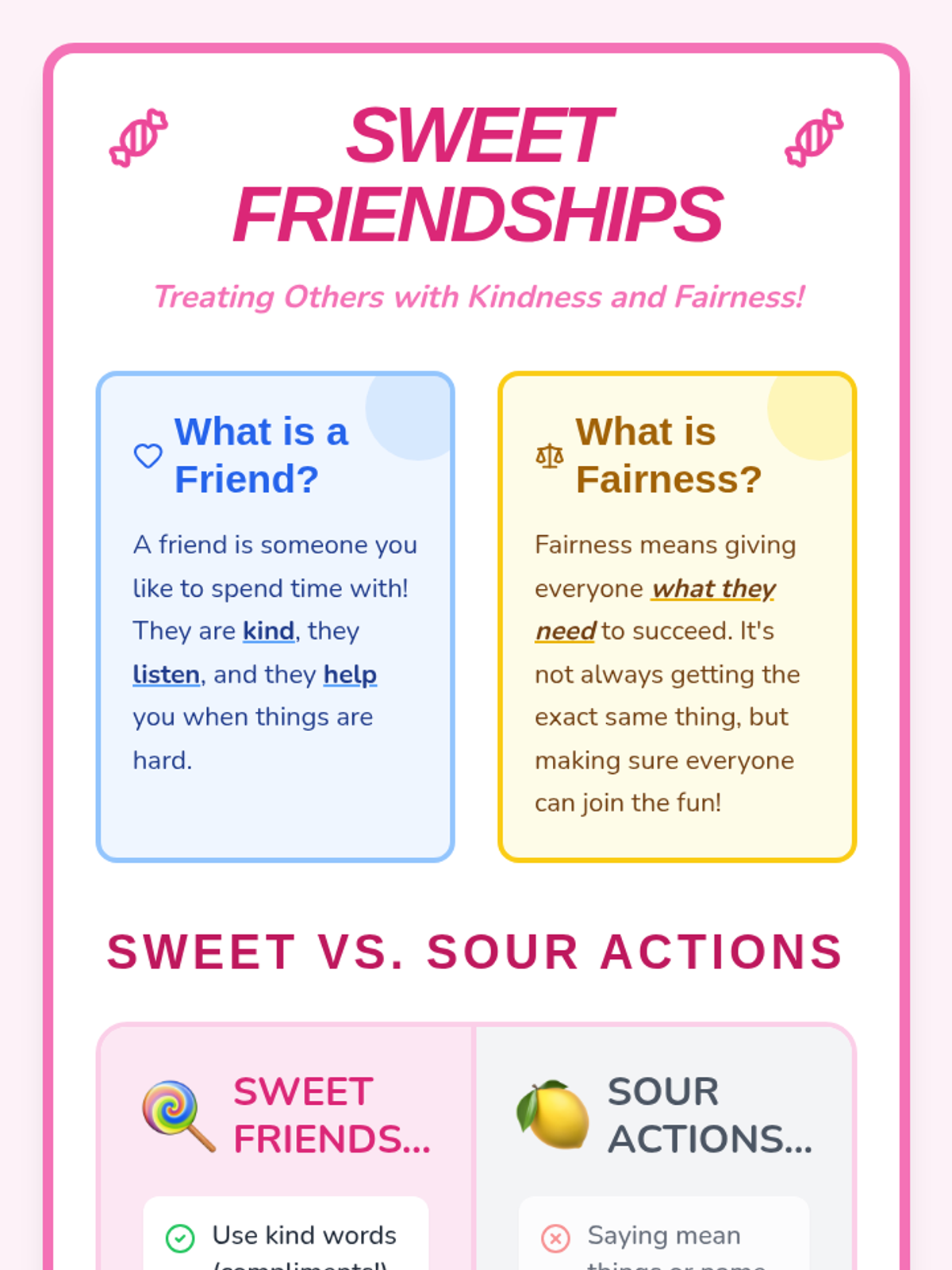 A comprehensive primary lesson focused on building positive relationships, understanding fairness, and developing social skills through interactive candy-themed activities.