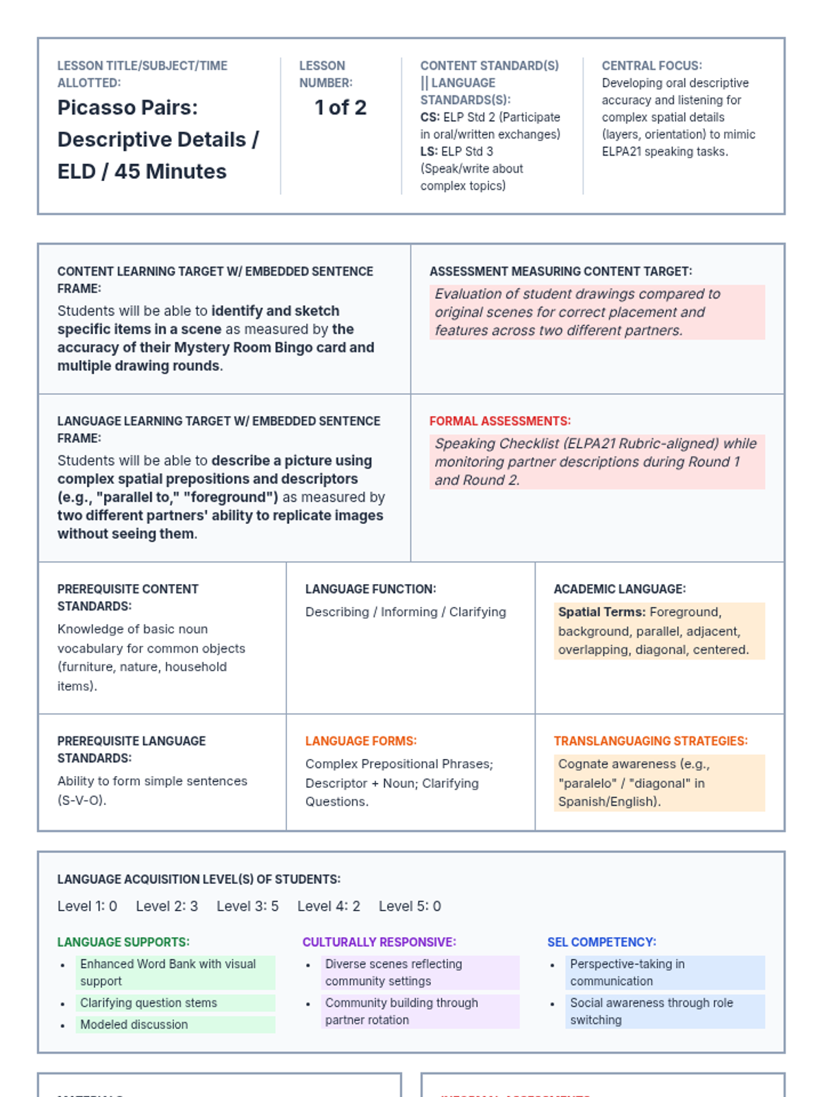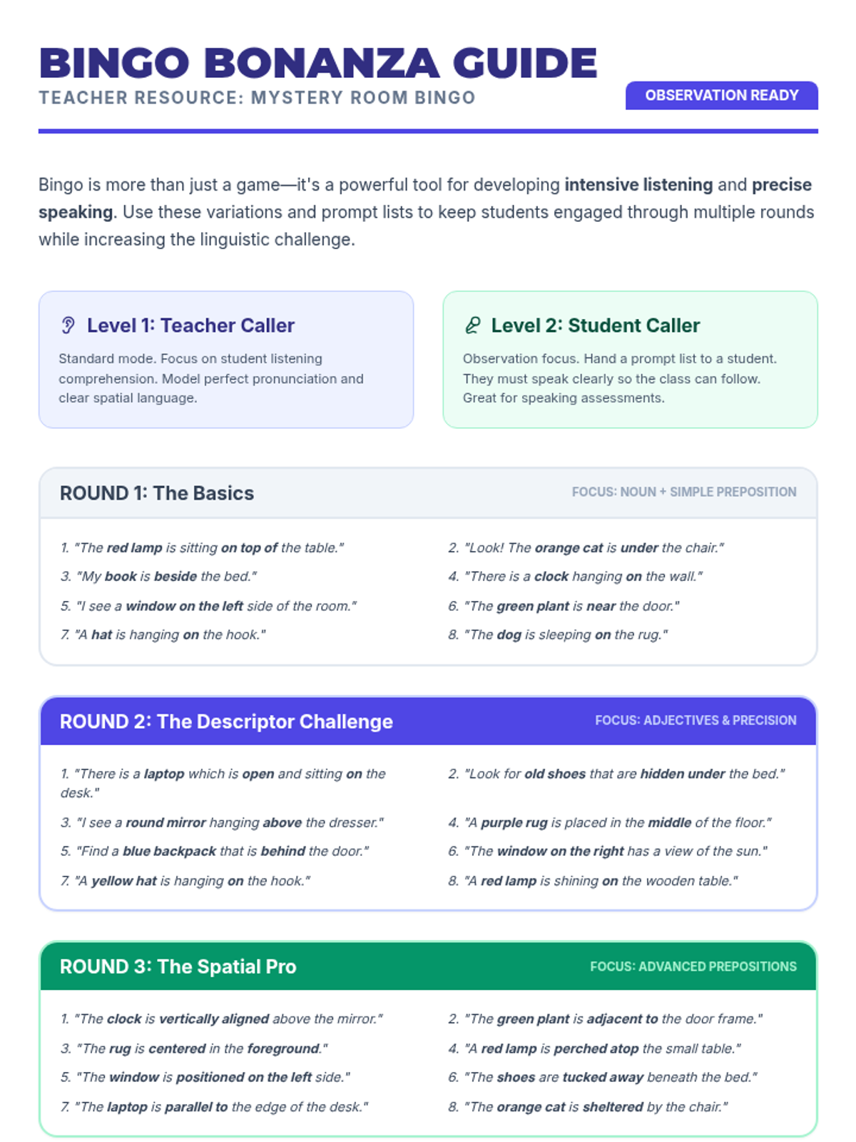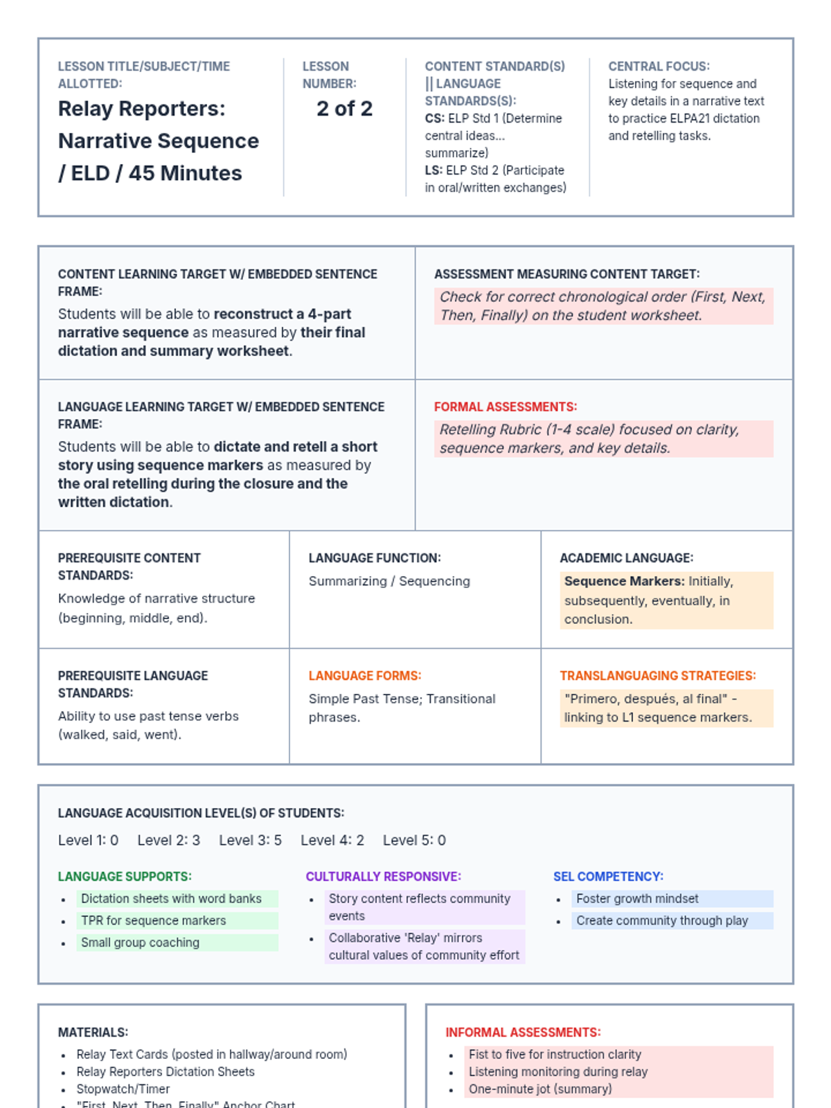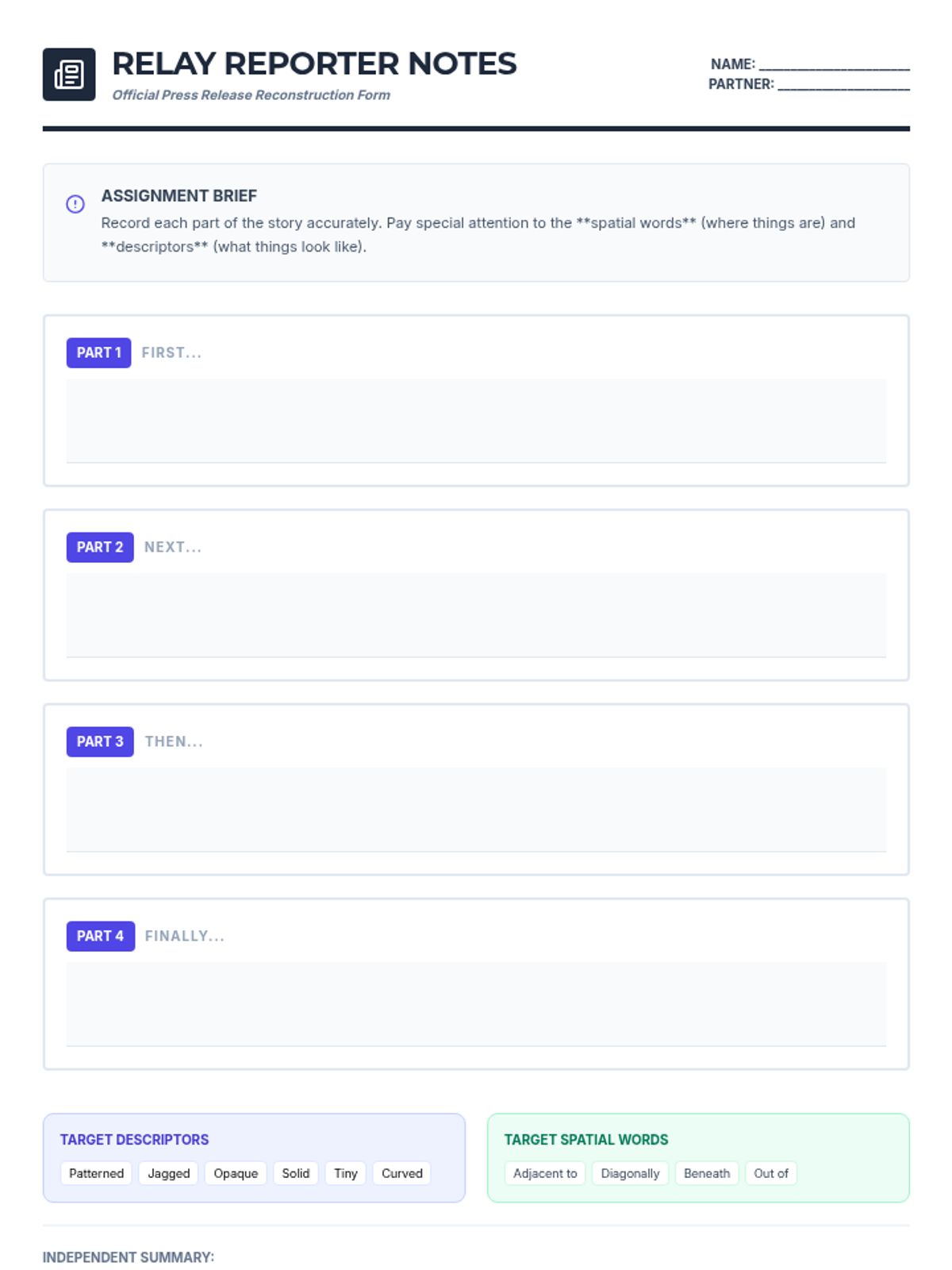 A lesson focused on listening for detail and narrative sequencing through a high-energy running dictation and retelling activity.