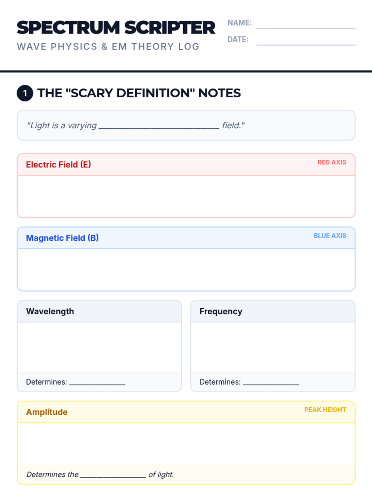 A physics lesson exploring the fundamental nature of light as an electromagnetic wave, focusing on electric and magnetic fields, wavelength, frequency, and amplitude.