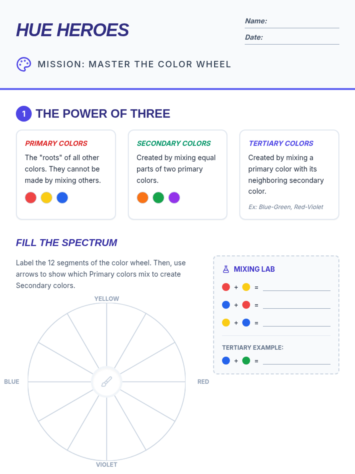 A foundational exploration of color theory for middle schoolers, covering the color wheel, color relationships, and practical application through a creative design project.