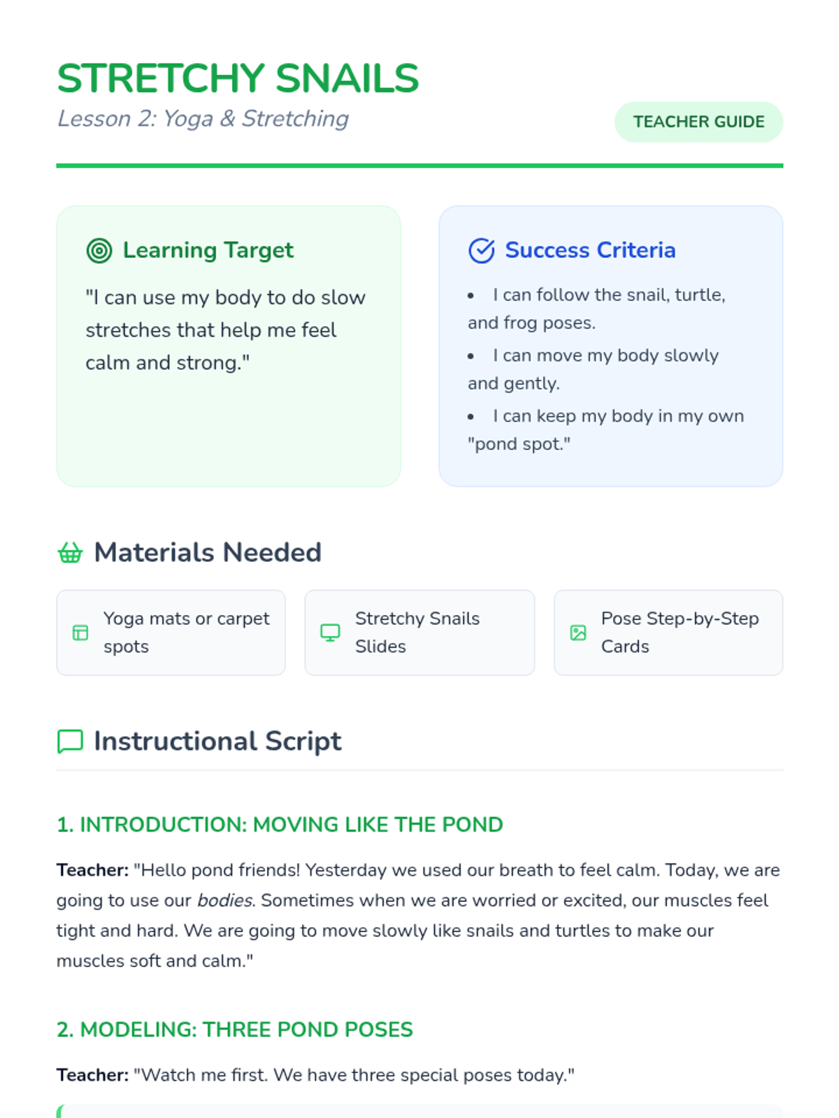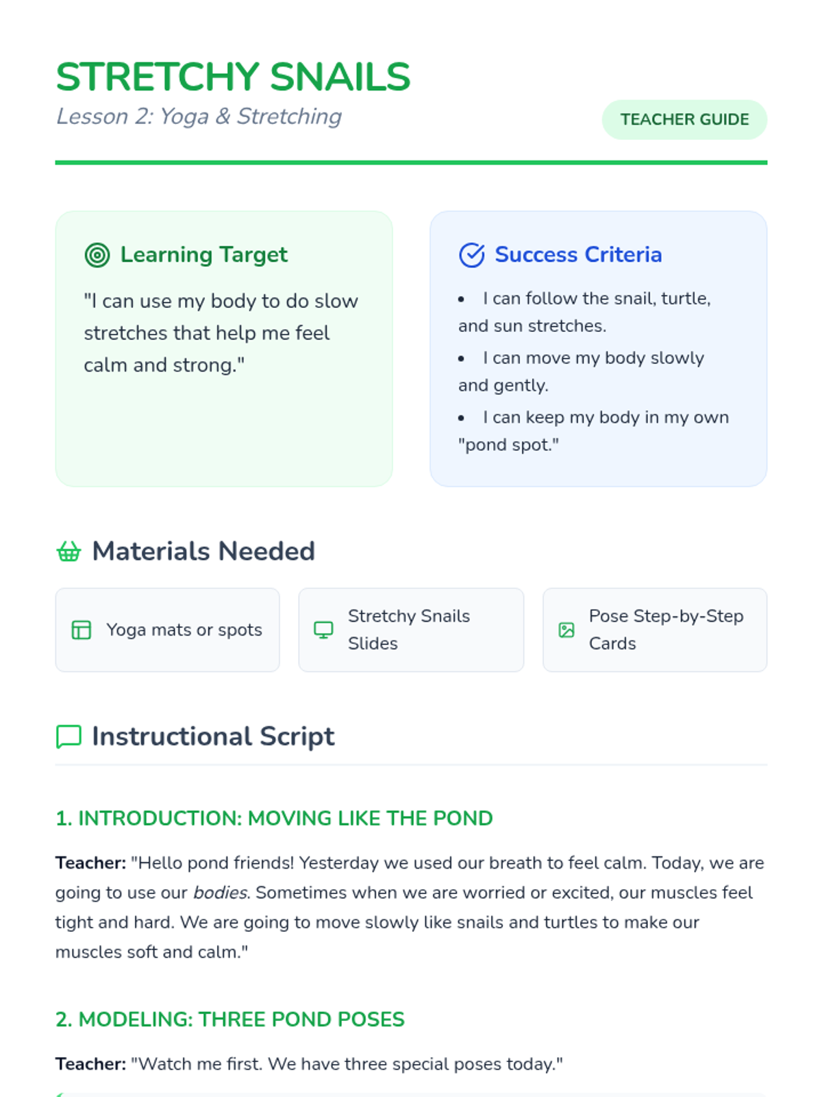 Students explore gentle yoga and stretching movements inspired by pond animals to release physical tension and focus their minds.