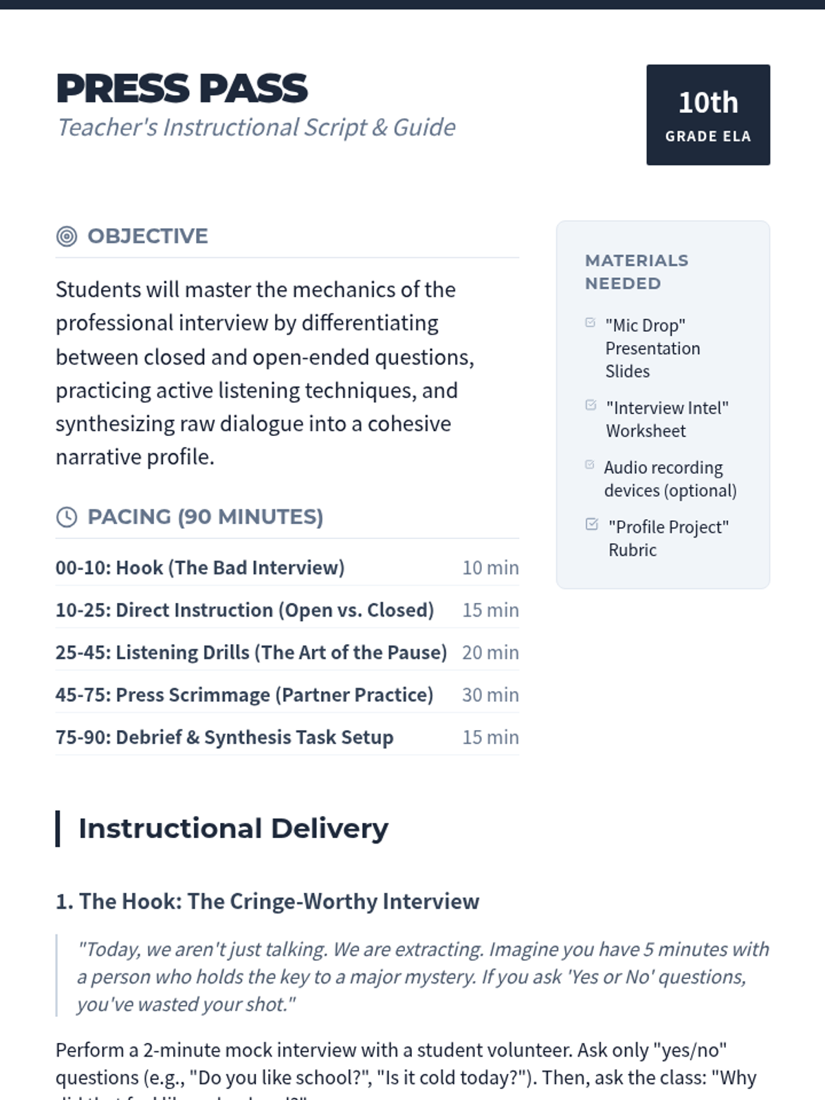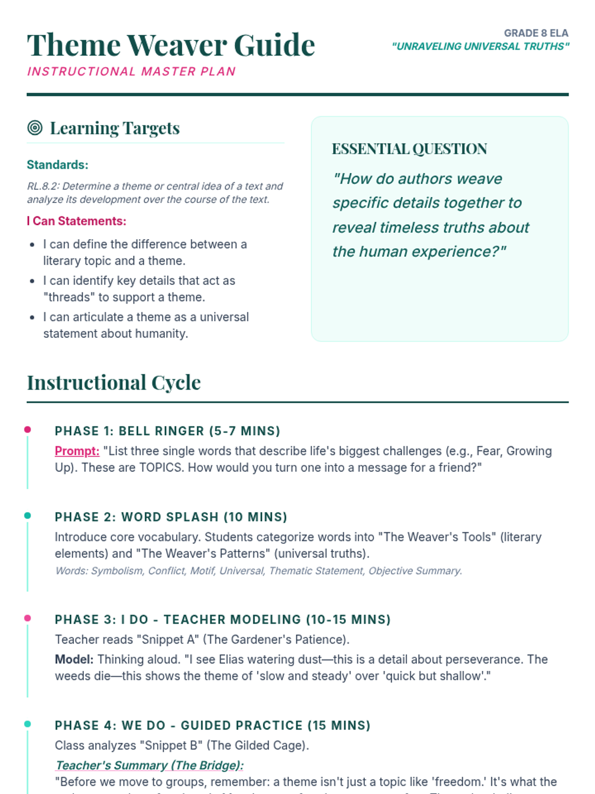 A comprehensive lesson for grades 7-10 focusing on mastering main idea identification through diverse texts, including fiction, history, and current events. Students will learn to distinguish between explicit and implicit main ideas and connect them to supporting details.