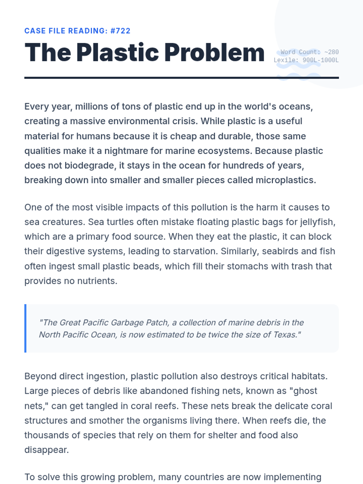 A focused practice session for 6th-grade students to sharpen their listening comprehension skills using SBAC-aligned question stems and an engaging mystery about underwater sounds.