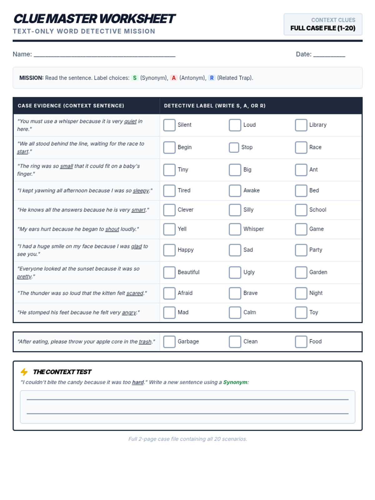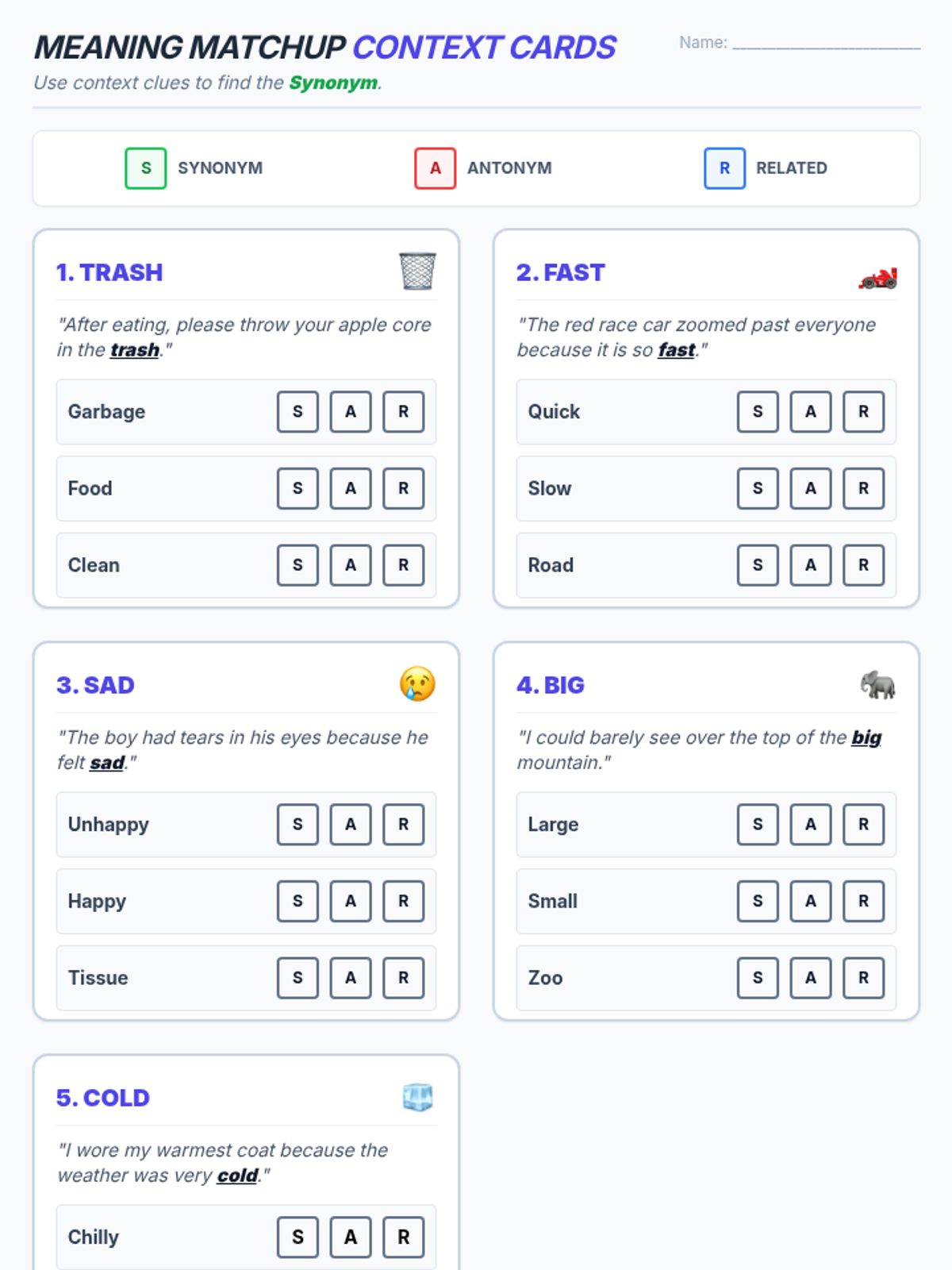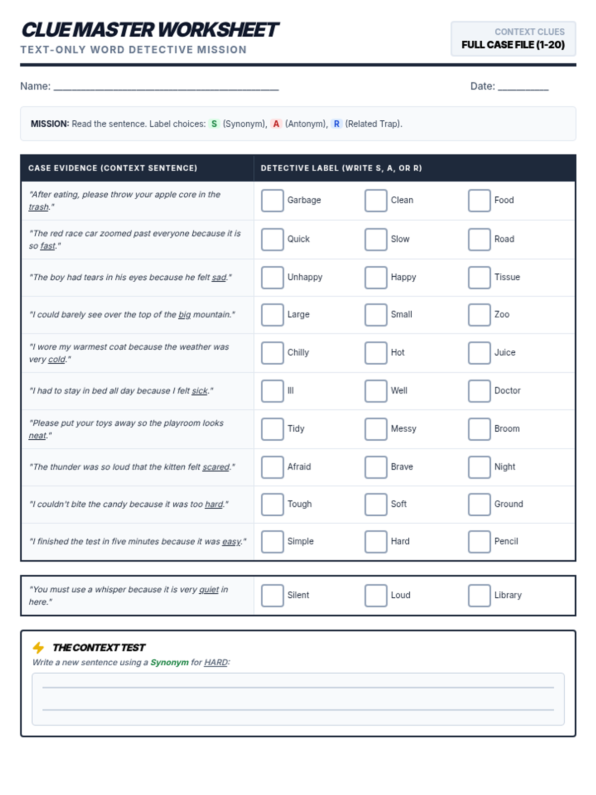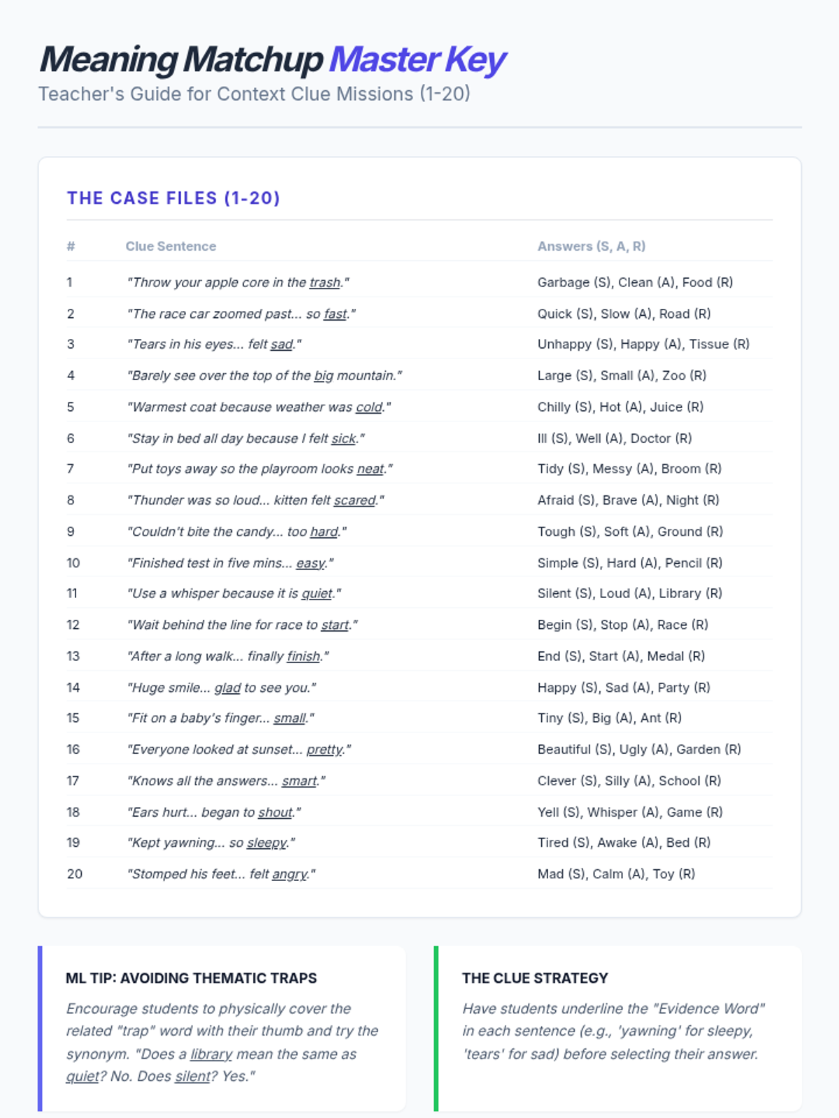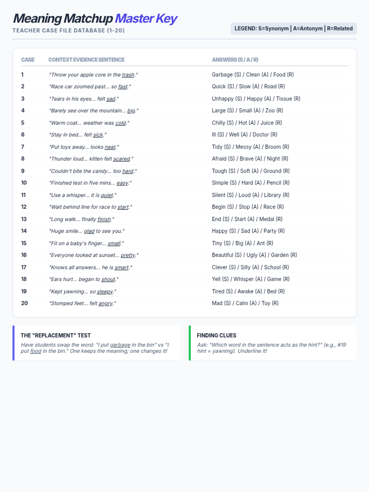 A foundational lesson on synonyms and antonyms that explicitly addresses thematic confusion (related vs. similar) using visual sorting activities and text-based practice.