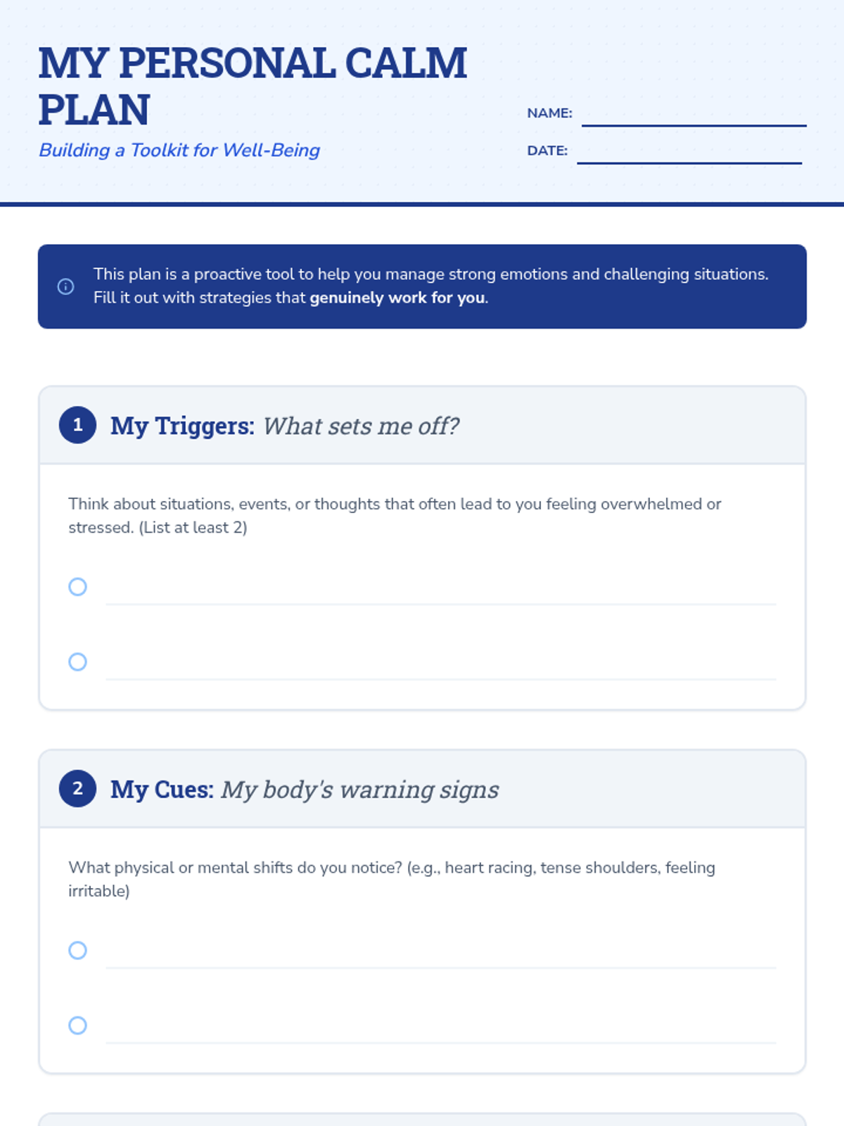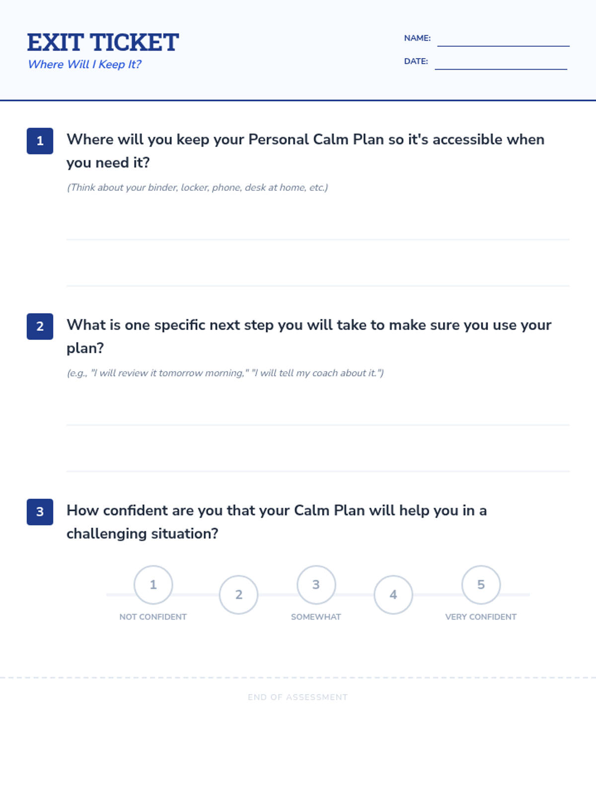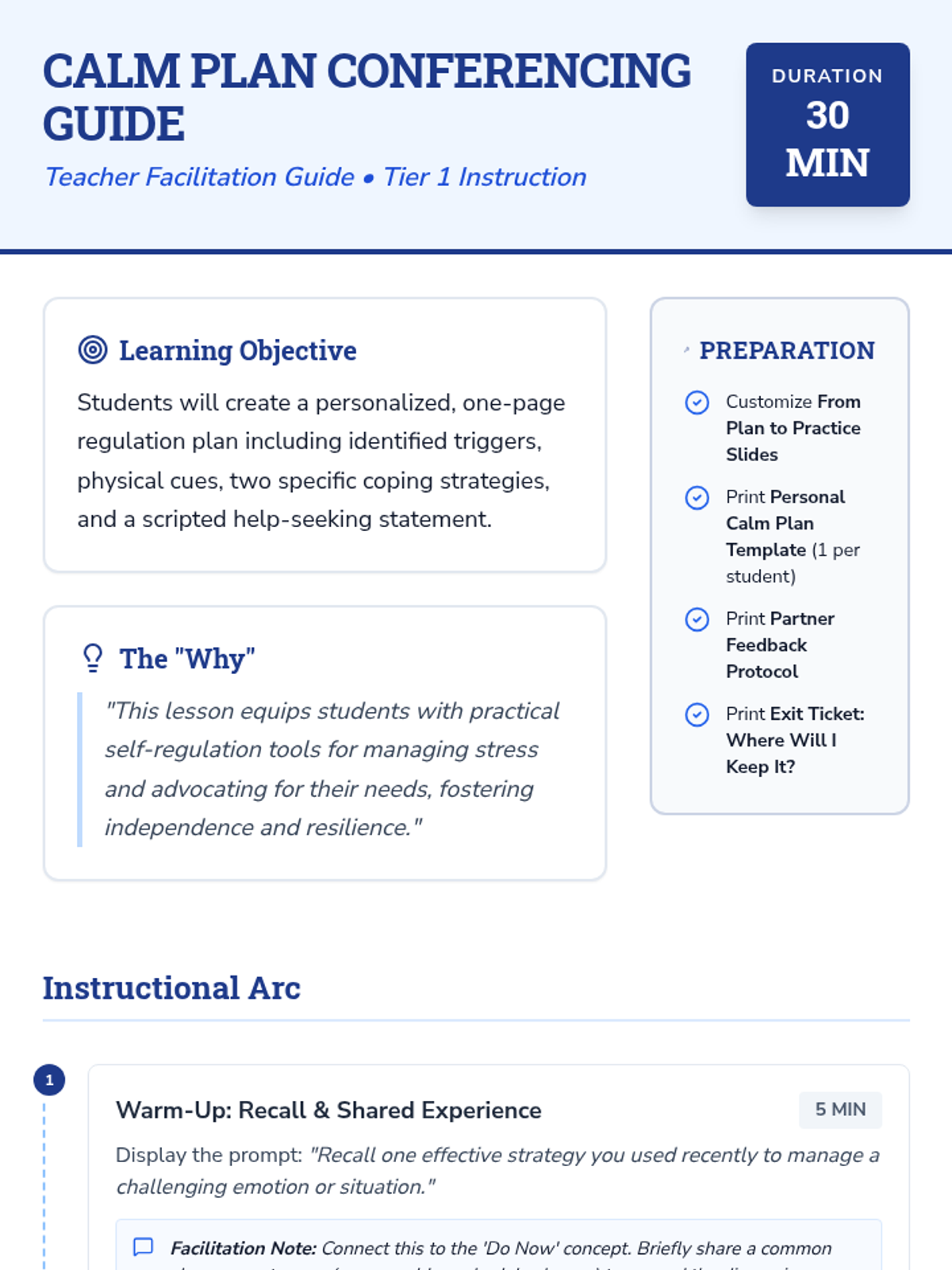 A 30-minute Tier 1 classroom lesson where 10th-grade students create a personalized one-page regulation plan to manage stress and advocate for their needs.