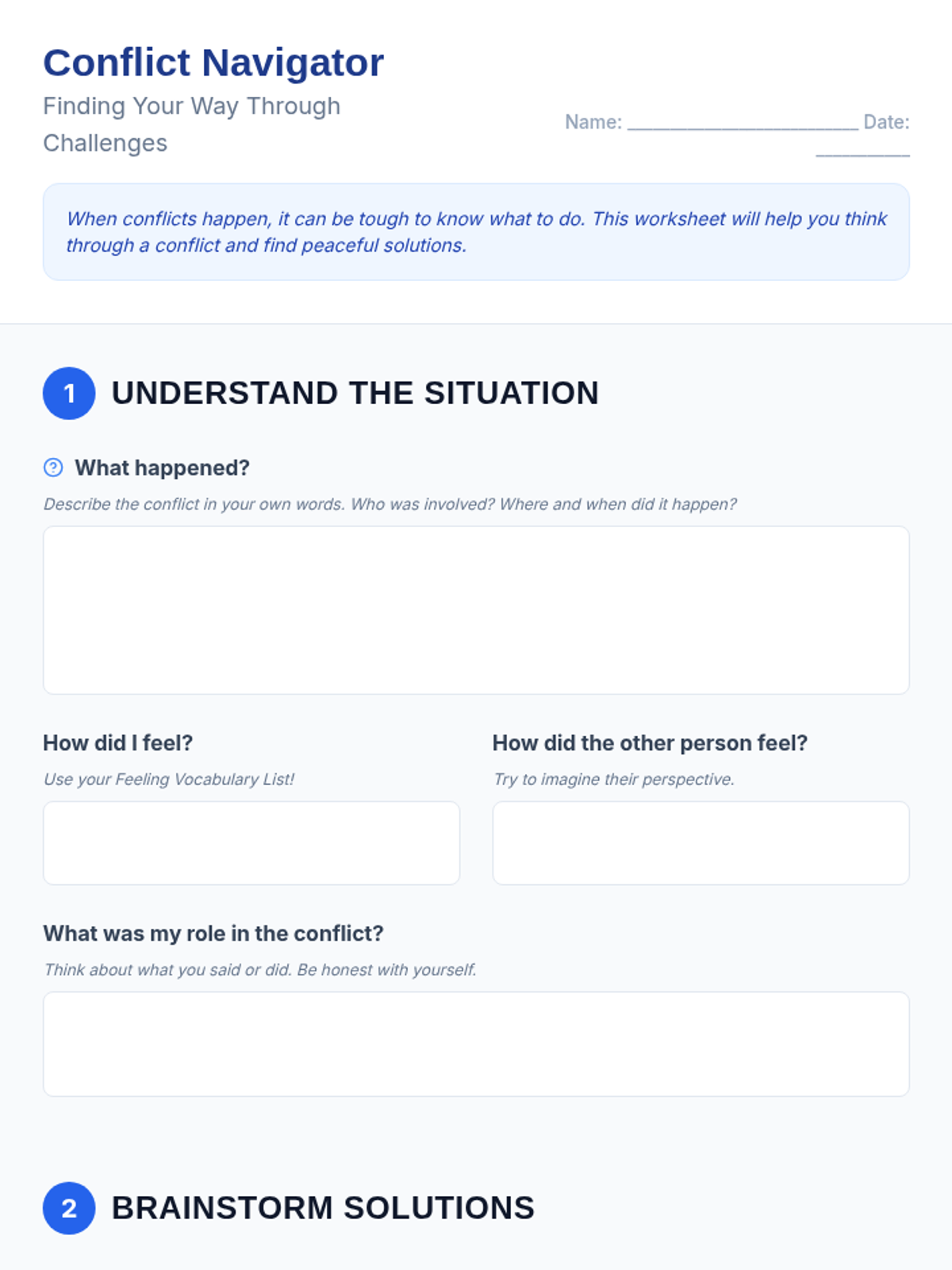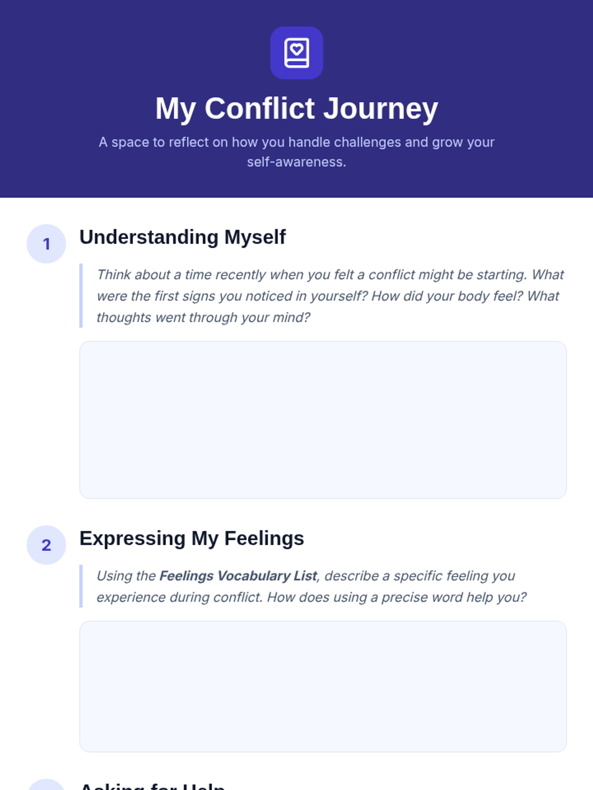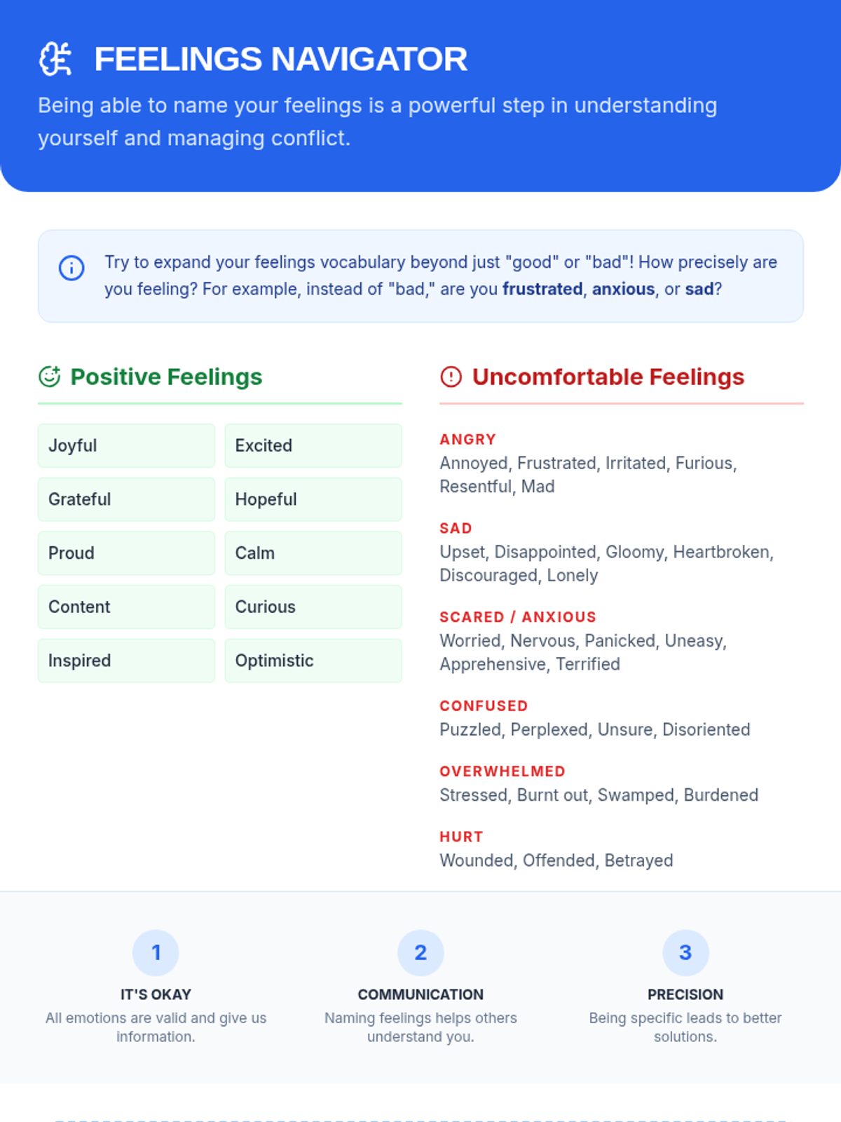 A 30-minute individual Tier 3 lesson for a 9th-grade student to develop conflict management skills, identifying triggers, expressing emotions, and seeking support.