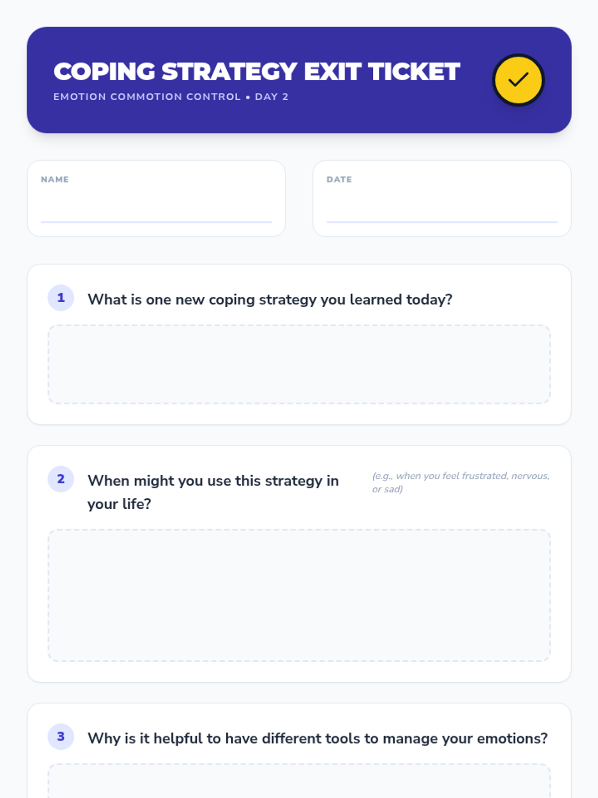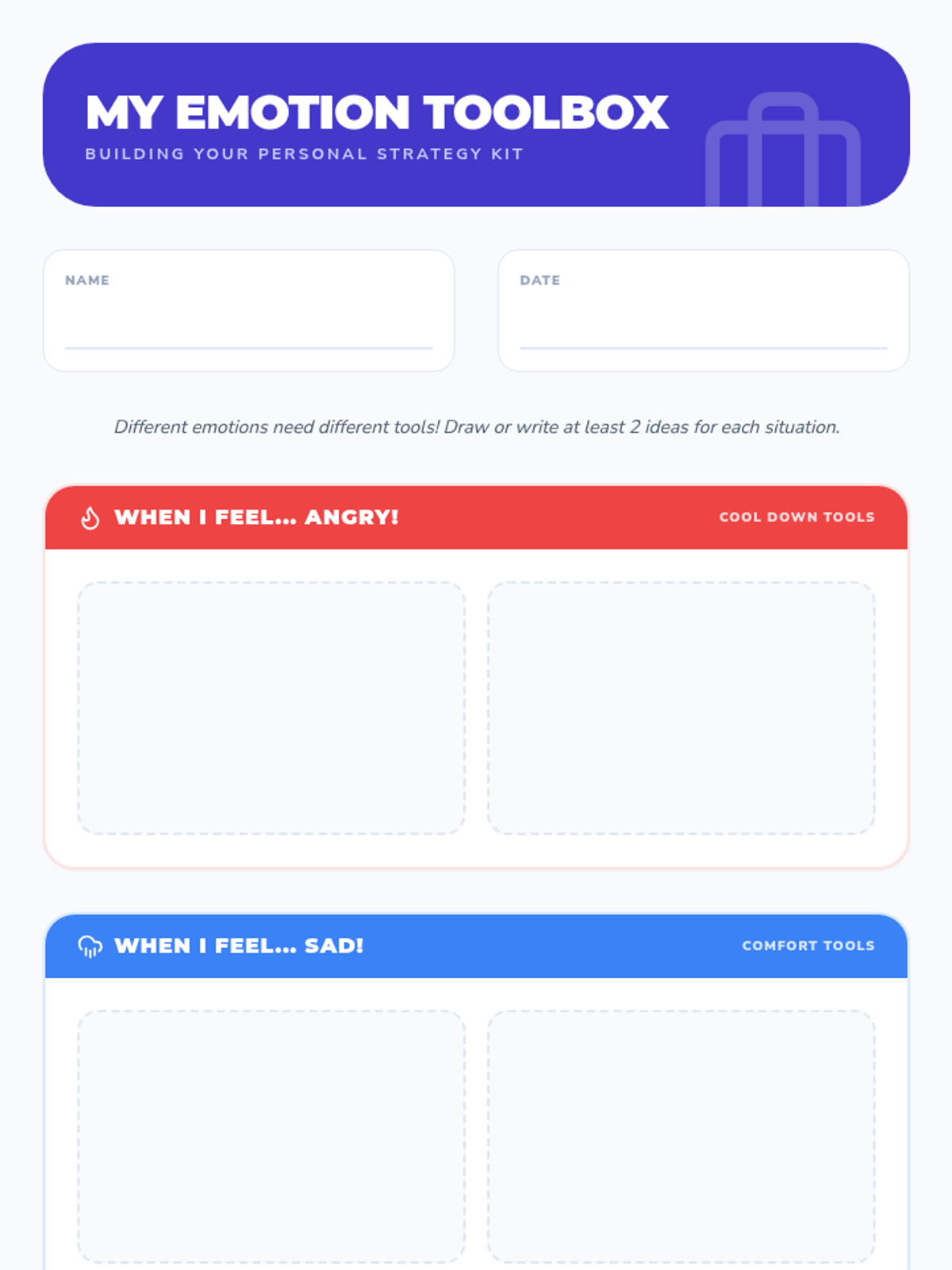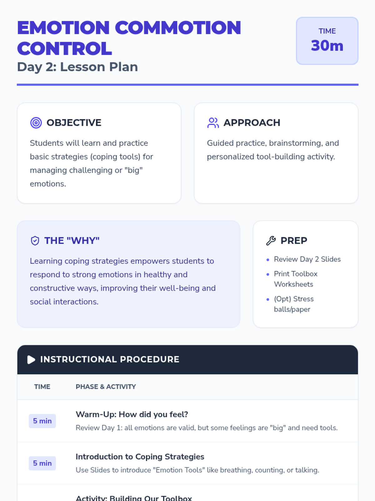 A 30-minute session focused on learning and practicing coping strategies to manage strong emotions effectively.