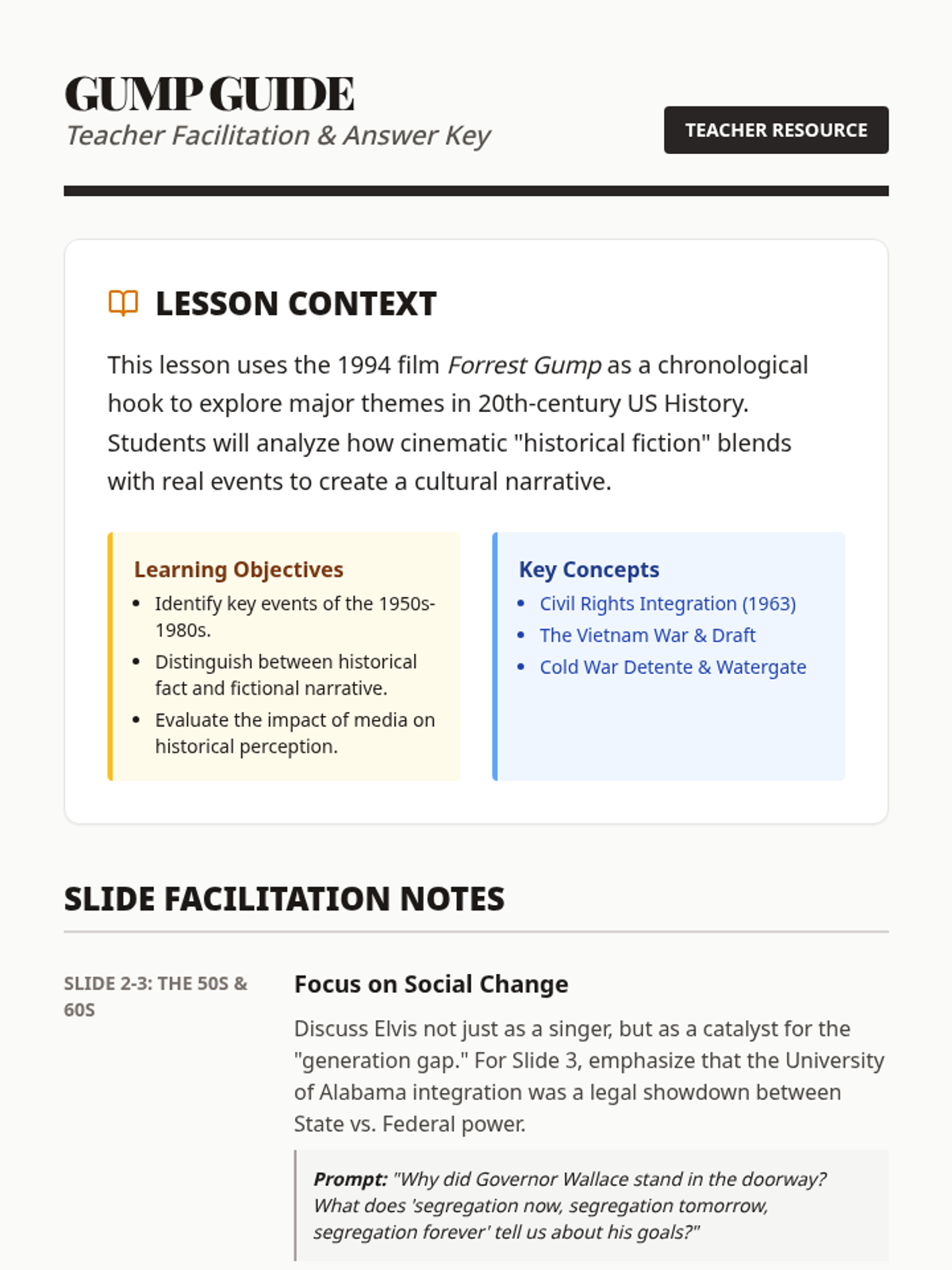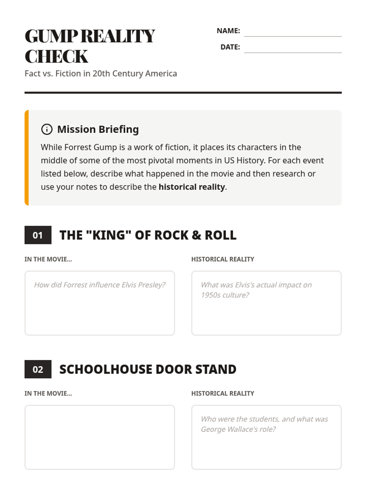 A deep dive into 20th-century US History through the lens of Forrest Gump, covering the Civil Rights Movement, the Vietnam War, and the Cold War era. Students will analyze the film's portrayal of historical events and distinguish between cinematic fiction and historical reality.