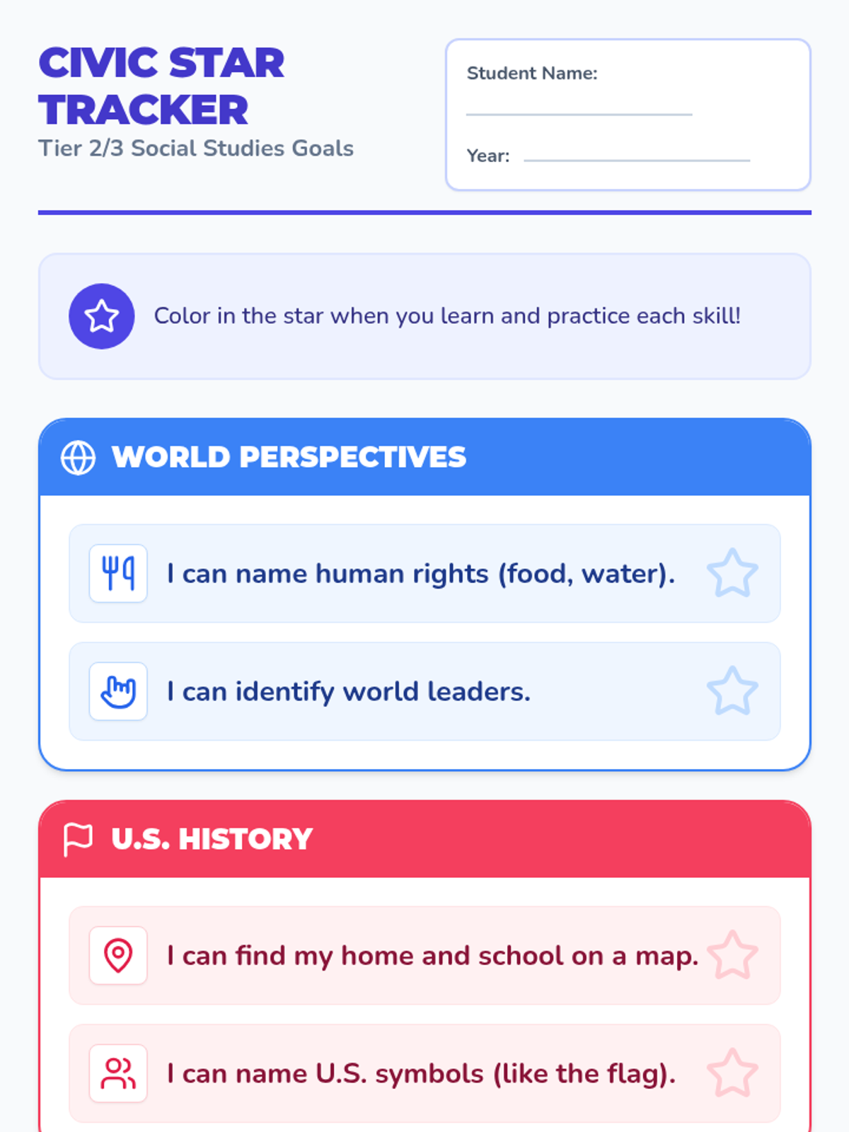 Introduces Tier 2/3 students to the key symbols of the United States, including the flag and the Statue of Liberty, with a focus on recognition and community identity.