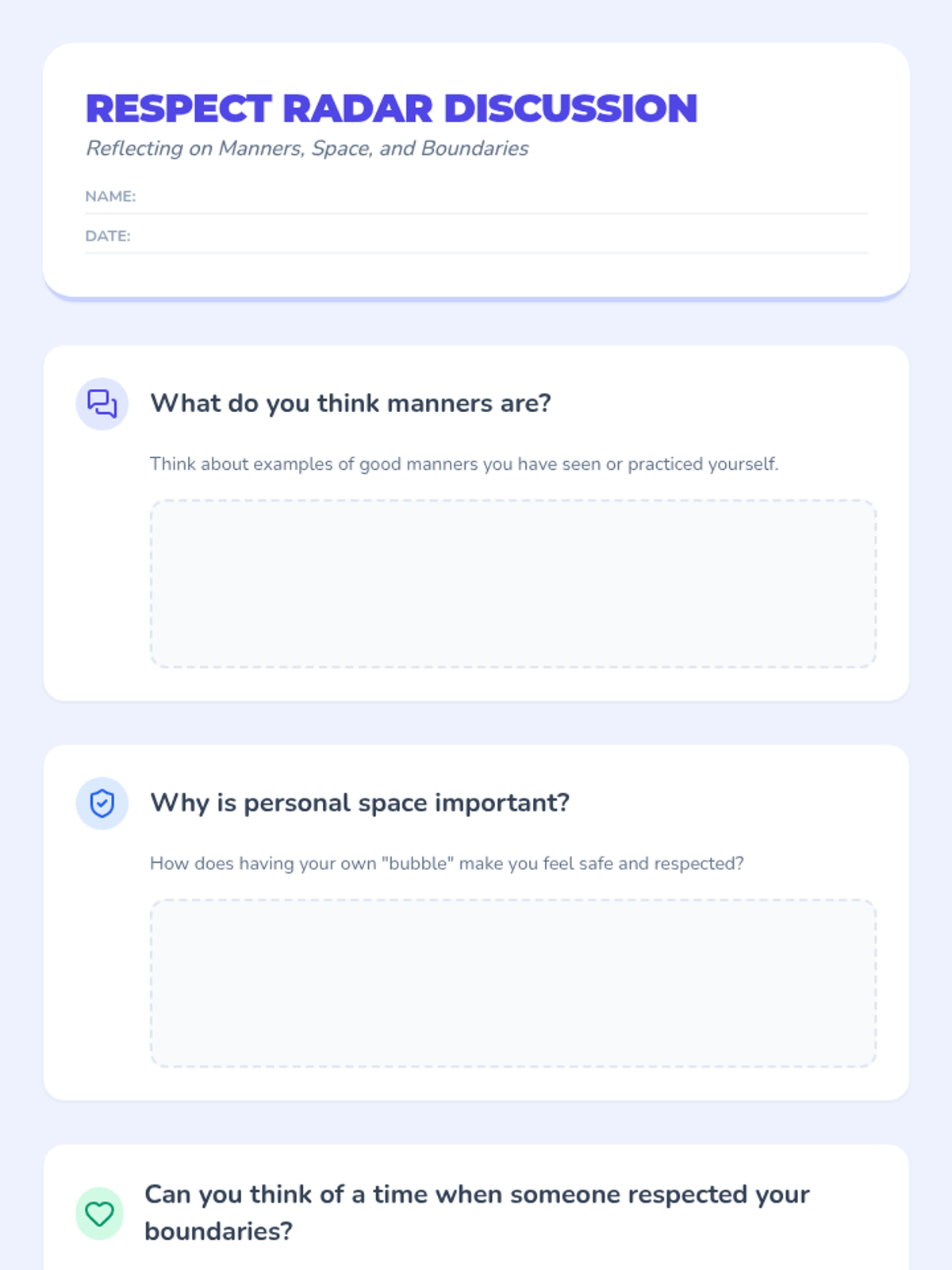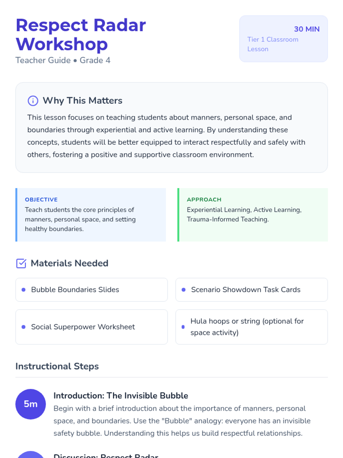 This lesson focuses on teaching 4th-grade students about manners, personal space, and boundaries through experiential and active learning strategies. By understanding these concepts, students will be better equipped to interact respectfully and safely with others.