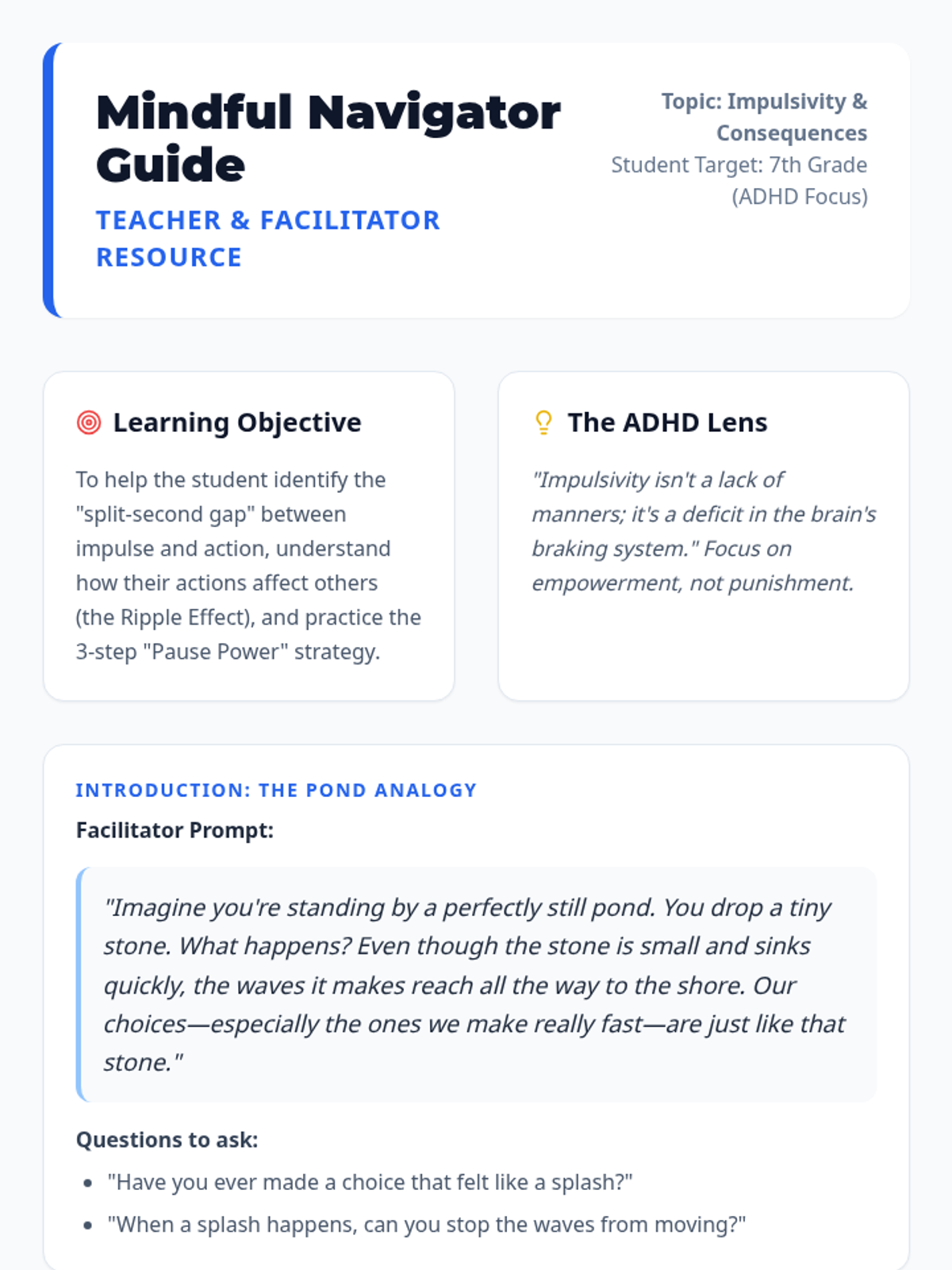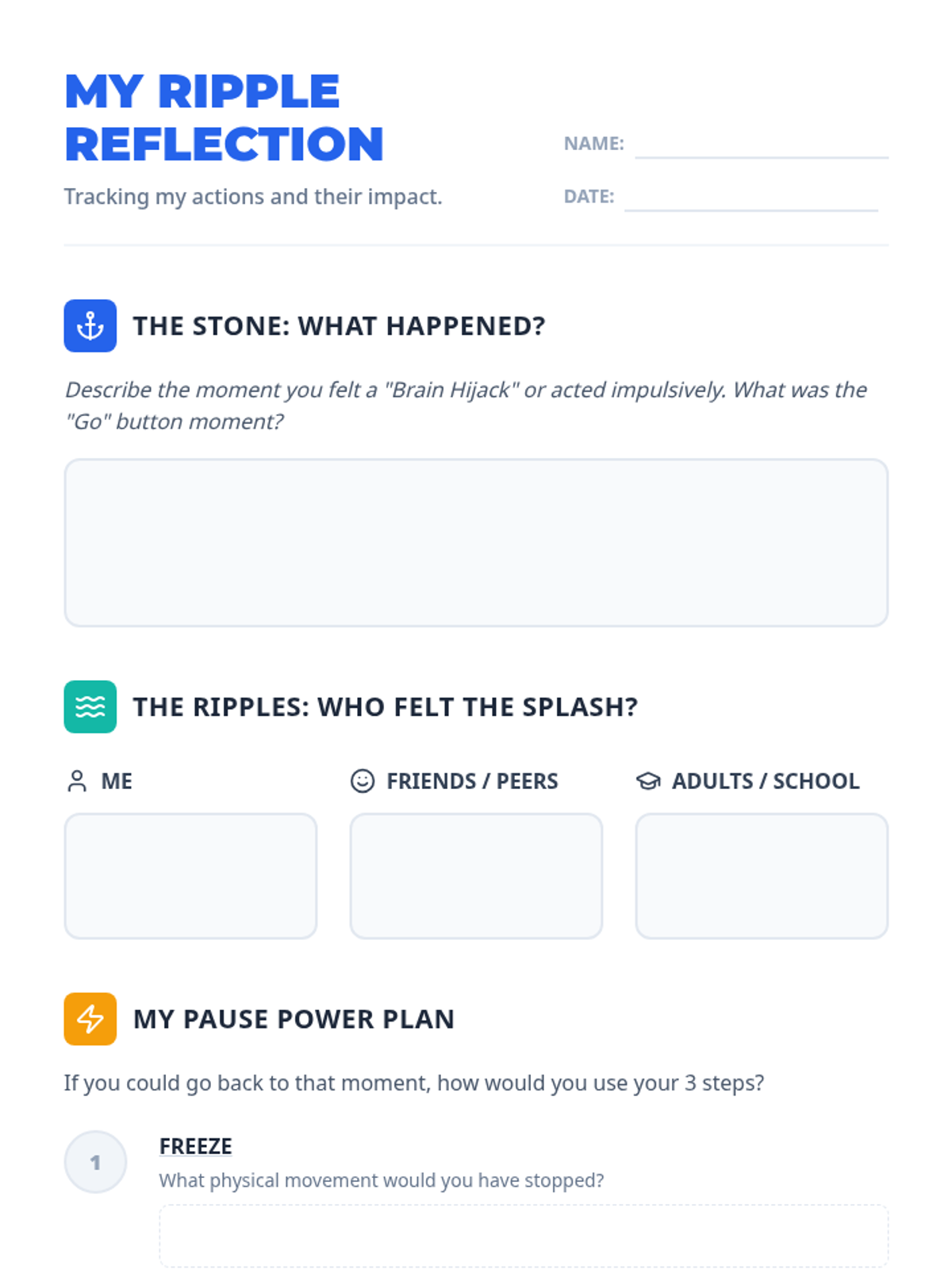 Immediate coping strategies and breathing techniques to de-escalate.