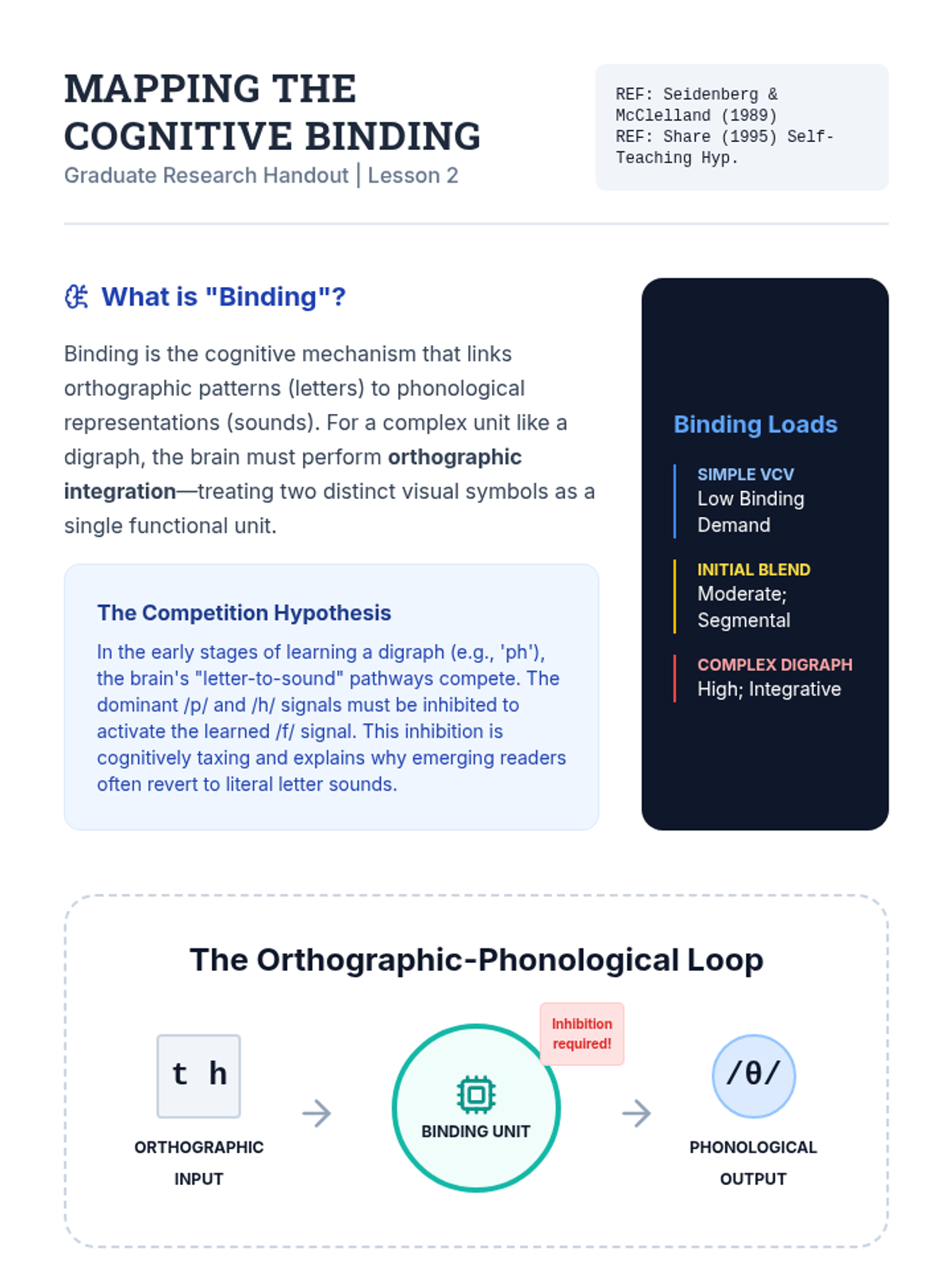 This lesson focuses on the cognitive process of orthographic mapping regarding complex graphemes. Students explore the 'binding' theory and critique existing curriculum materials for alignment with this cognitive model.