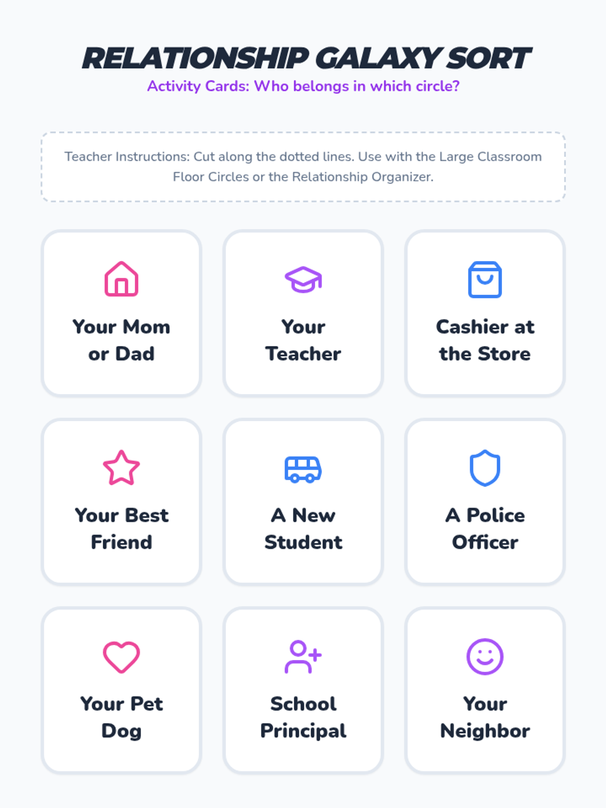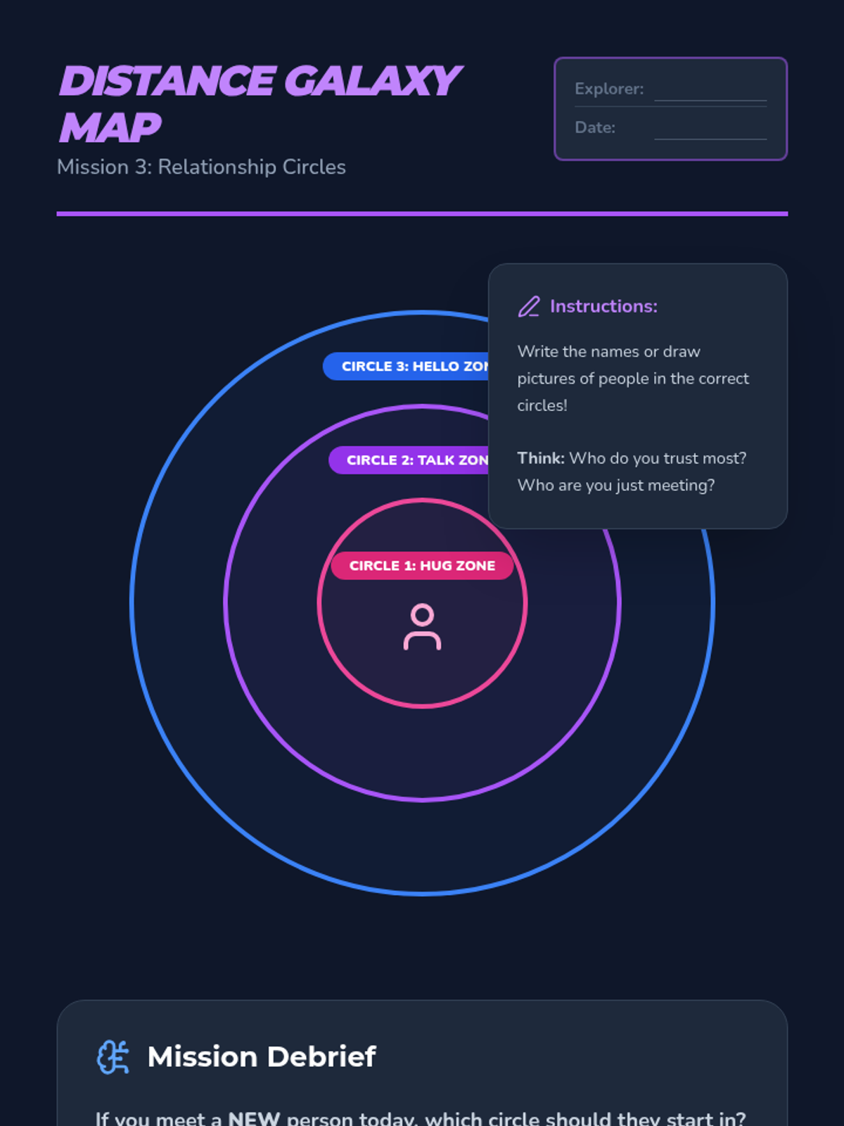 Students map different relationships to specific physical distances, understanding why we stand closer to some people than others.