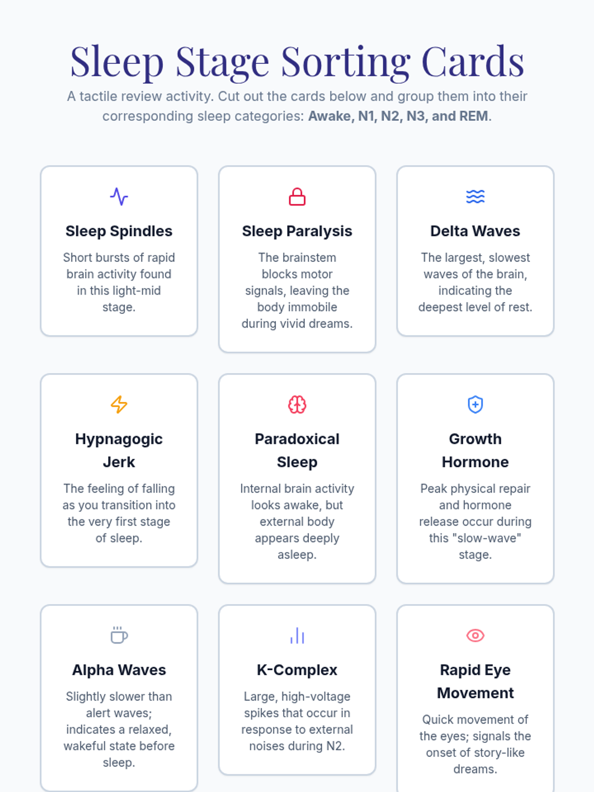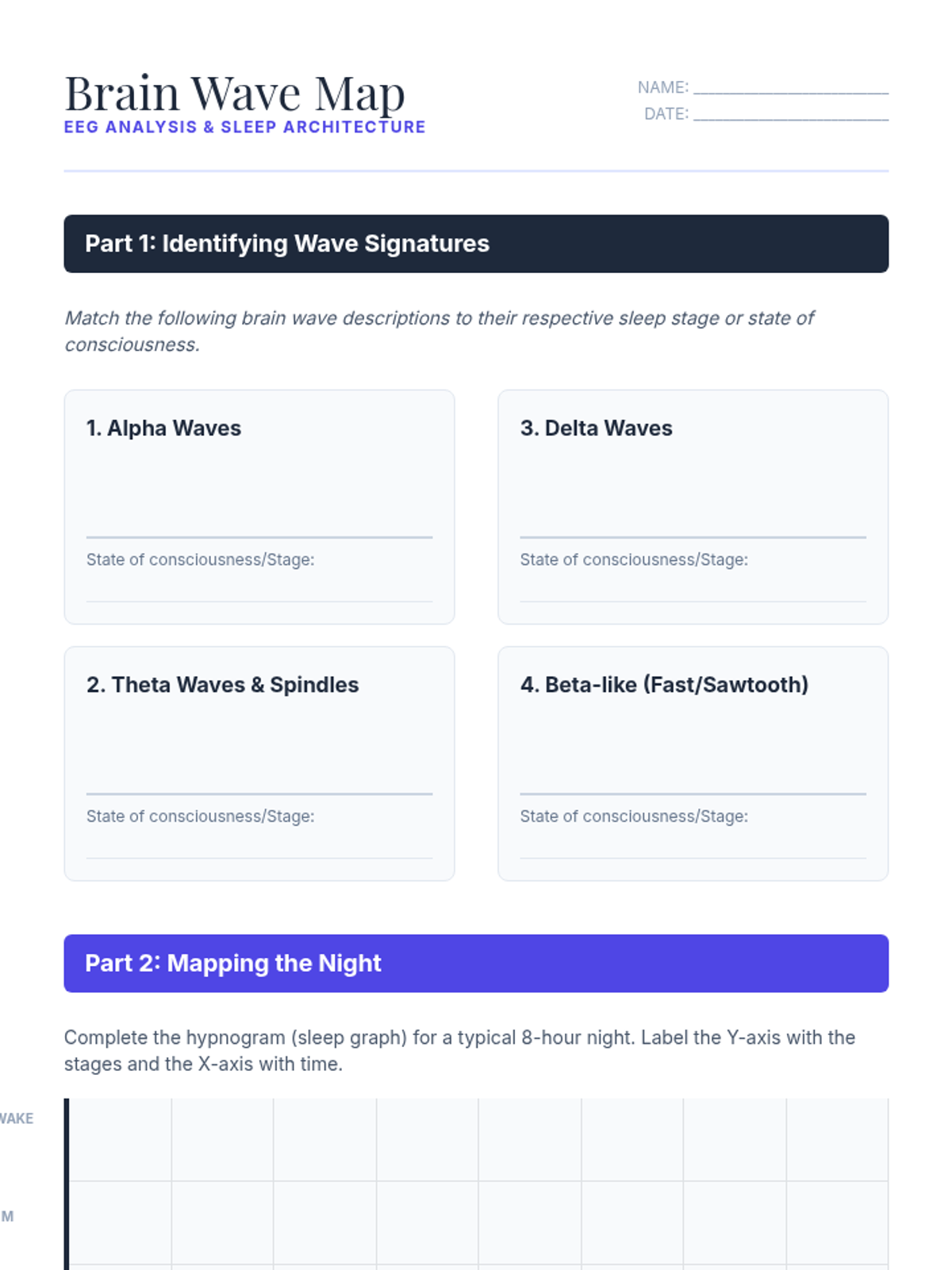 An investigation into the stages of sleep, using EEG patterns to differentiate between NREM and REM sleep and understanding the cyclical nature of a typical night's rest.