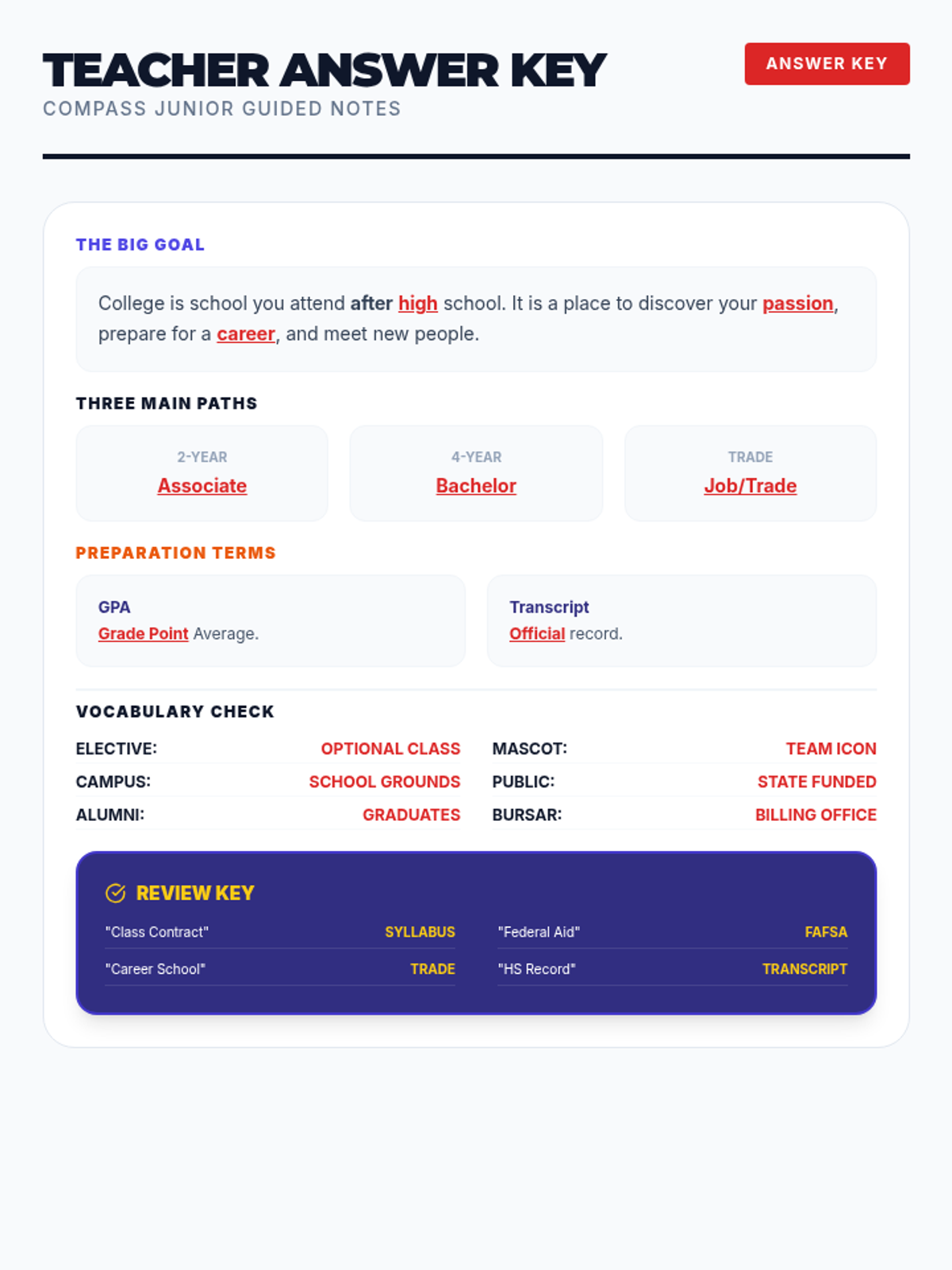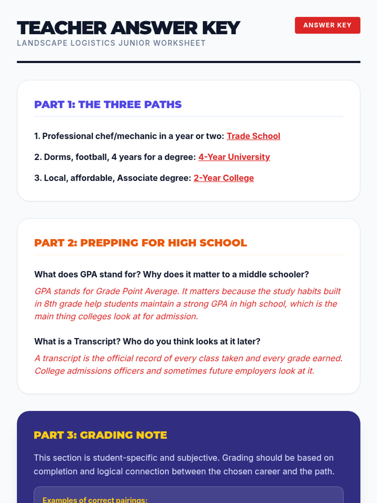 An introductory look at different types of colleges (2-year, 4-year, Trade) and the basic "rules" of high school that prepare students for college (GPA and Transcripts).