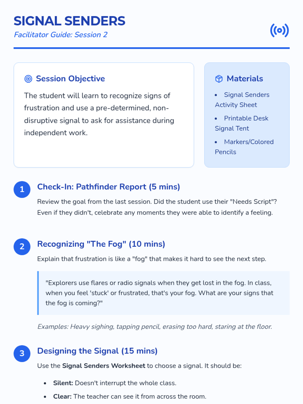 A 30-minute lesson for 4th graders focused on identifying trusted adults and practicing clear, respectful communication when asking for help. Students learn that independence includes knowing when and how to seek support from their specialized network.