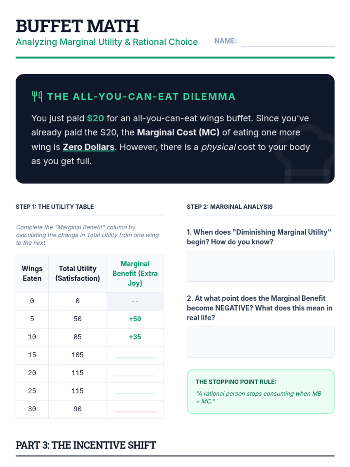 Students use marginal analysis to determine how rational actors make choices based on incremental costs and benefits.