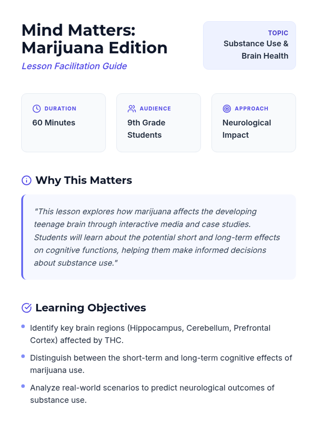 A comprehensive lesson examining the differences between substance use, misuse, and abuse, focusing on vaping, tobacco, alcohol, marijuana, and drugs.