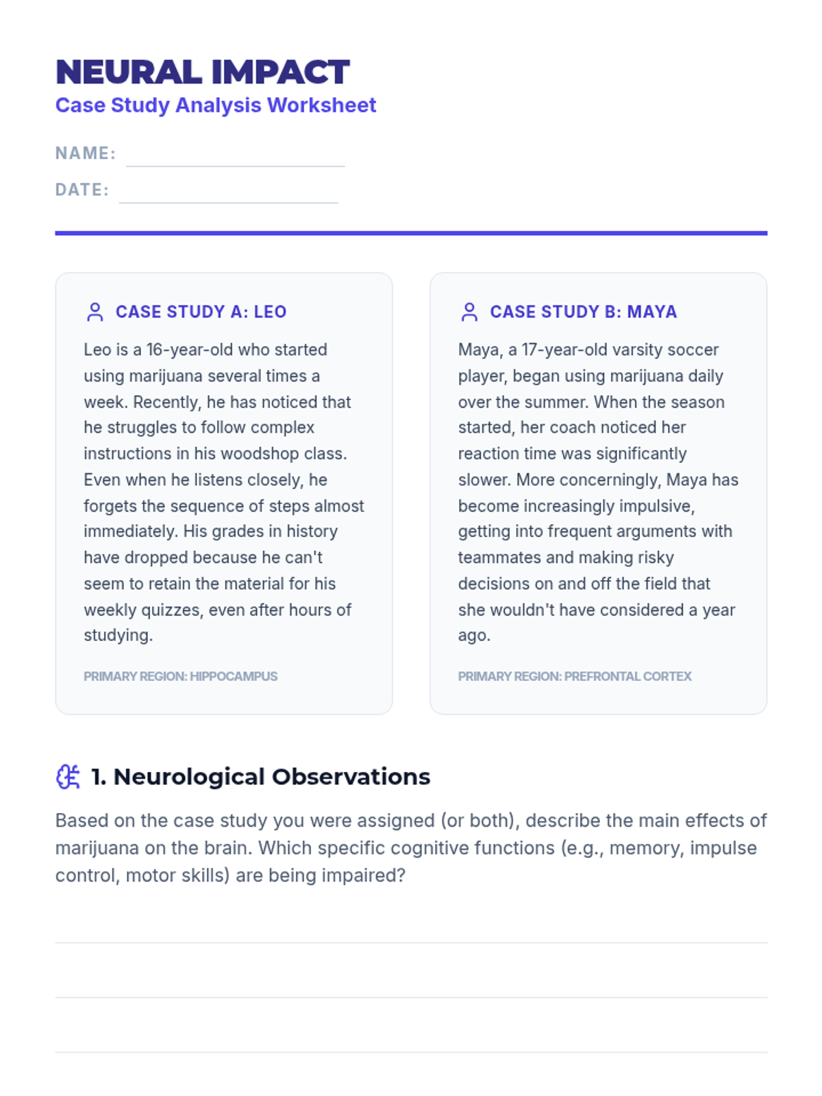 Students map the cycle of addiction, defining tolerance and withdrawal through case studies and simulations.