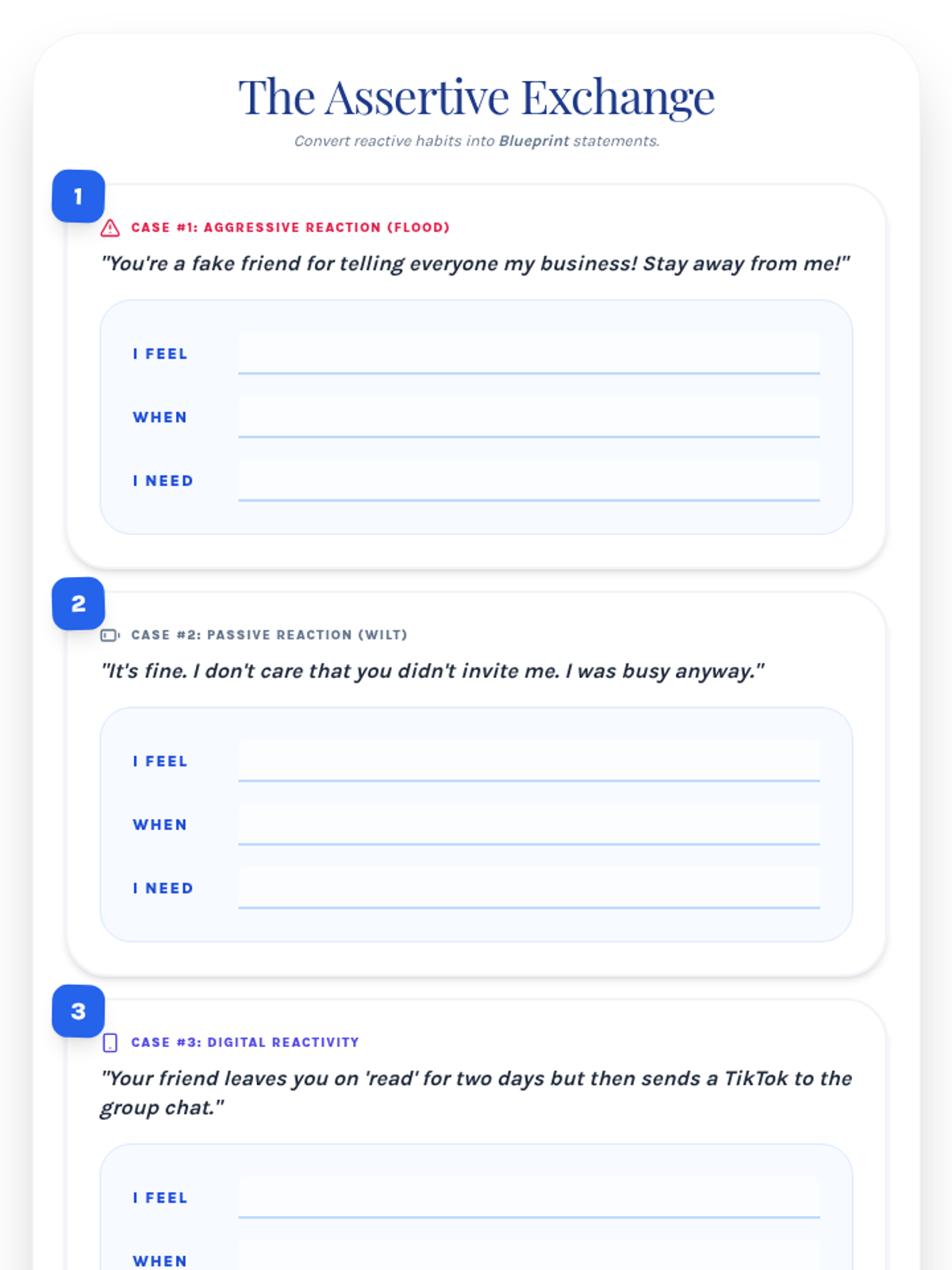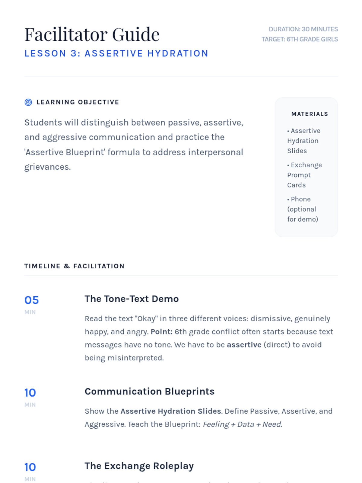 This lesson focuses on assertive communication and the impact of digital tone, teaching students to advocate for their needs without aggression.