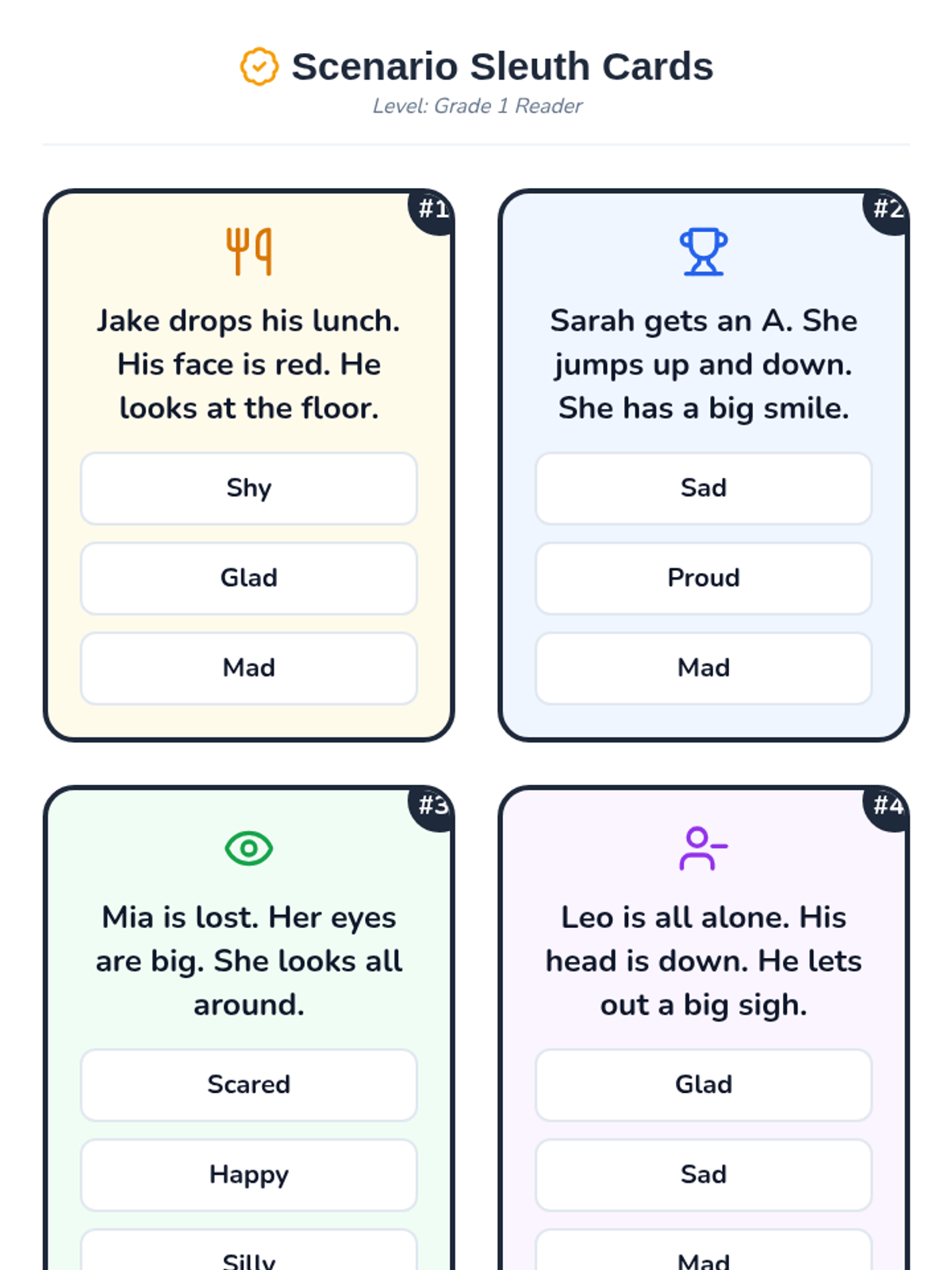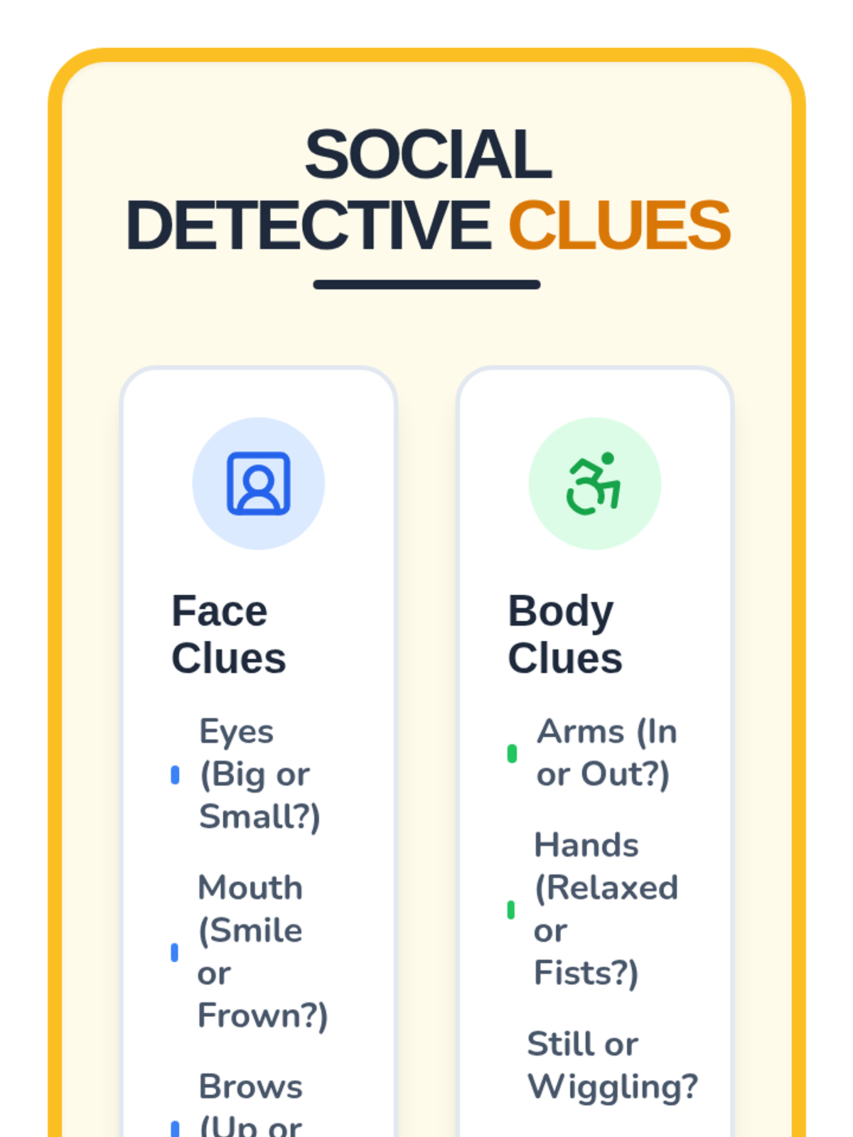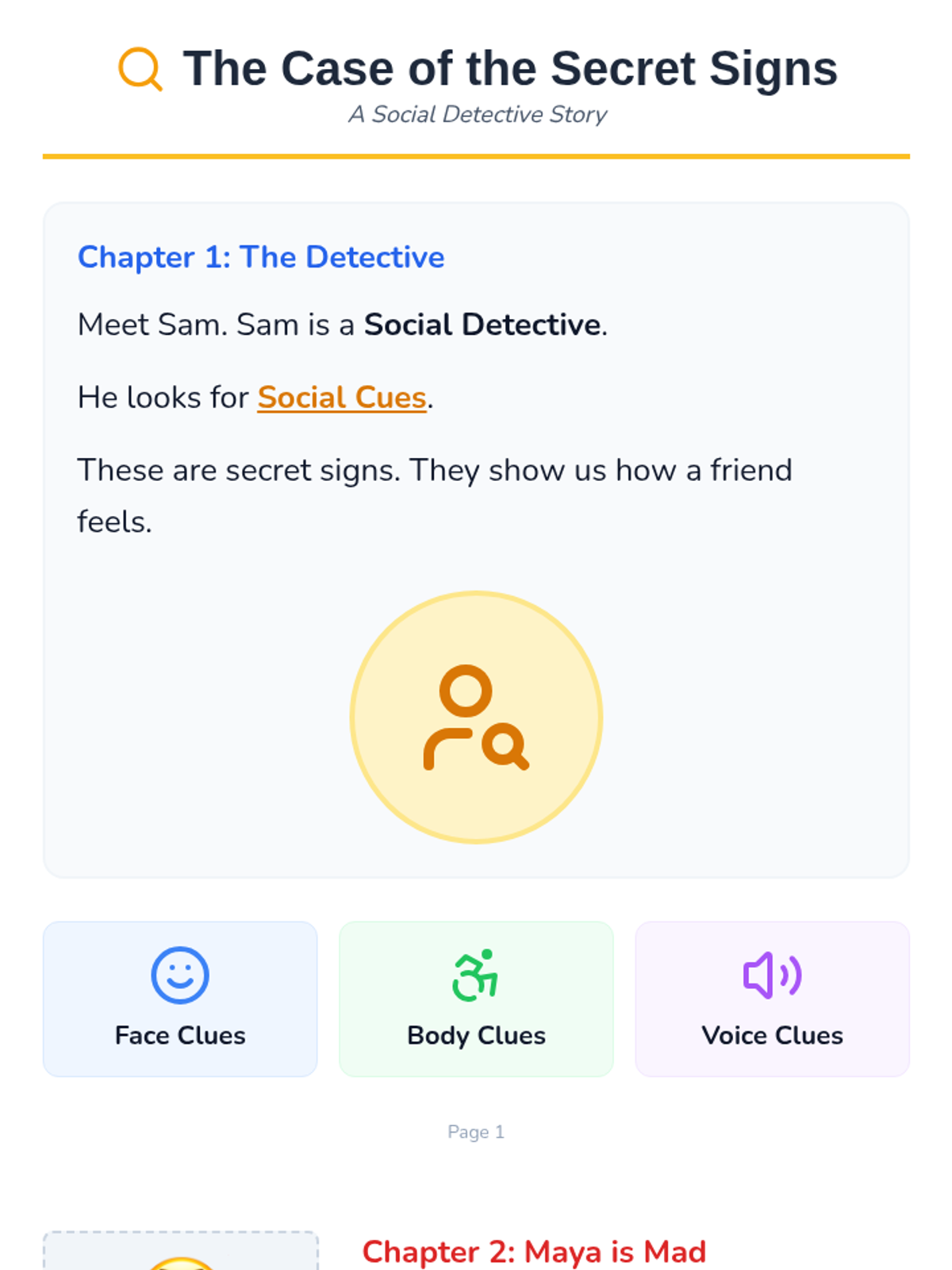 A lesson focused on helping 1st grade students recognize and interpret social cues like facial expressions, body language, and tone of voice through a 'Social Detective' theme.