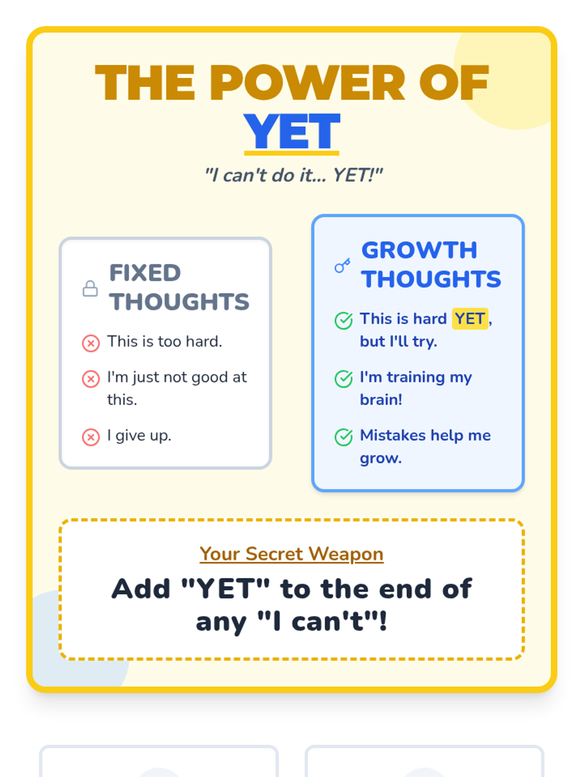 Introduces the concept of growth mindset using 'The Power of Yet' to transform frustration into a learning opportunity.