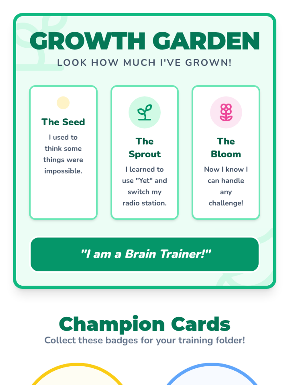 Equips students with specific, personalized positive mantras to use when facing difficult tasks or mistakes.