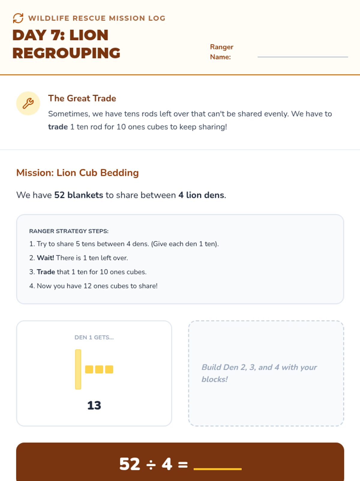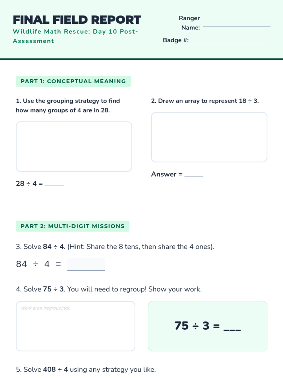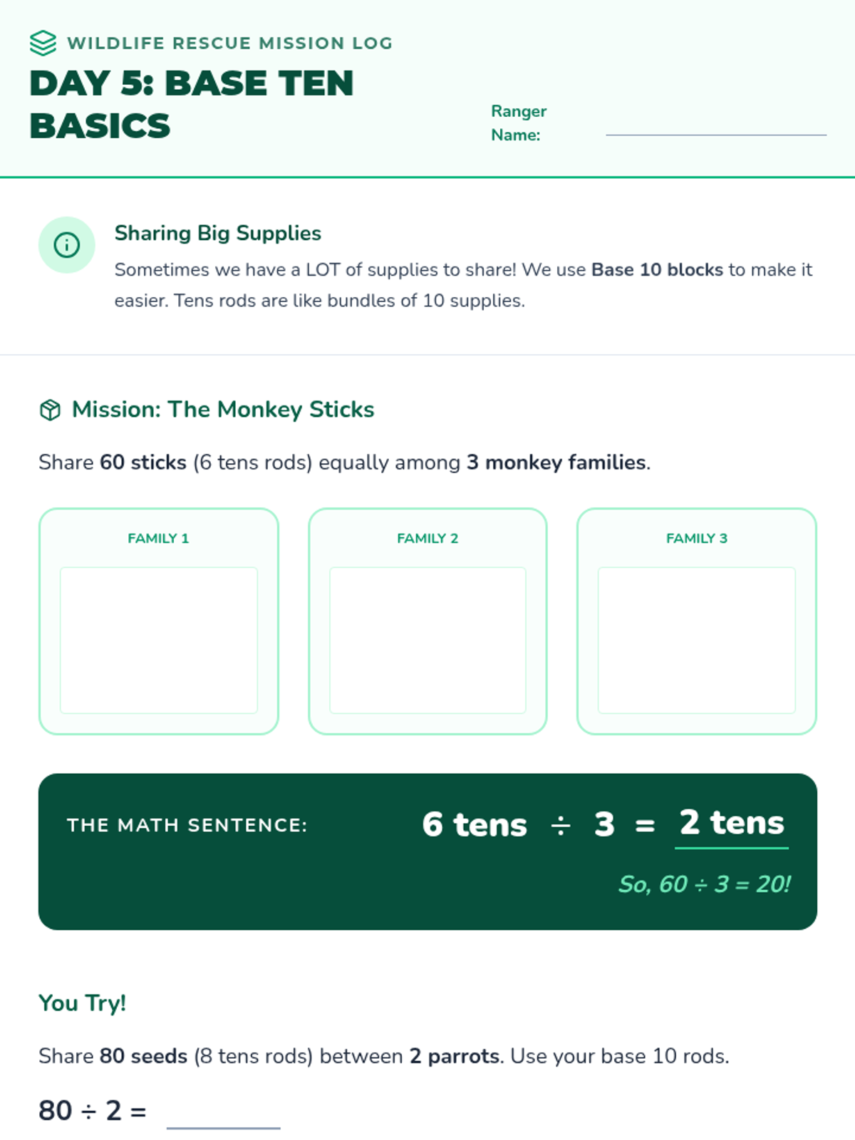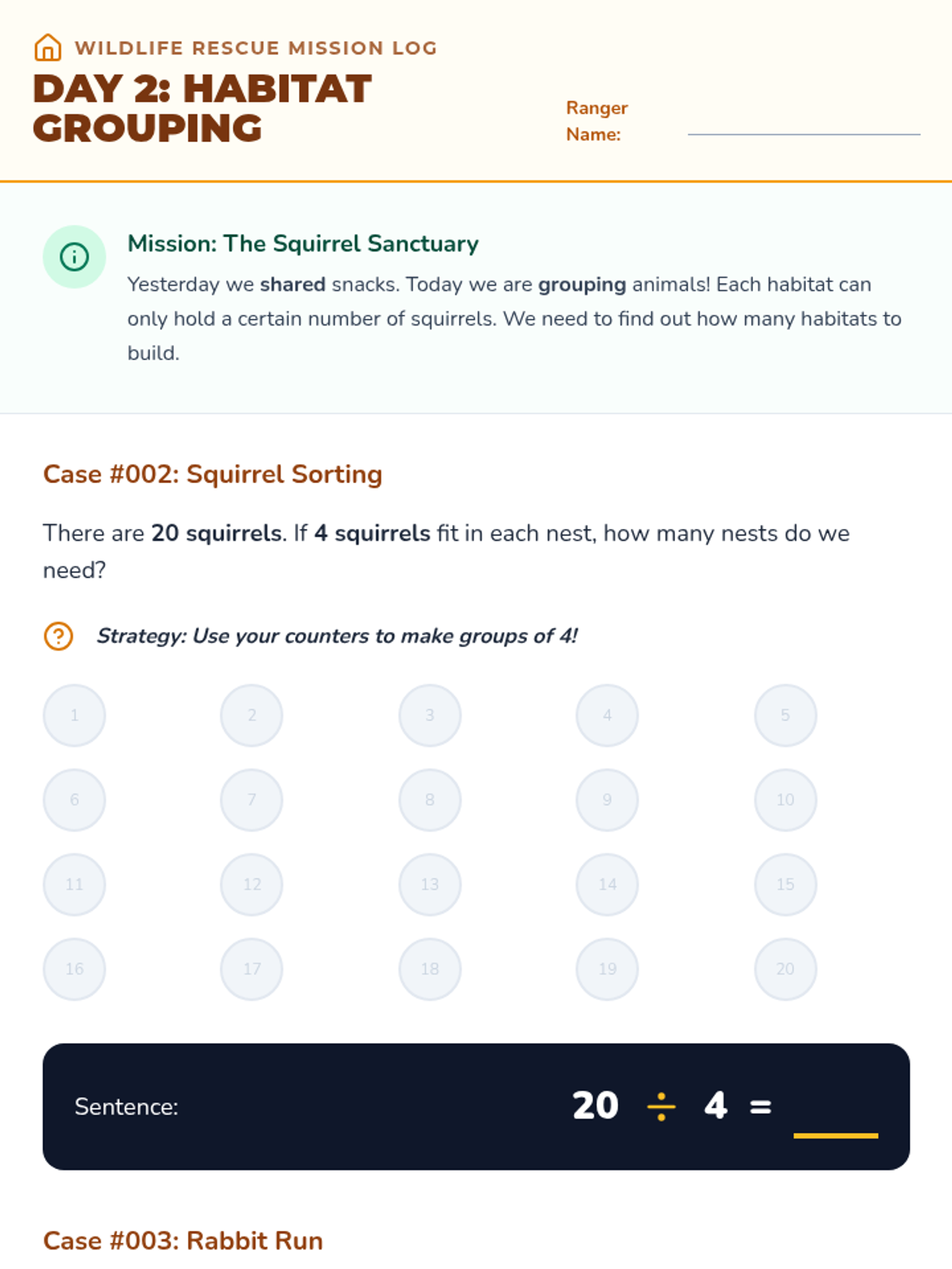 Students explore division as 'grouping' or measurement division by organizing animals into habitats.